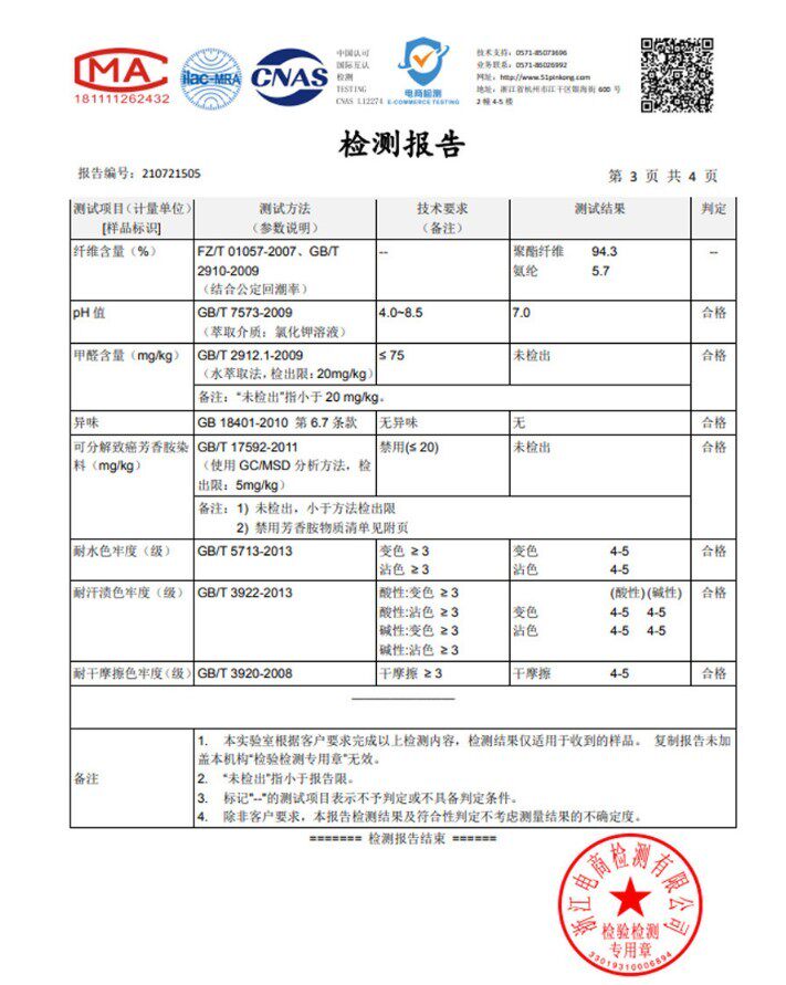 | 材質成分 | 聚酯纖維92% 聚氨酯彈性纖維(氨綸)8% |