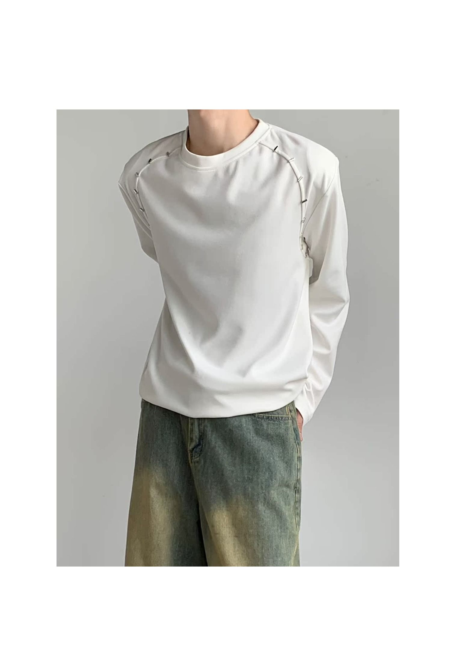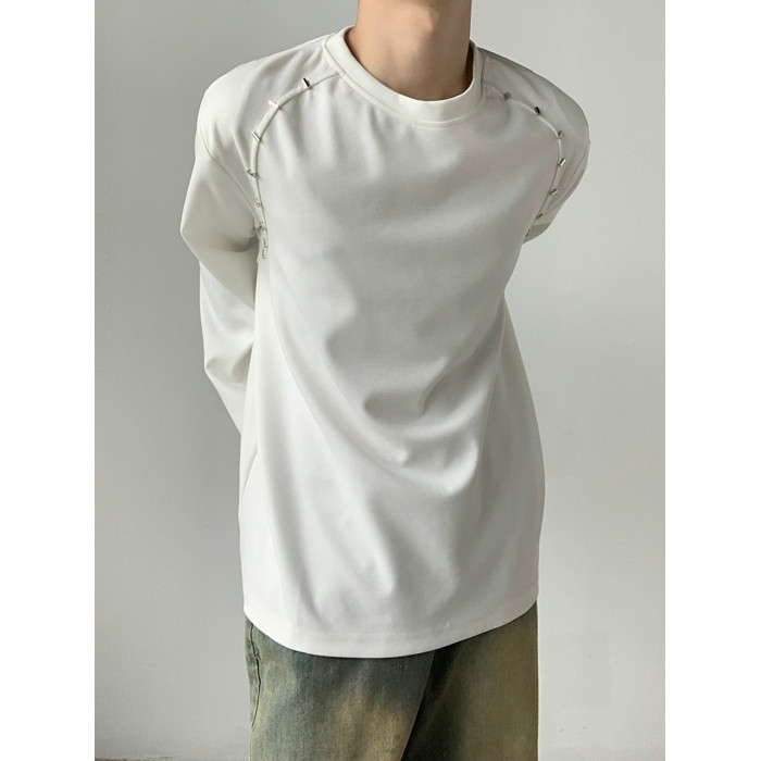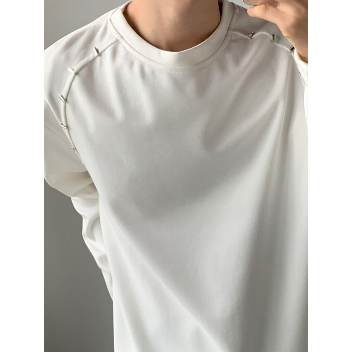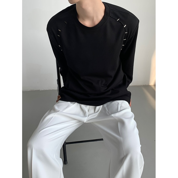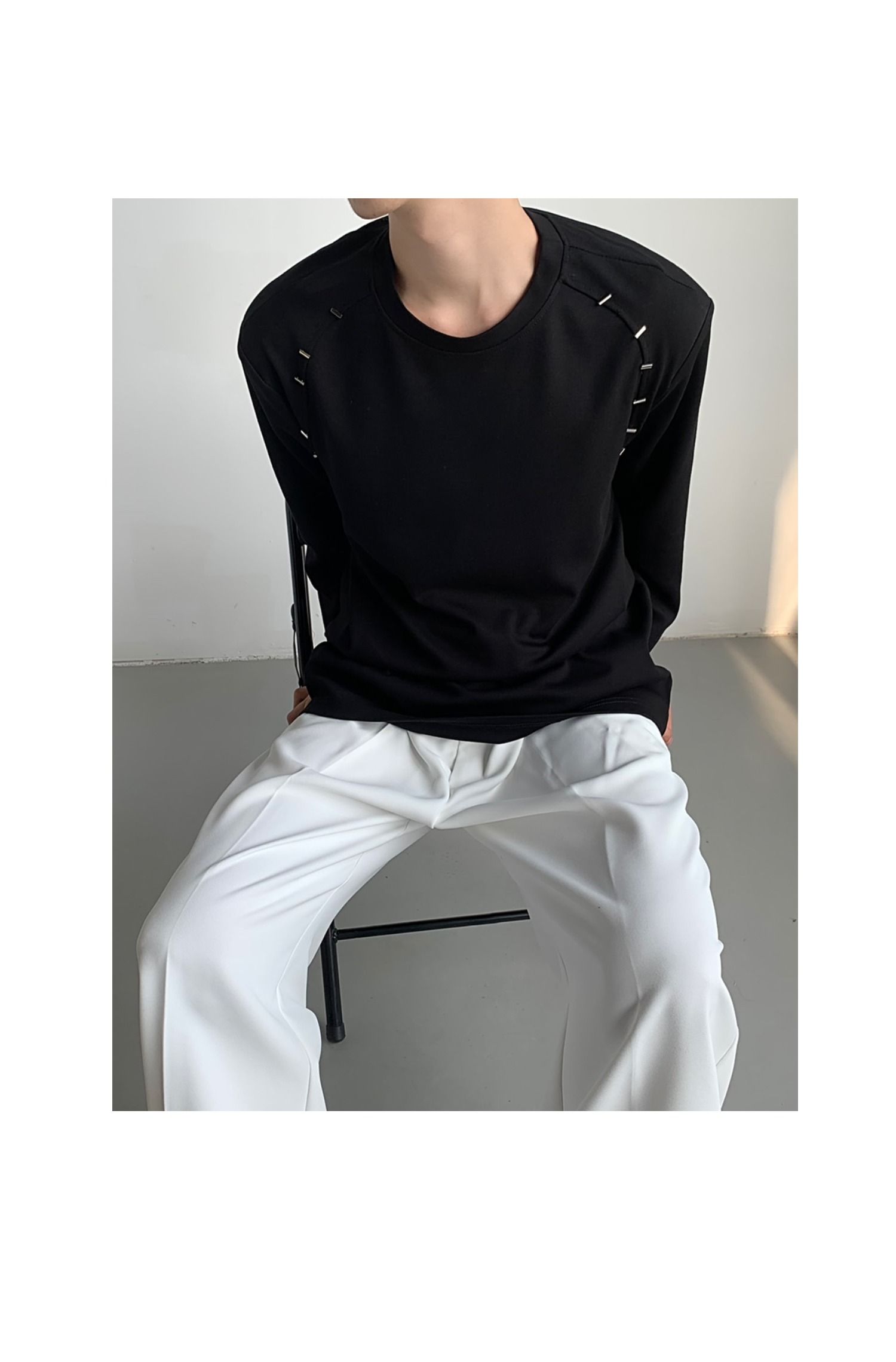 權一 韓版重磅墊肩長袖T恤金屬設計感圓領衛衣打底衫小衆男女潮