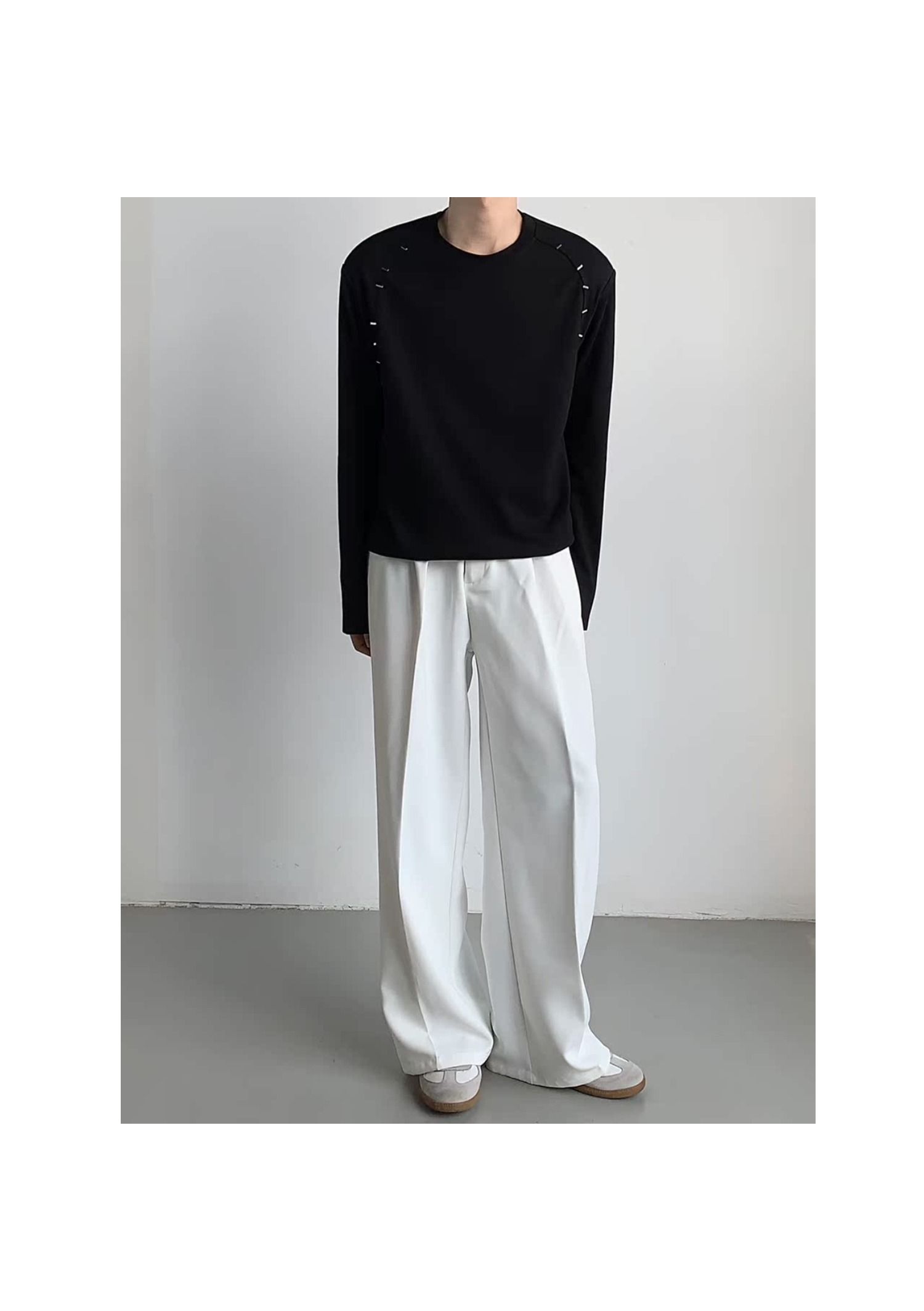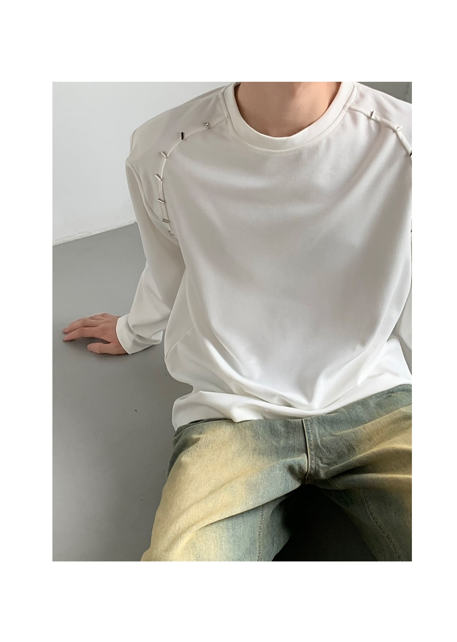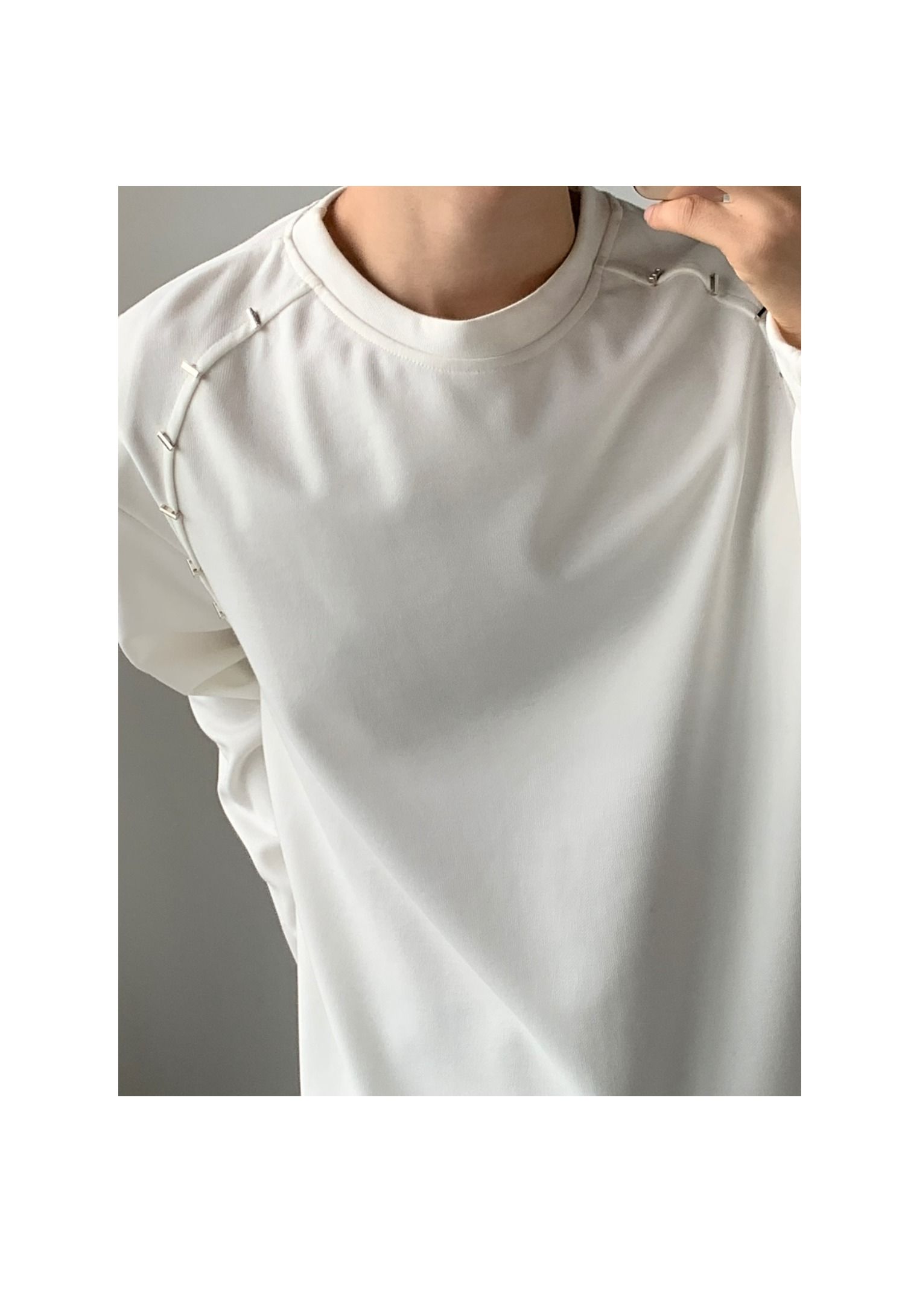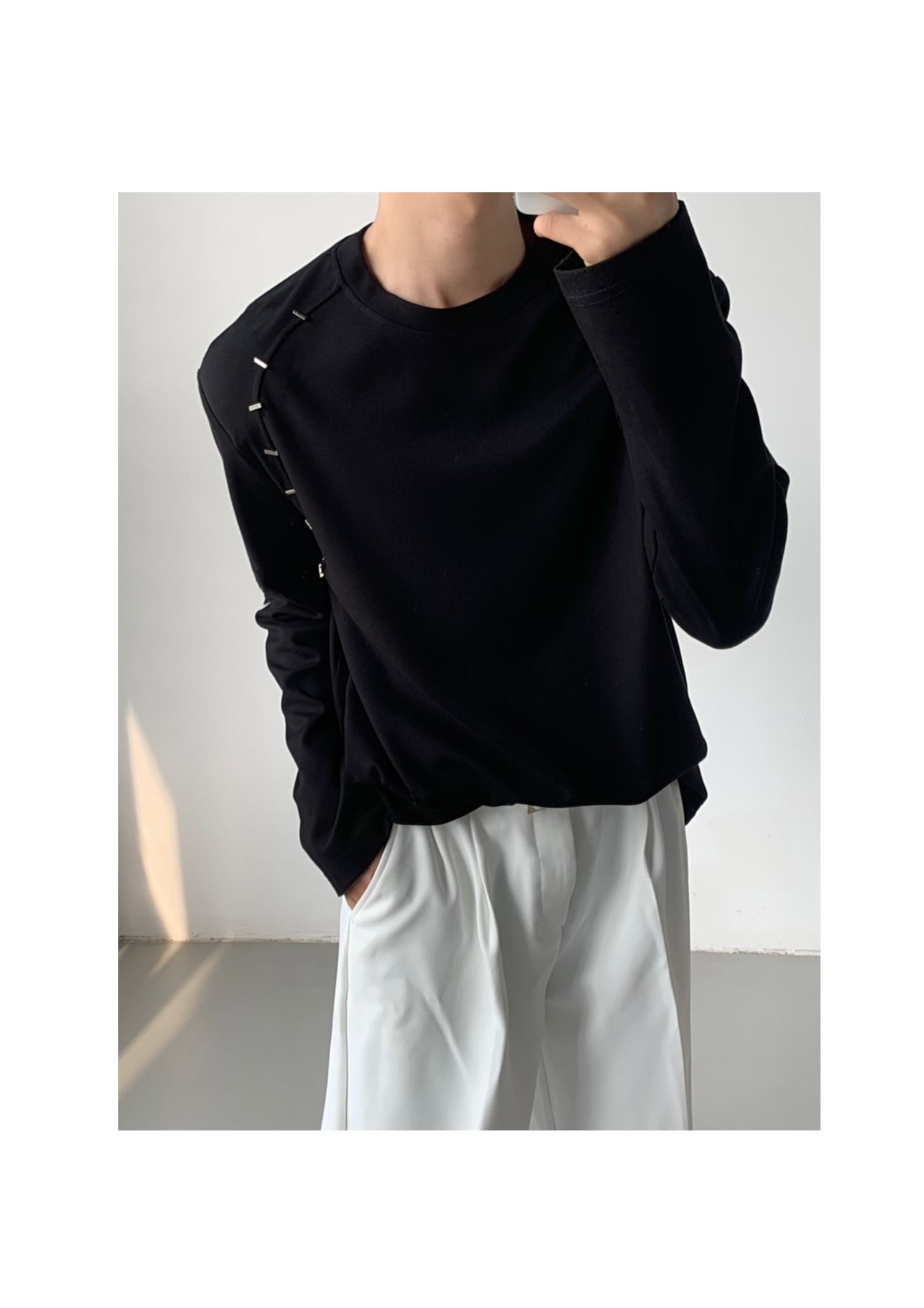 權一 韓版重磅墊肩長袖T恤金屬設計感圓領衛衣打底衫小衆男女潮