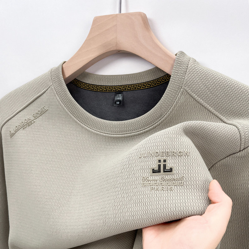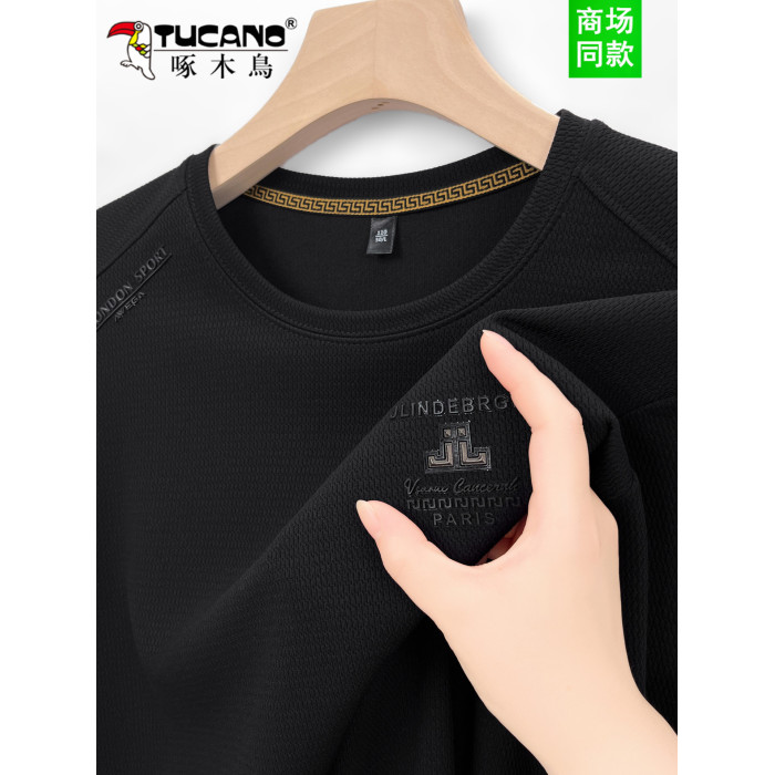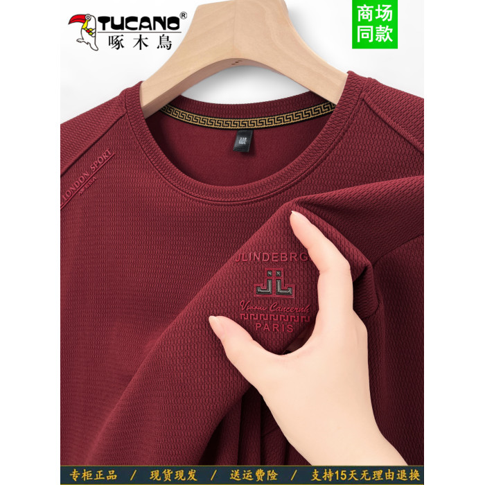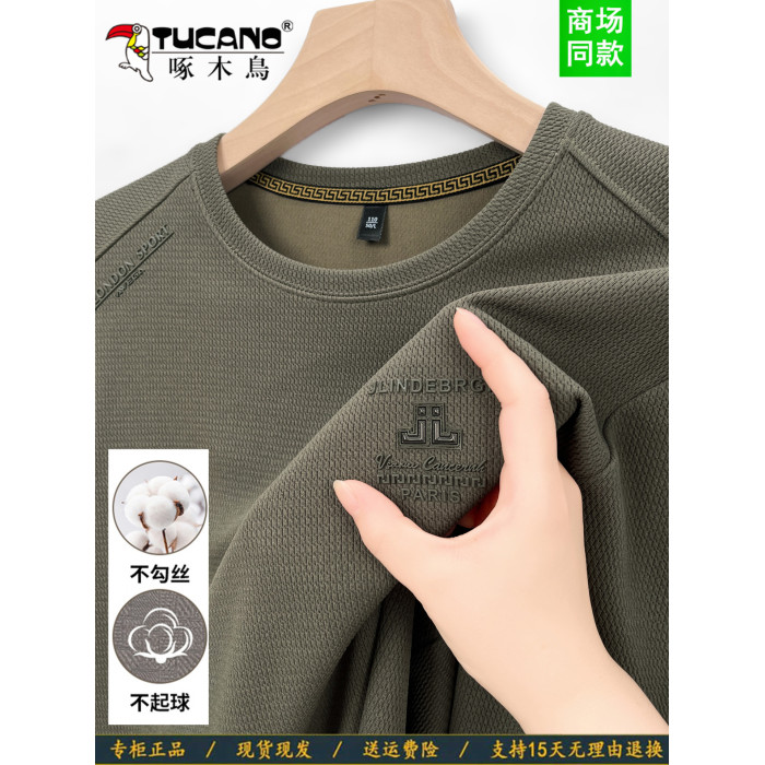 啄木鳥衛衣男加絨加厚2025新款春秋純棉男長袖t恤圓領打底衫上衣