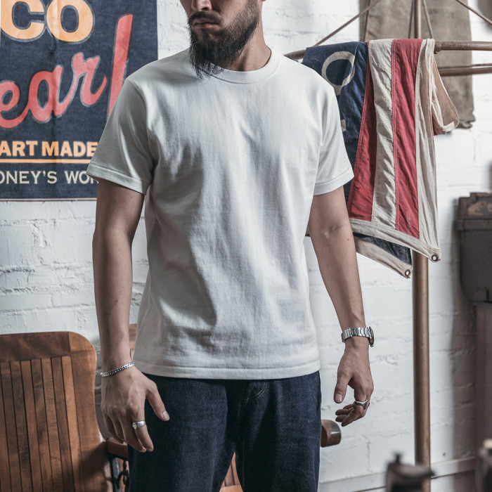 惡犬bronson老式台車織造300g重磅圓筒短袖T恤純色美式復古打底衫