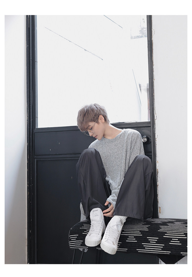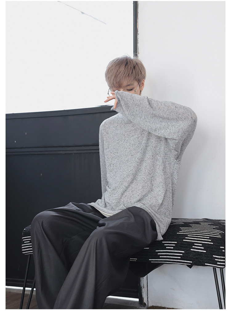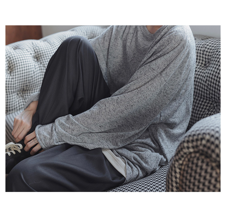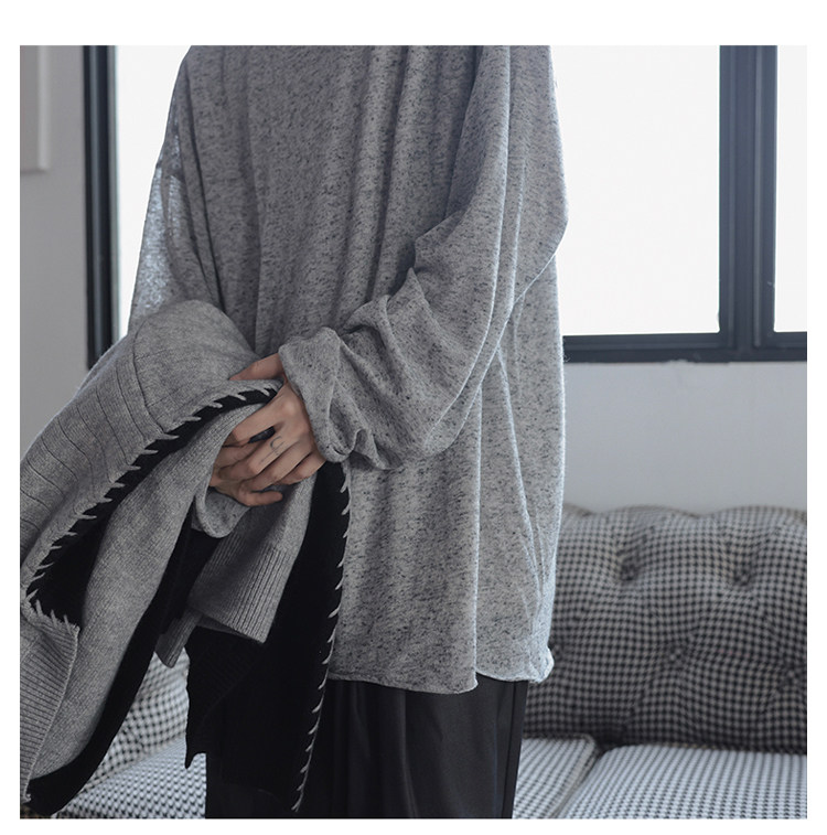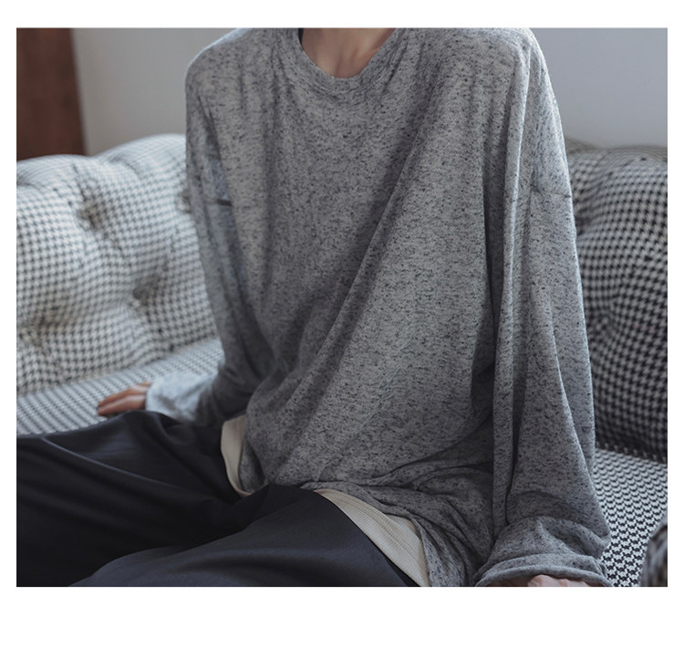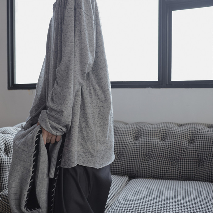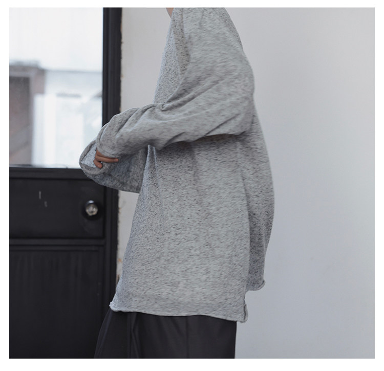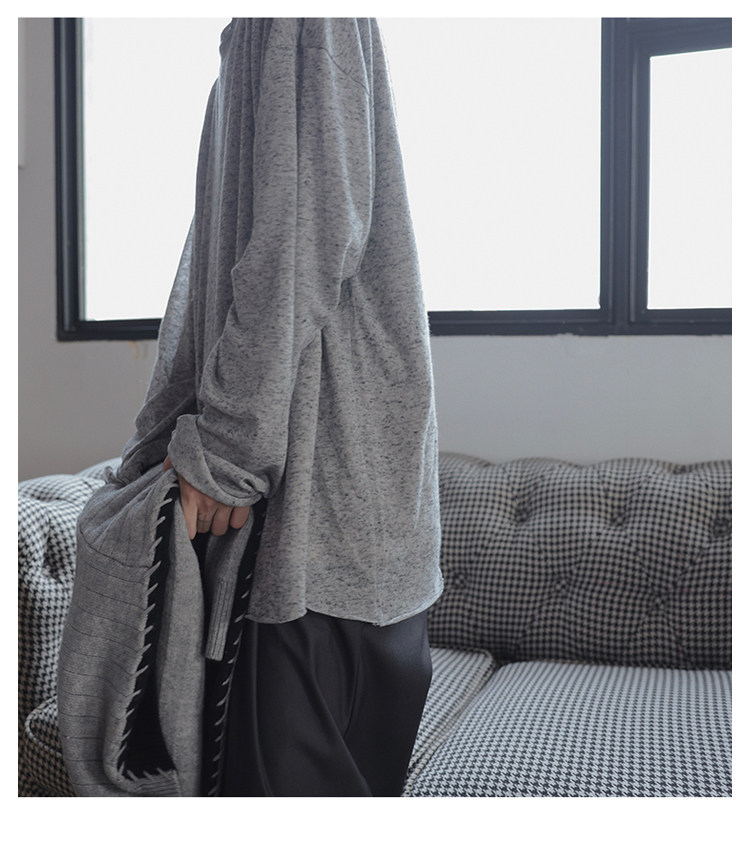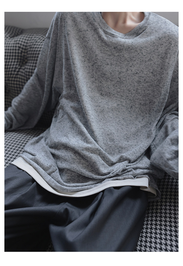 衣疫 麻灰色輕薄“紙片人兒”毛邊打底衫長袖T恤