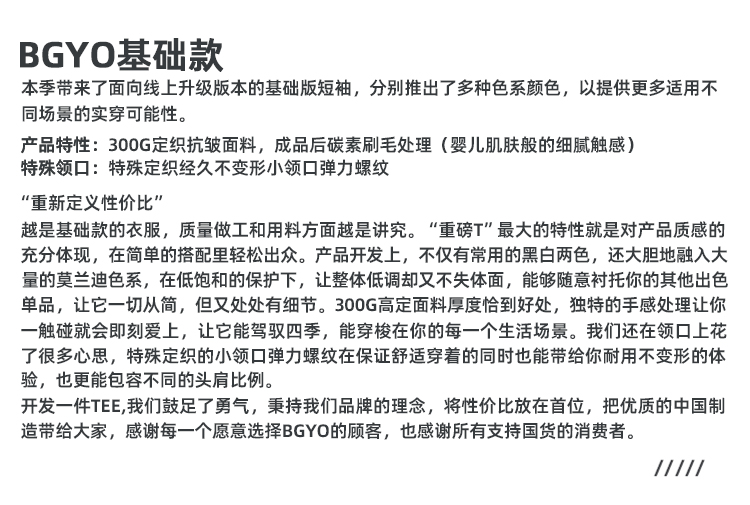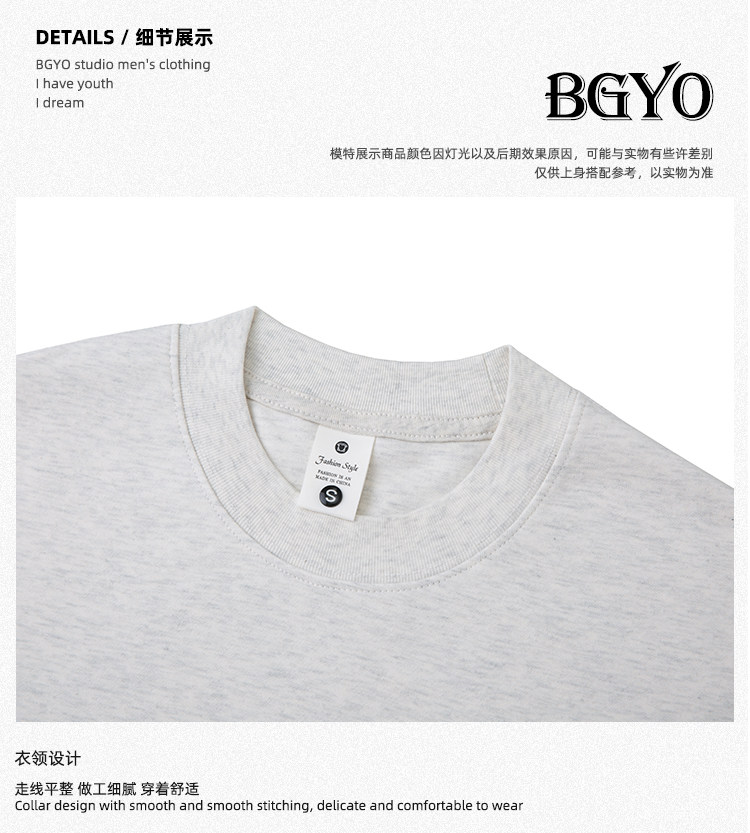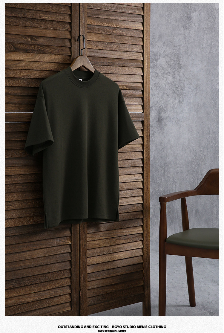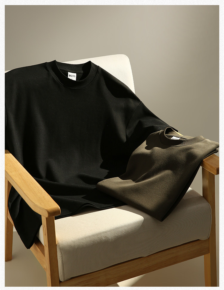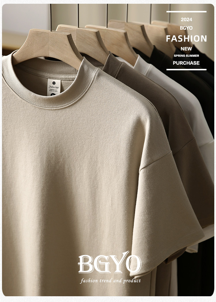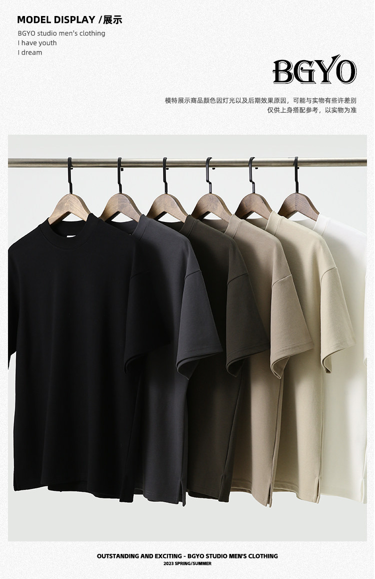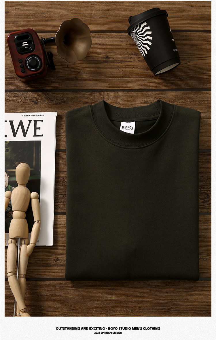 BGYO 美式復古300G磨毛短袖T恤男重磅vintage純色小領口運動TEE夏