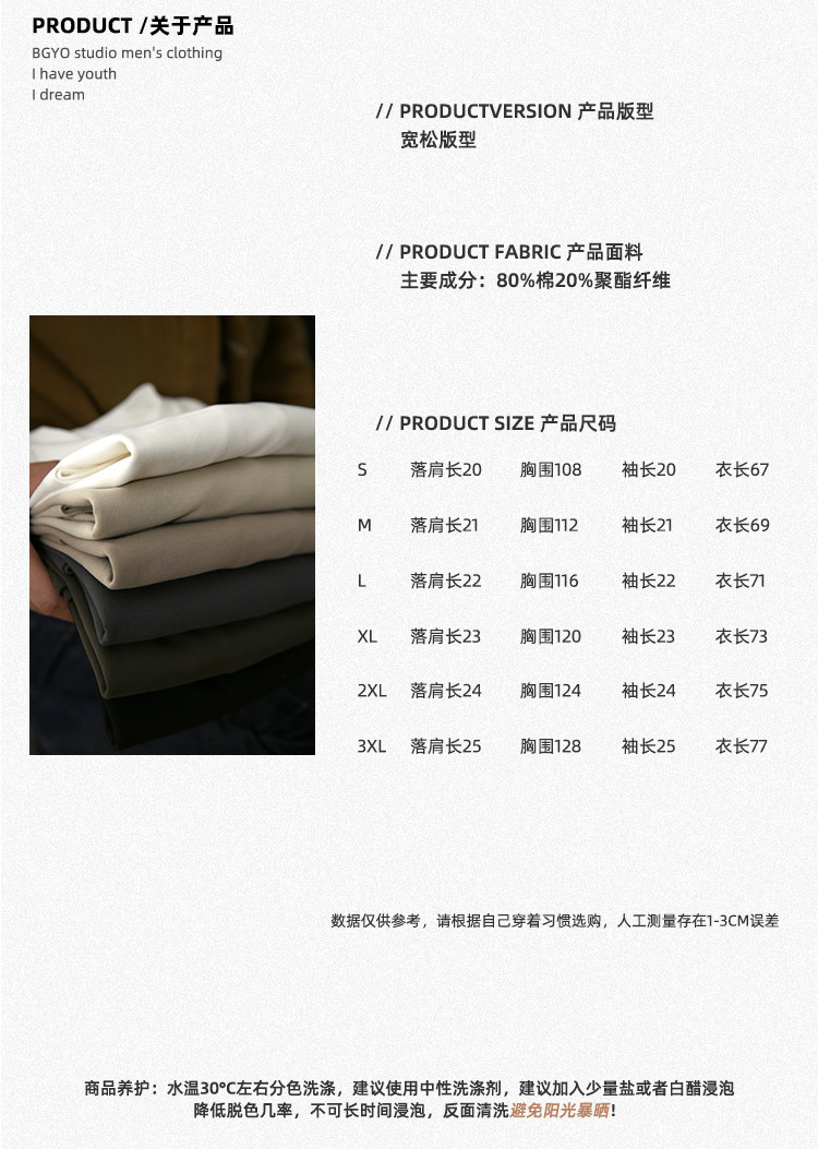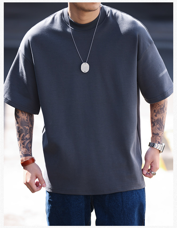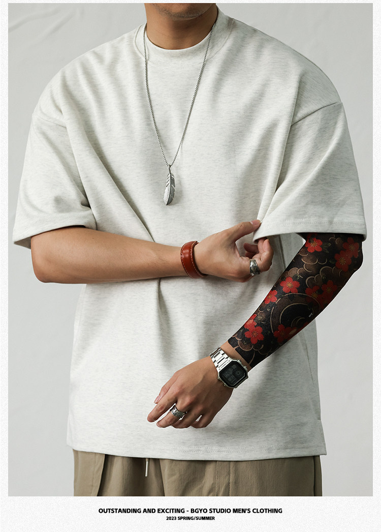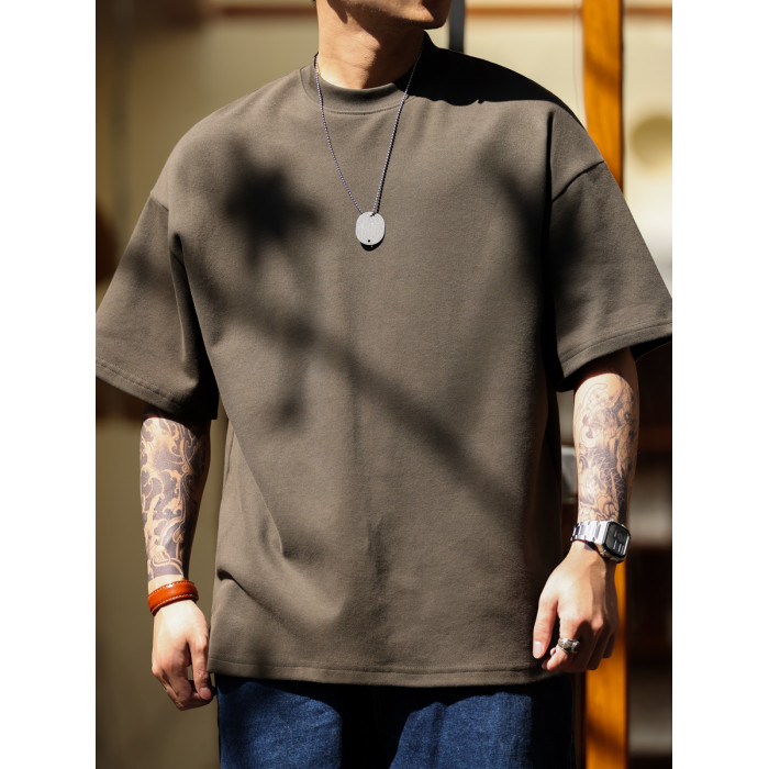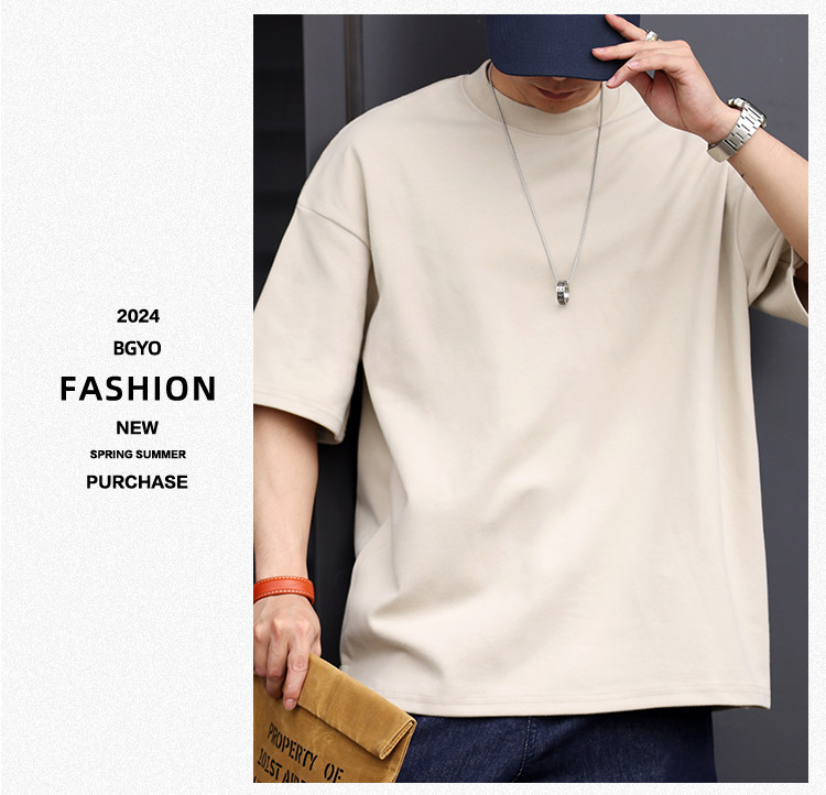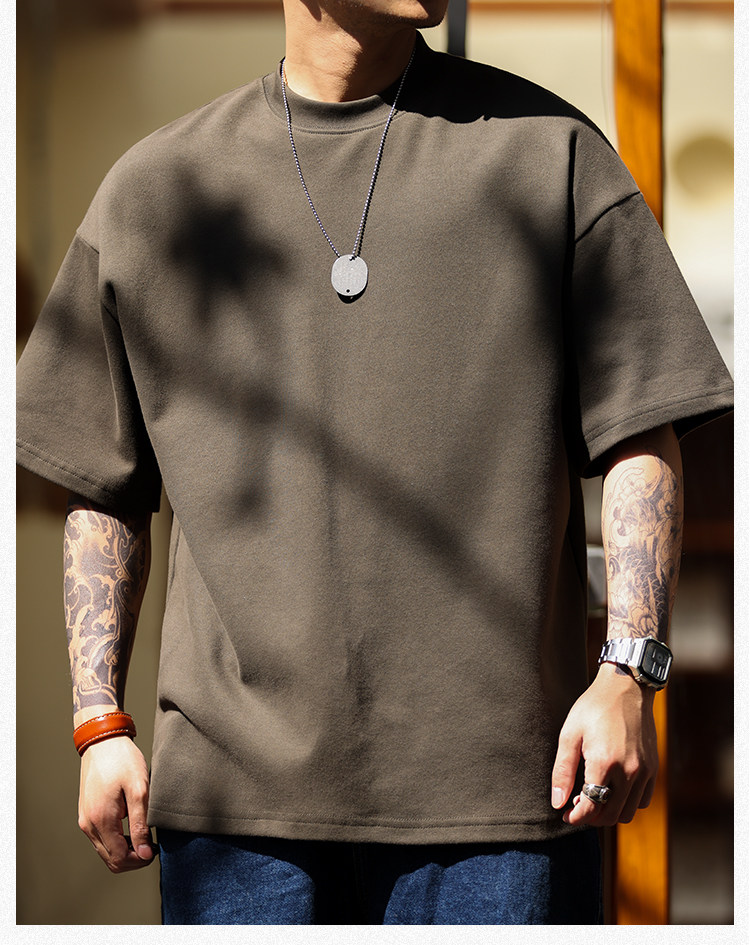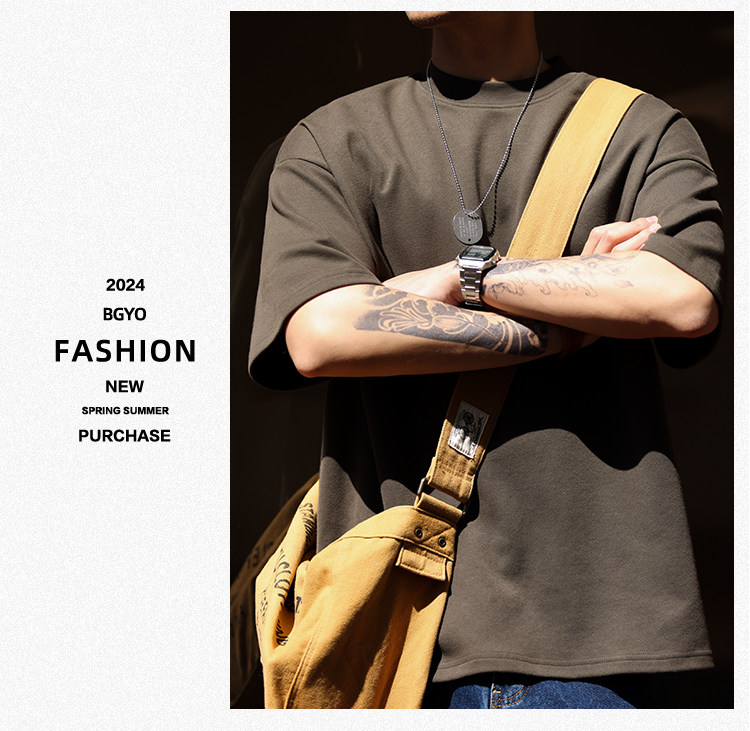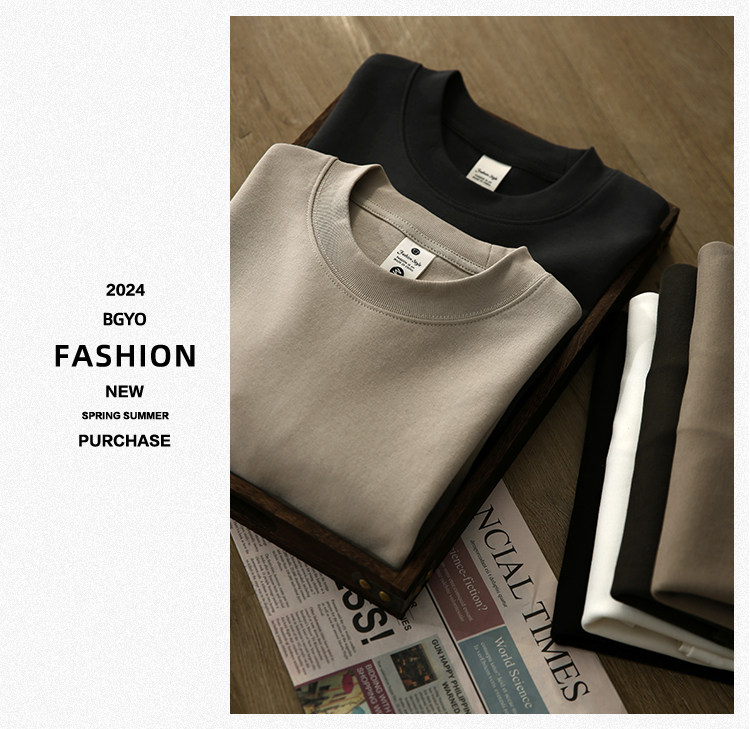 BGYO 美式復古300G磨毛短袖T恤男重磅vintage純色小領口運動TEE夏