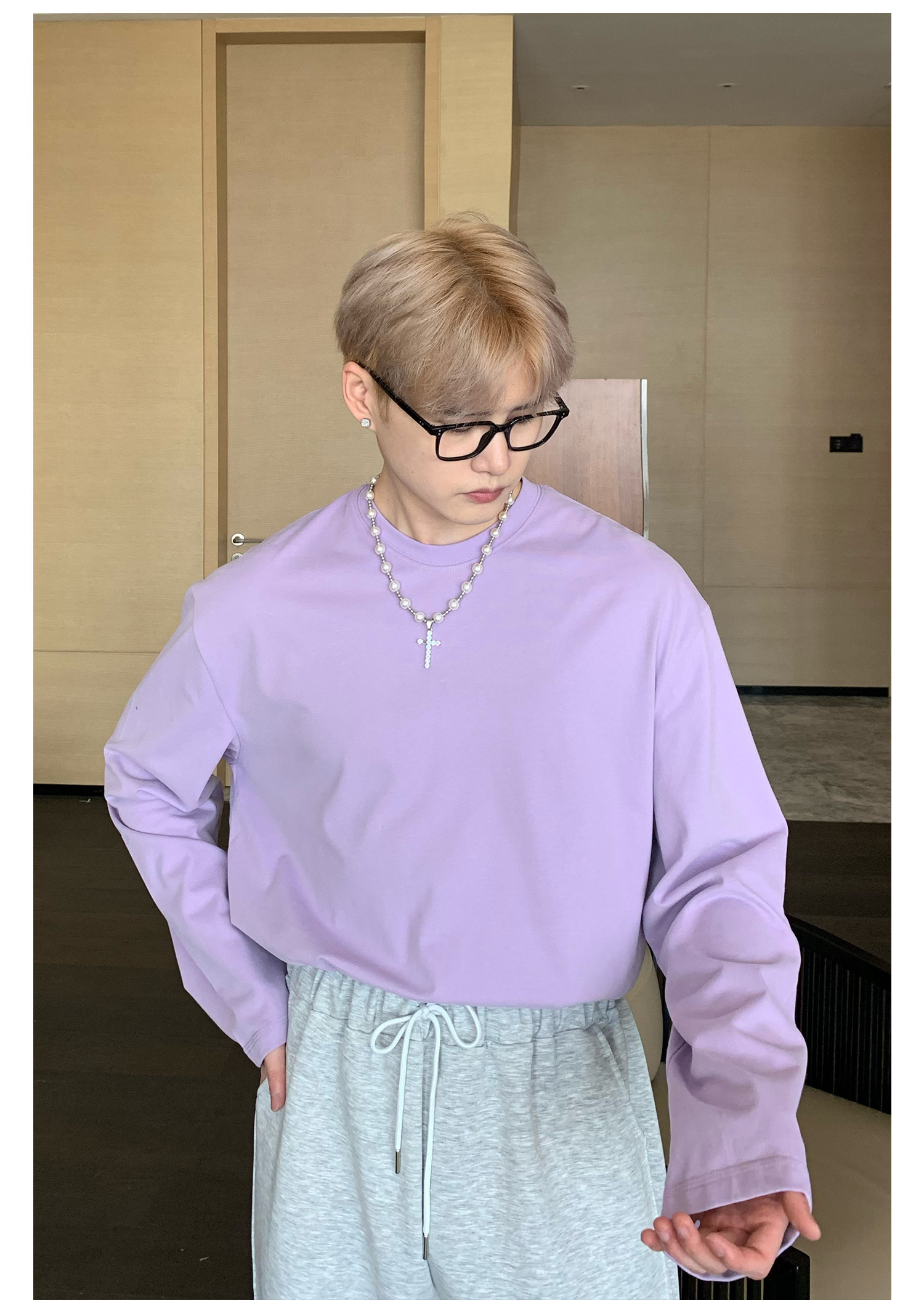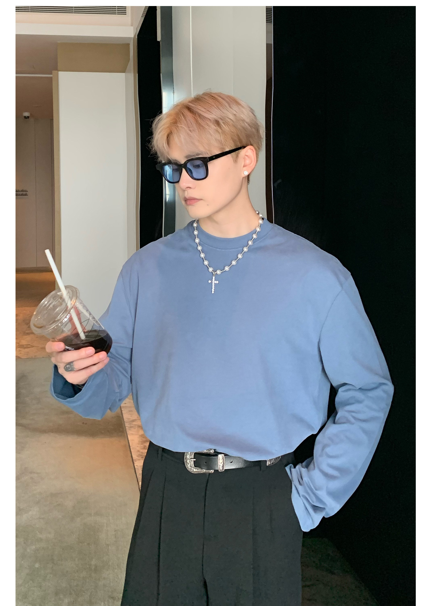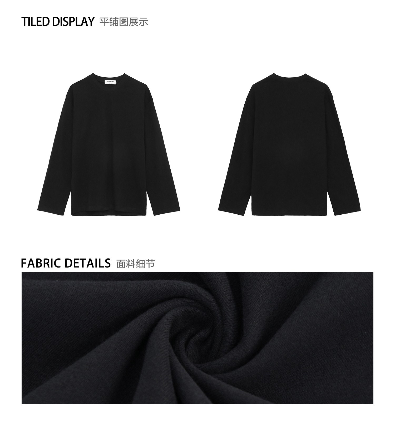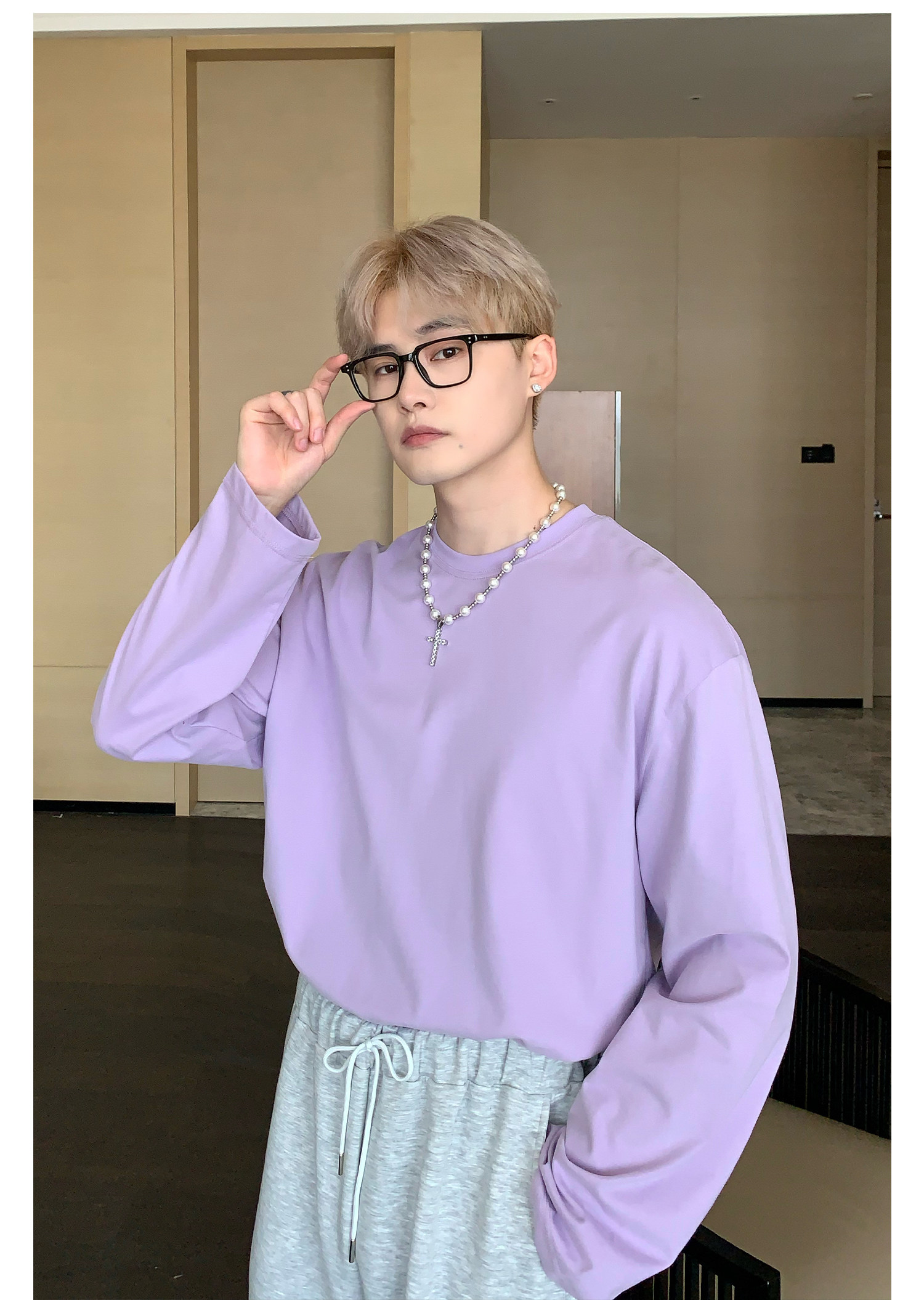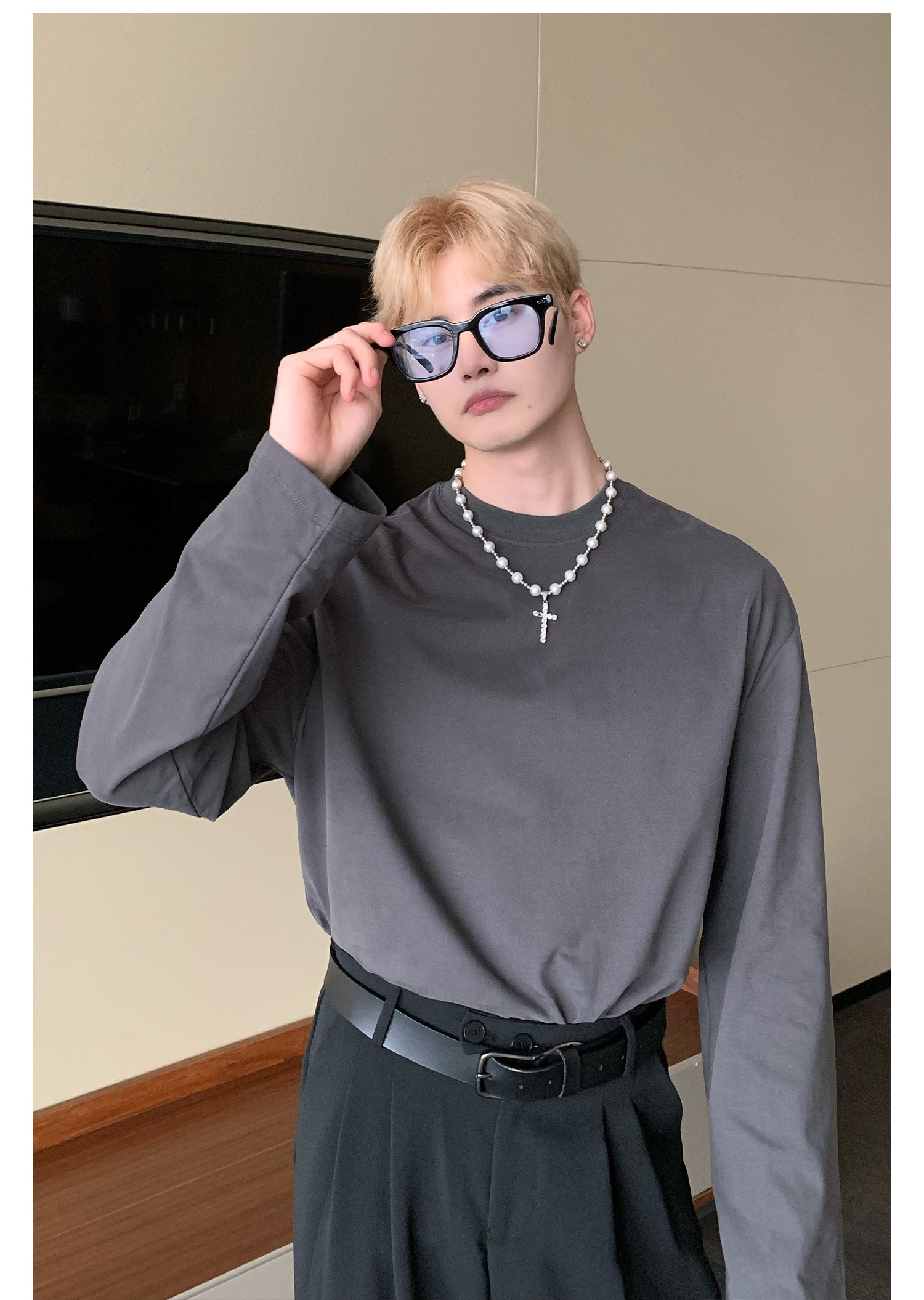 cuibuju 高品質純棉內搭打底衫男寬松秋冬圓領純白淨色長袖T恤ins