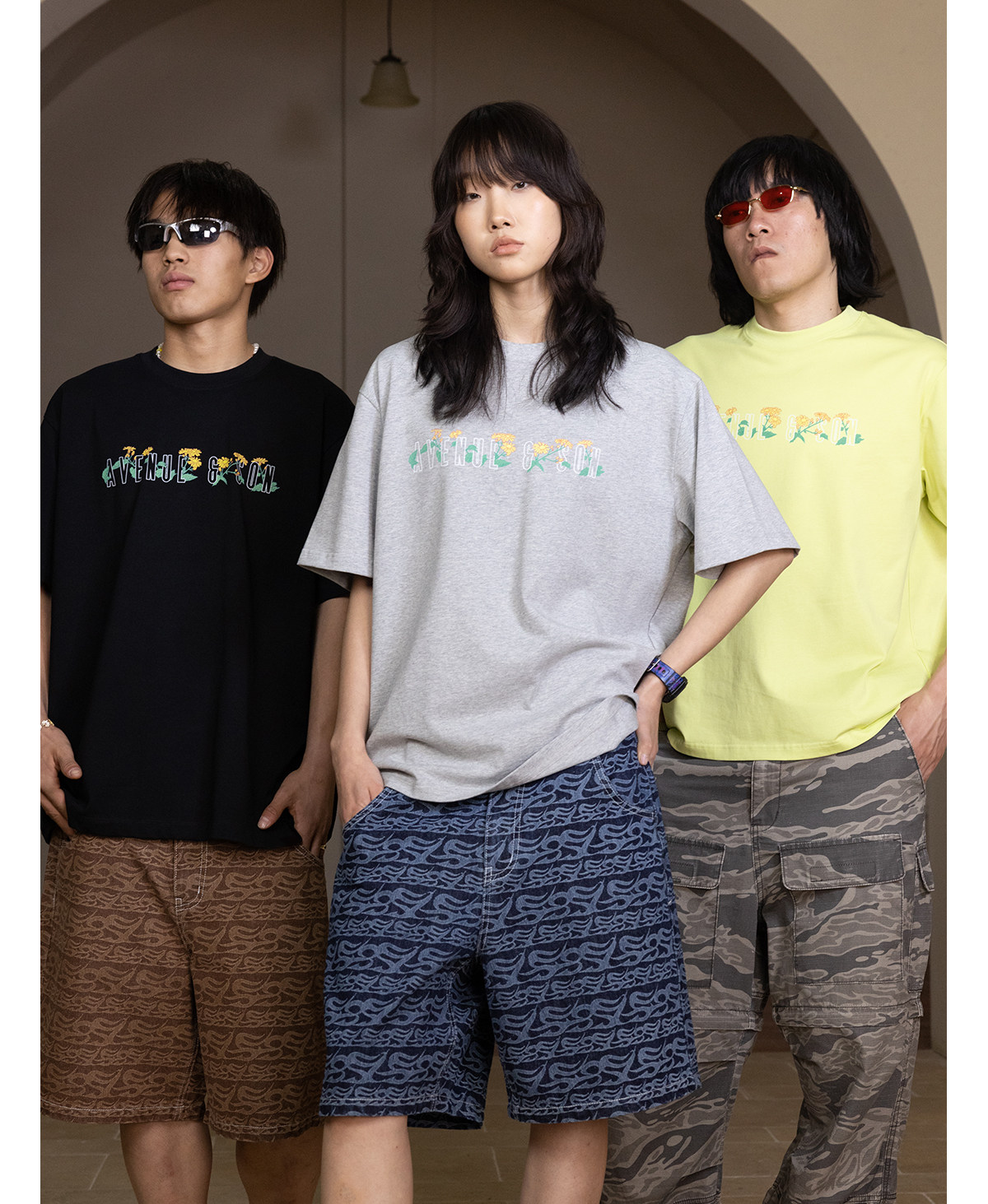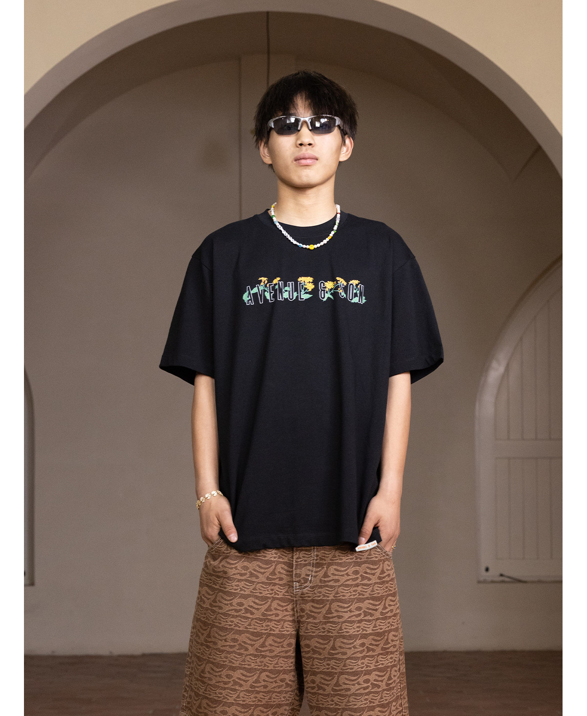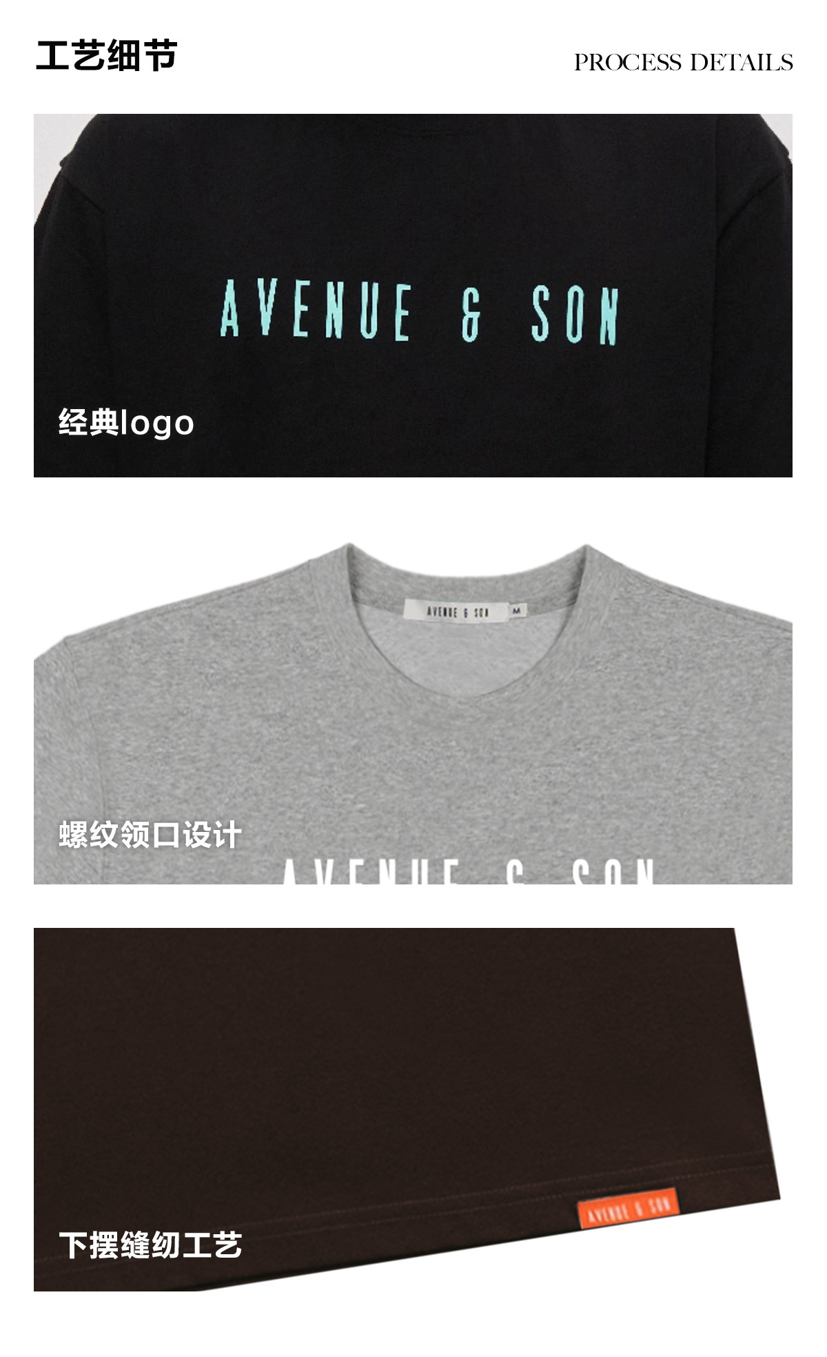 AVENUE&SON 大道之子 夏季T恤圓領寬松休閒簡約字母多色印花短袖