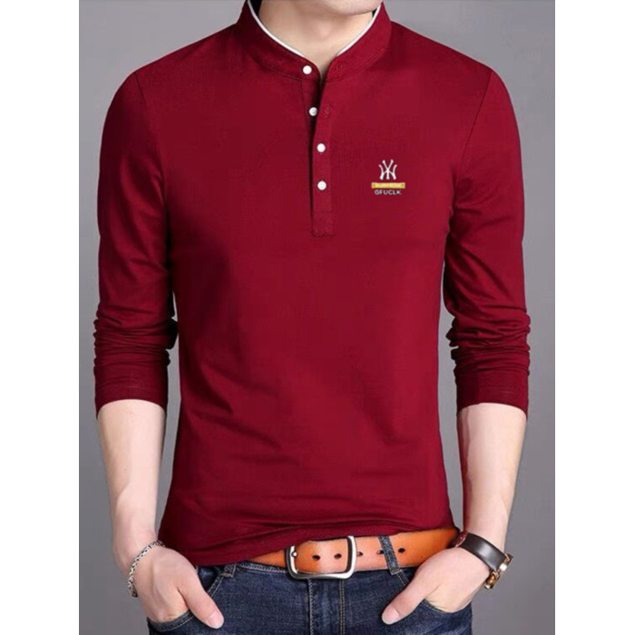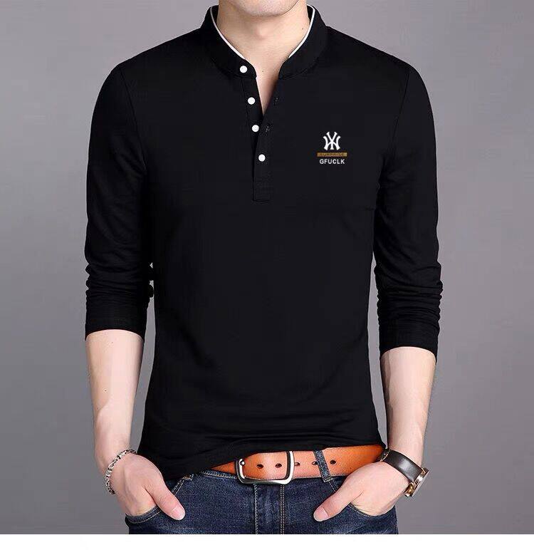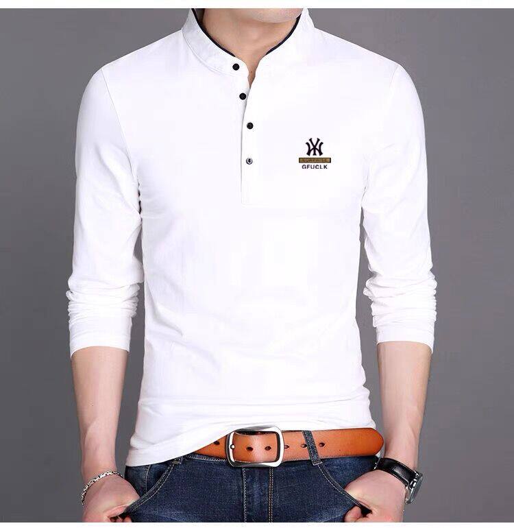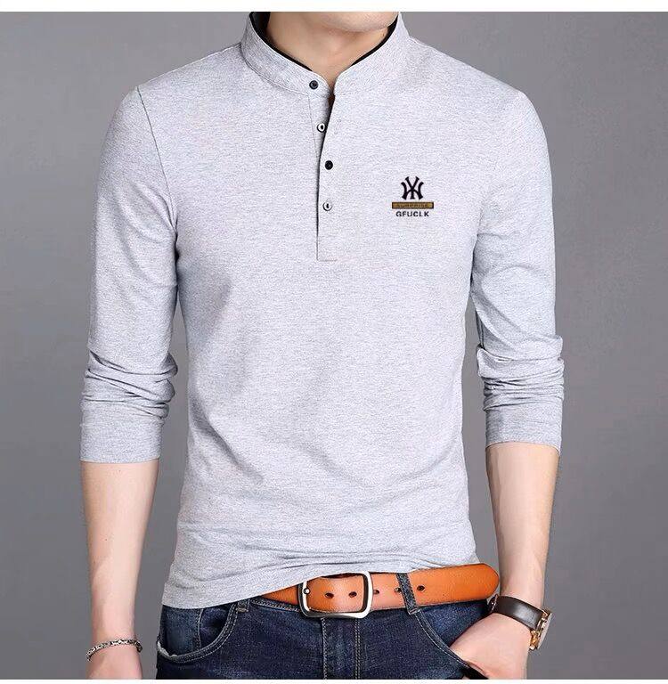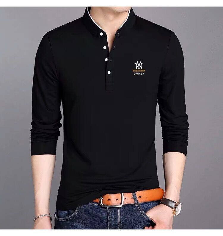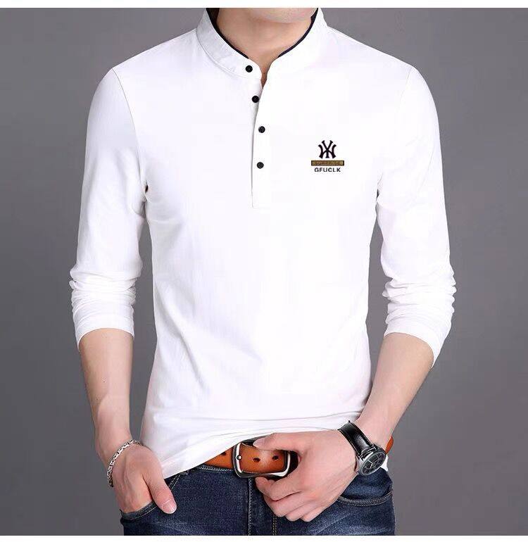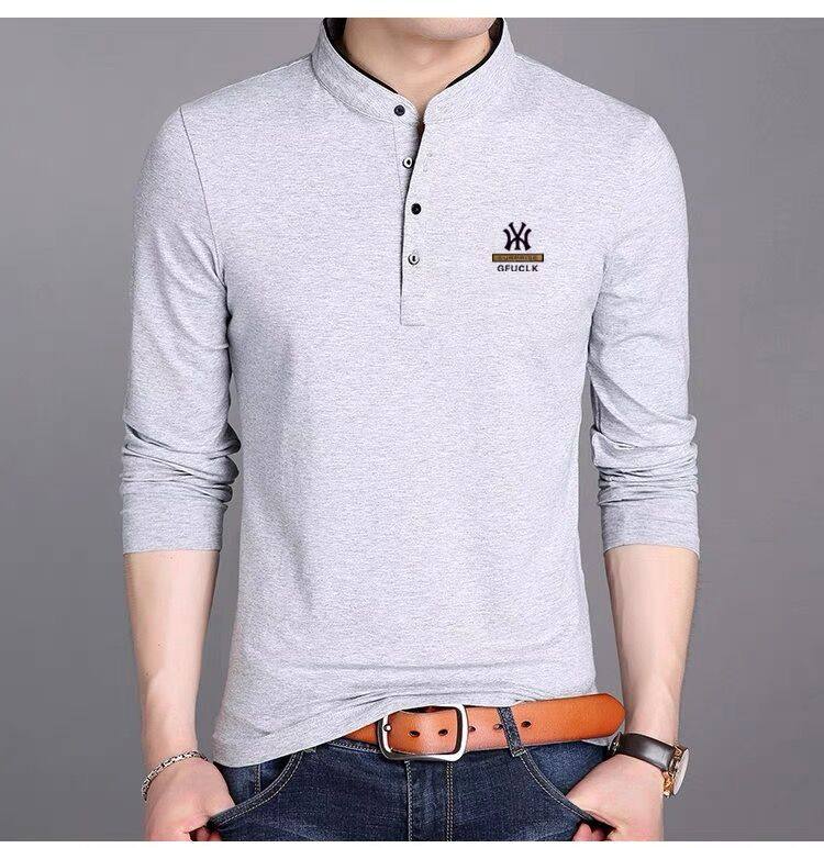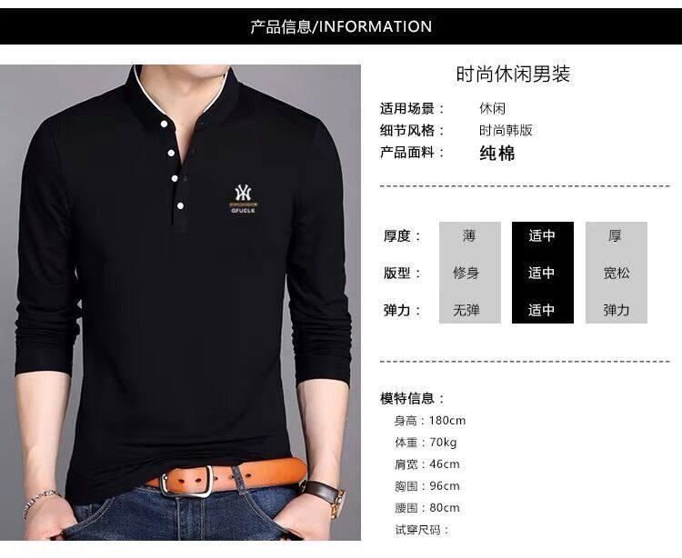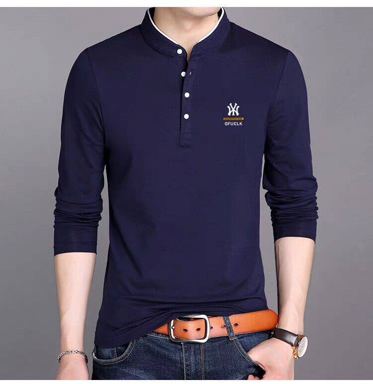 男裝春秋薄款立領純棉長袖t恤男秋裝上衣男士冬季加厚紅色打底衫