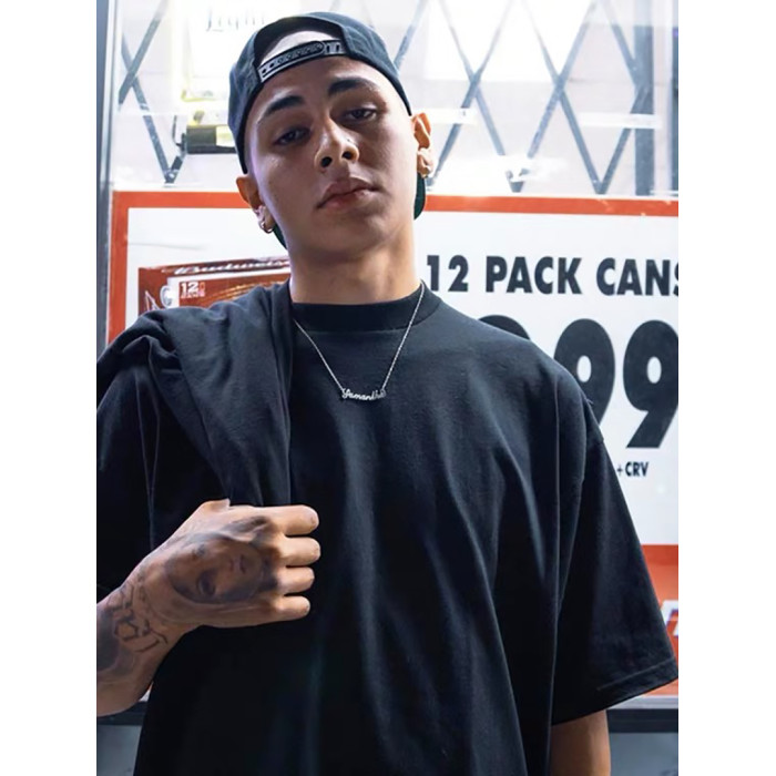 厚實小領口T恤黑色嘻哈寬松大版短袖不透素色半袖美式純棉oversiz