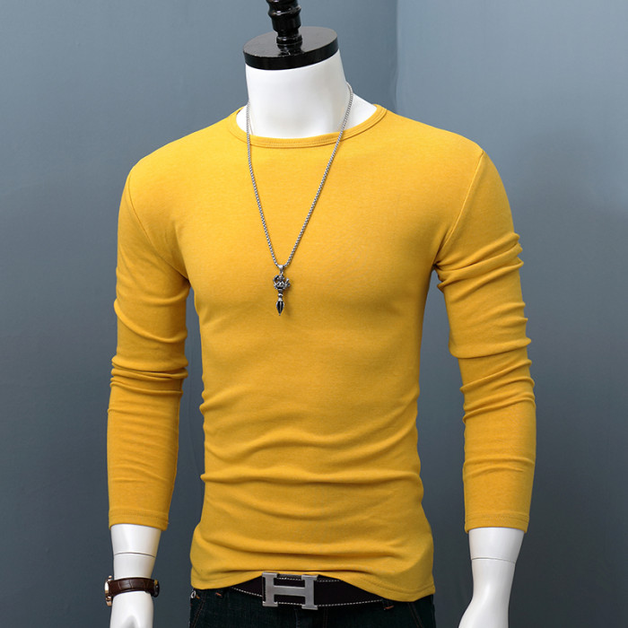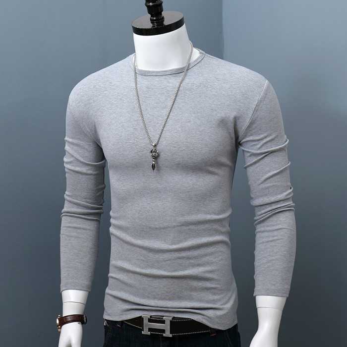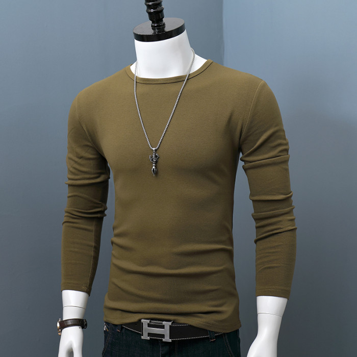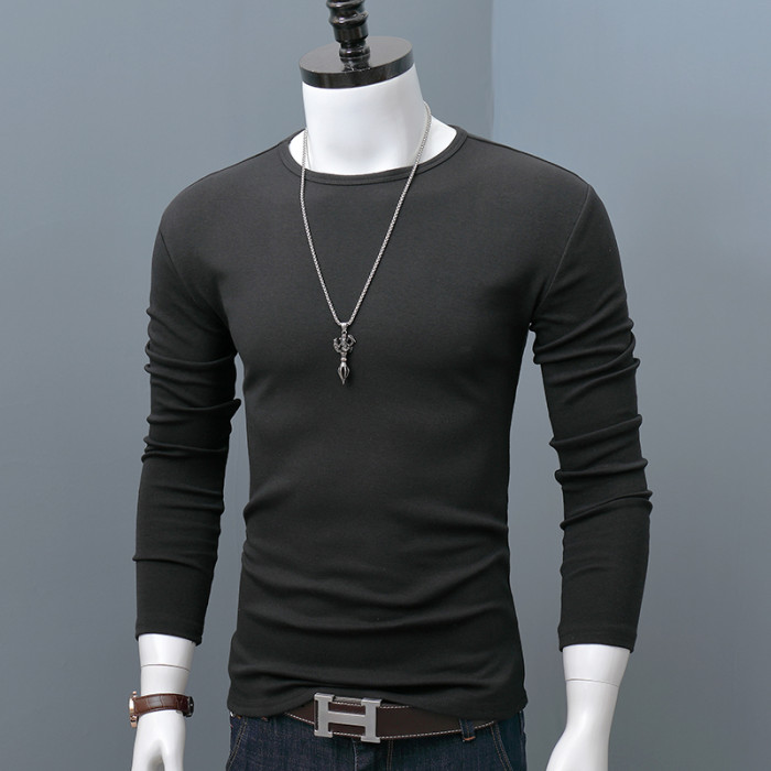 圓領長袖打底衫男士棉質秋冬季大碼修身純色透氣簡約大碼t恤上衣