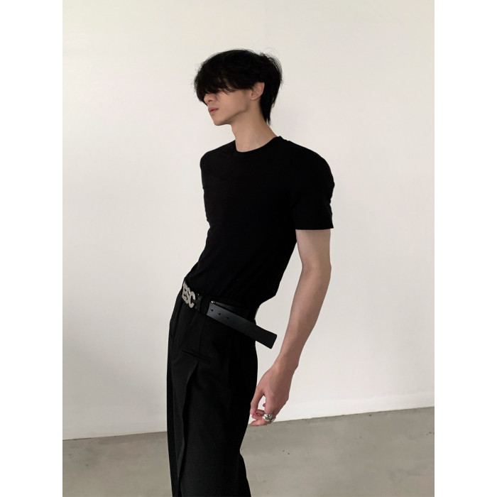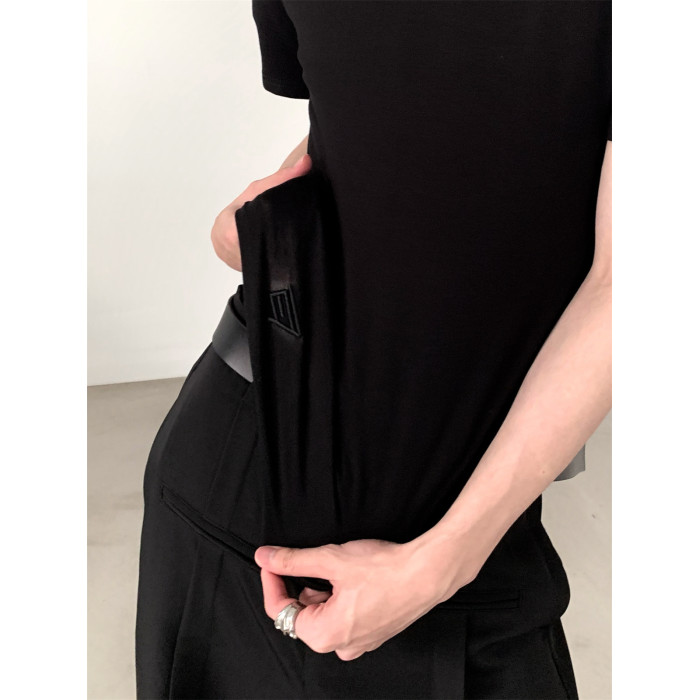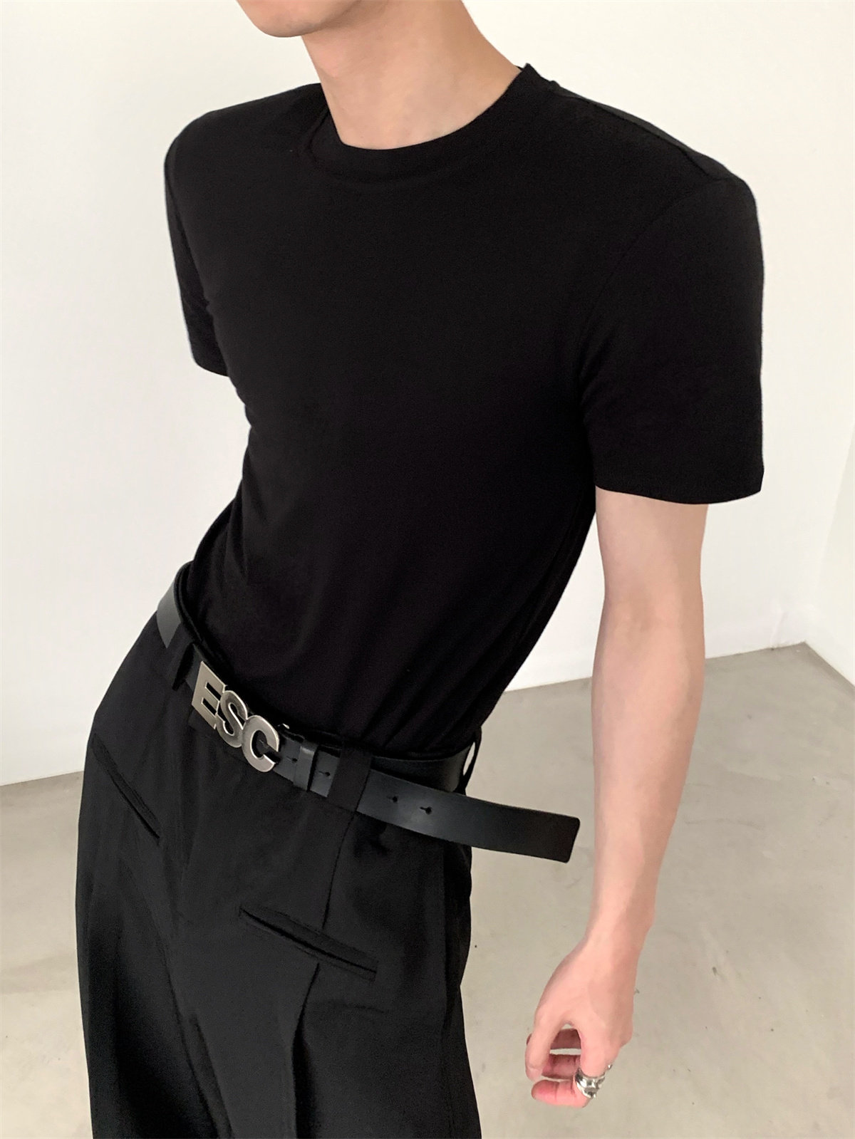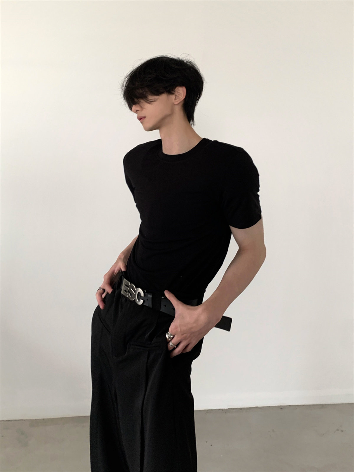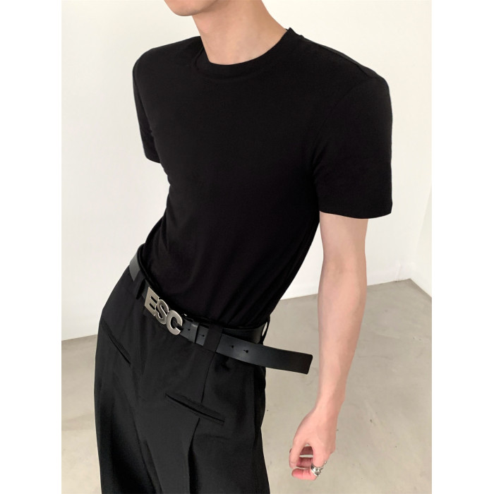 秋山風/小衆高級感修身短恤男夏季冰絲內搭打底衫黑色緊身正肩t恤