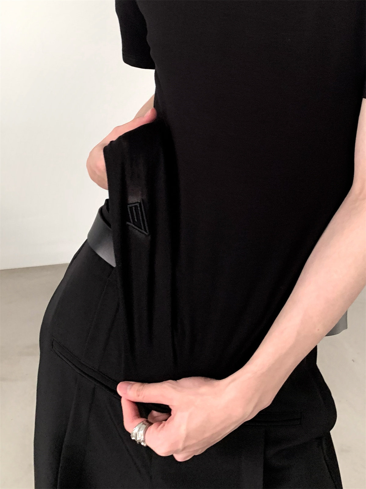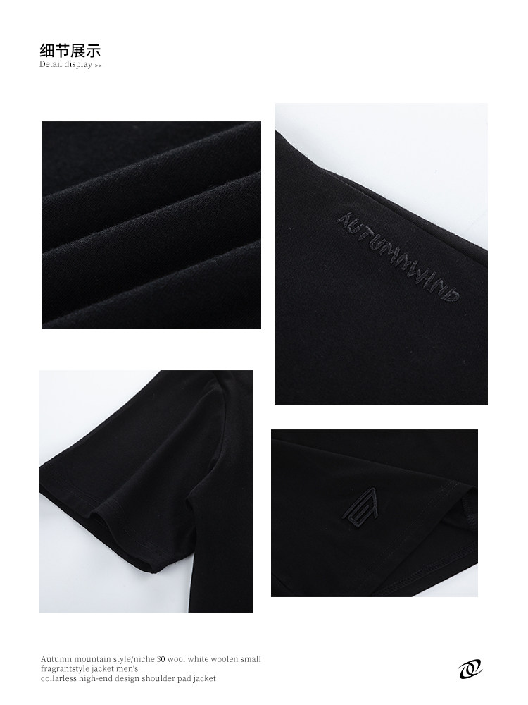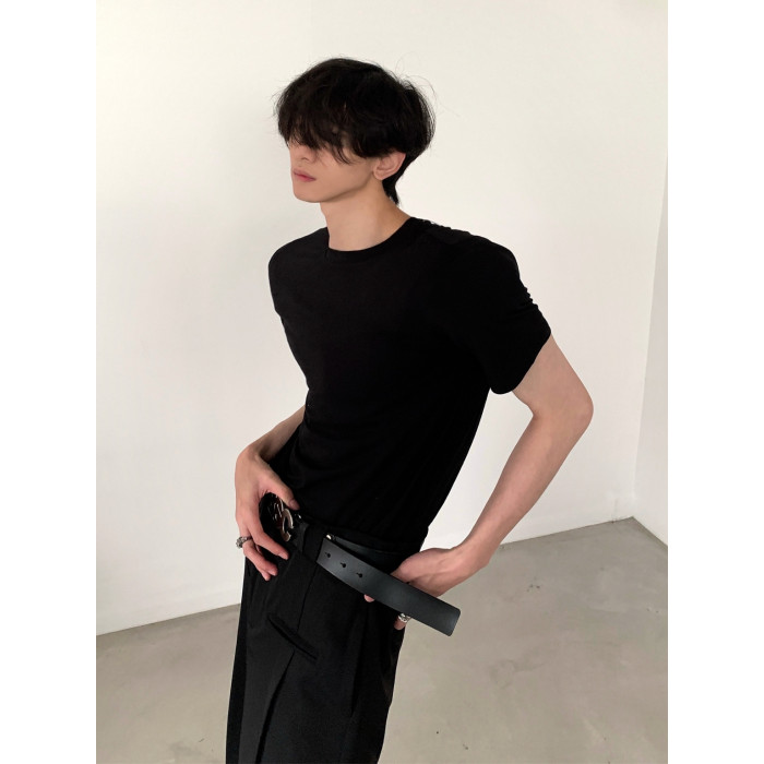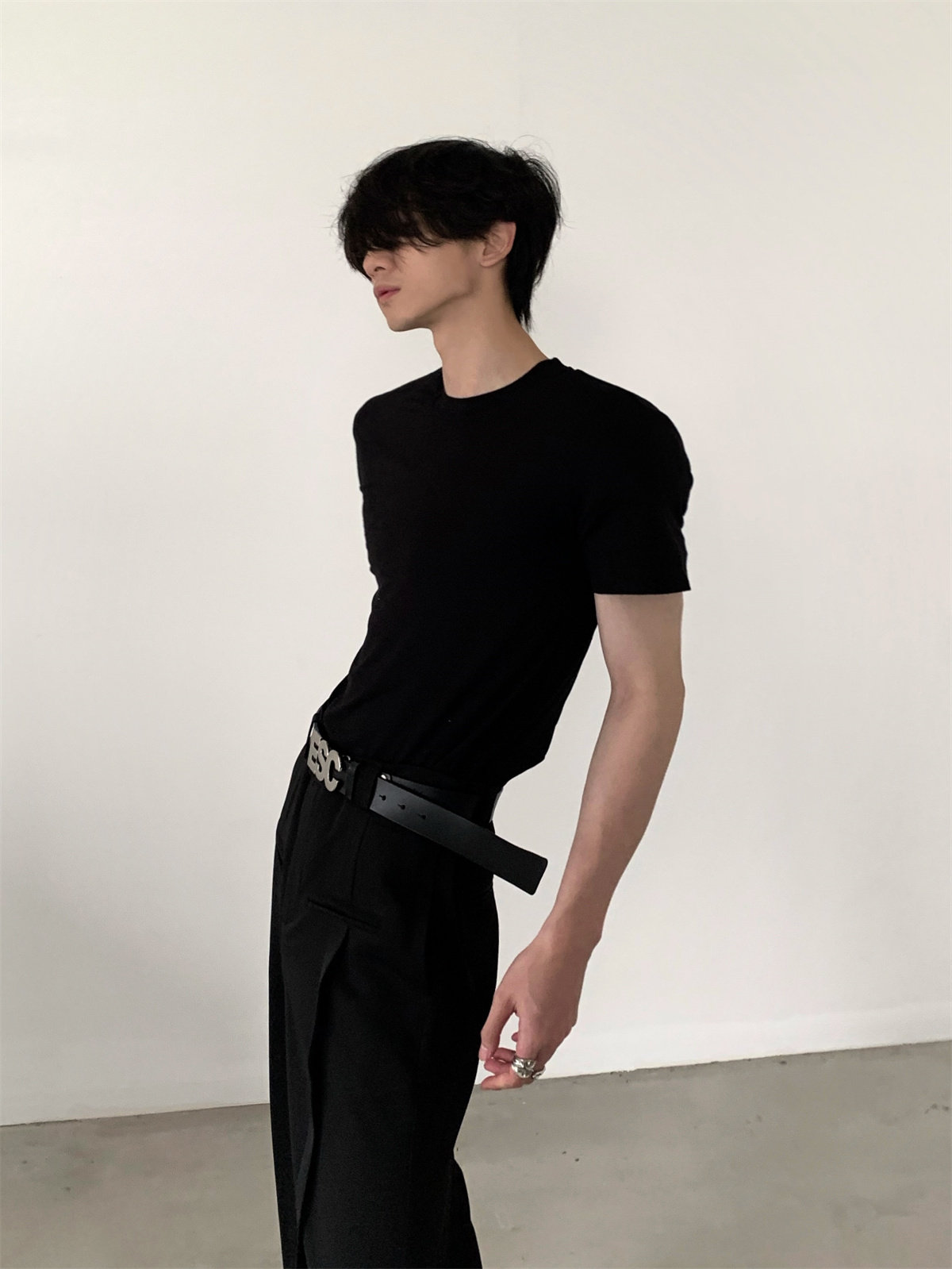 秋山風/小衆高級感修身短恤男夏季冰絲內搭打底衫黑色緊身正肩t恤
