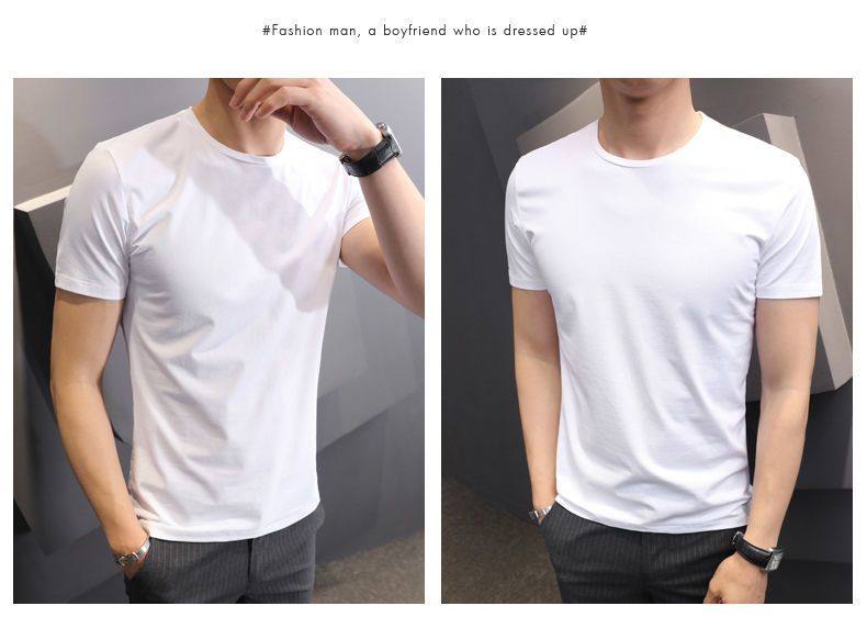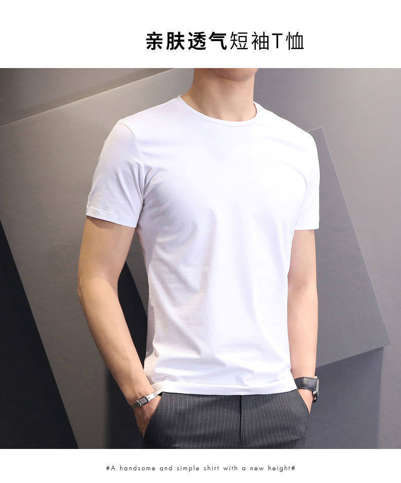 保羅高檔純棉男士短袖純白色帥氣半袖夏季休閒T恤修身中青年體恤