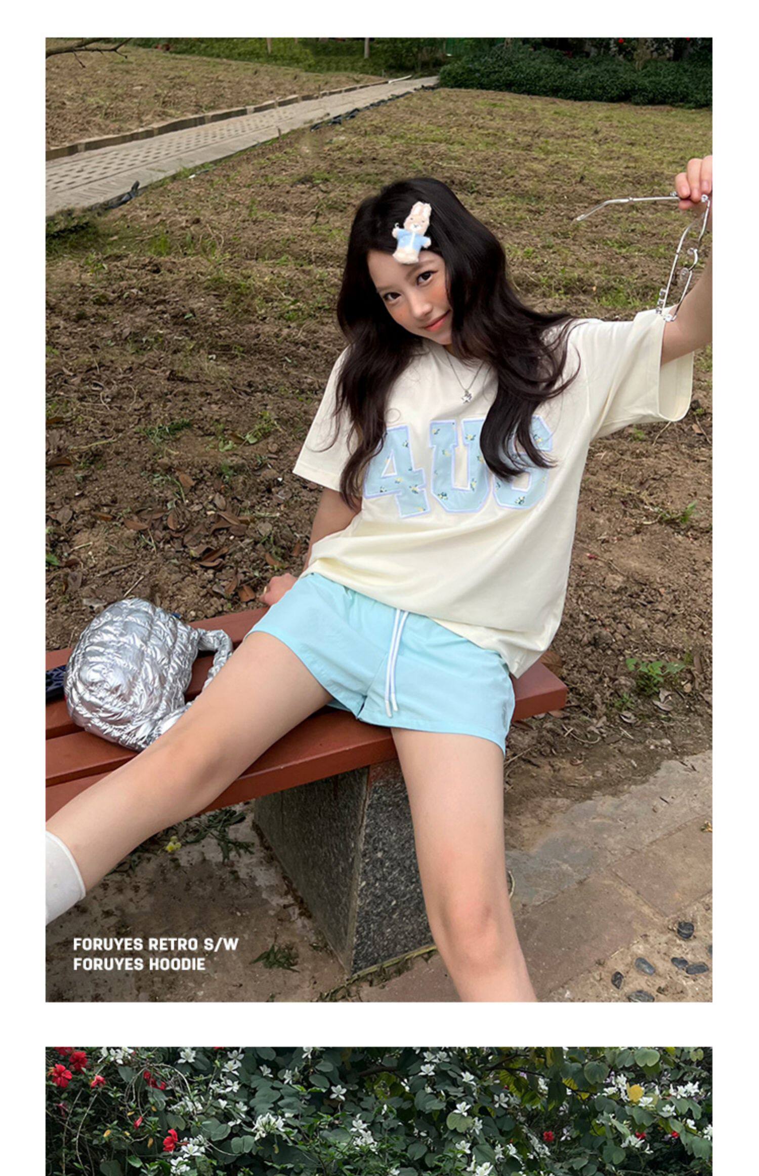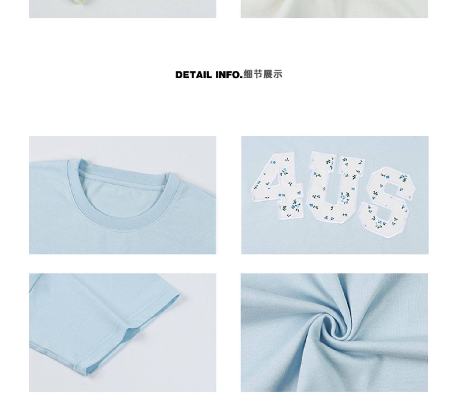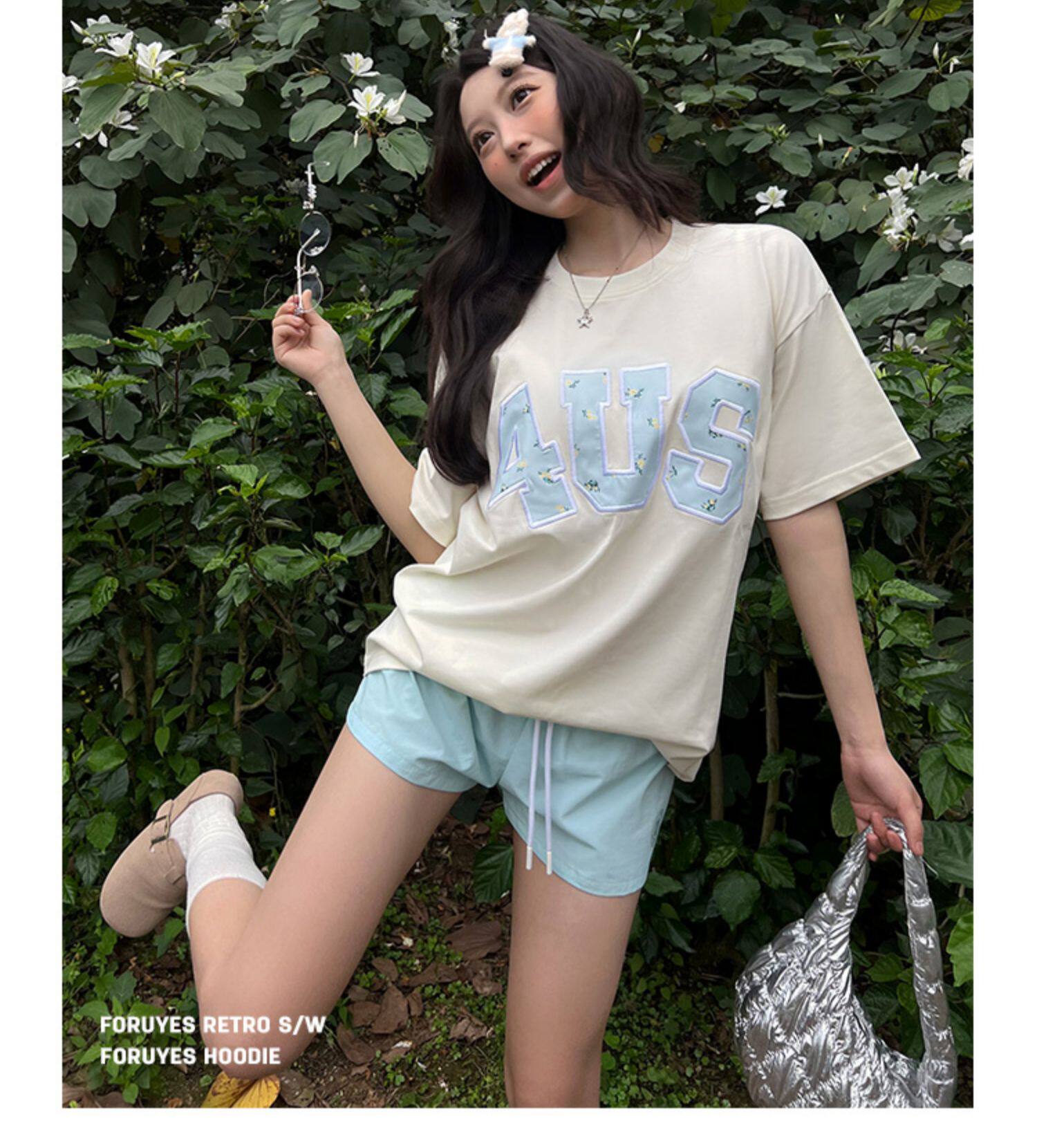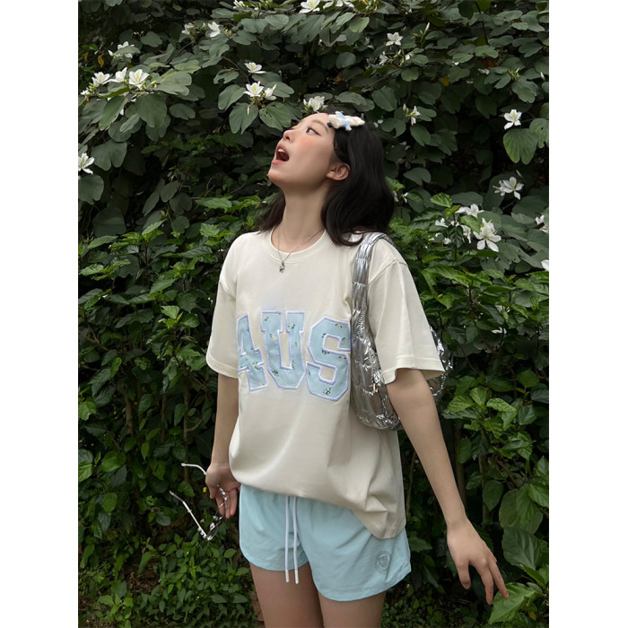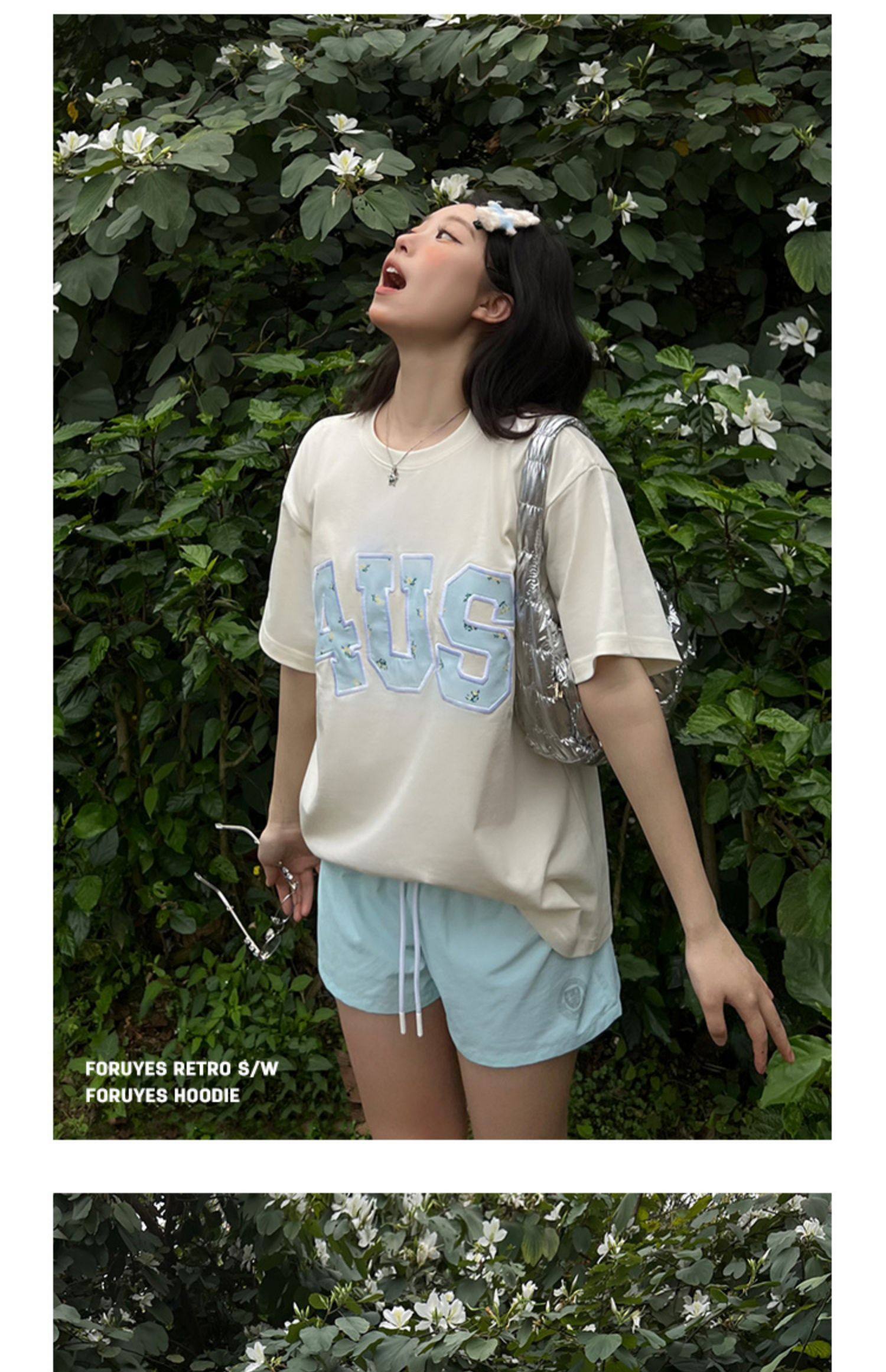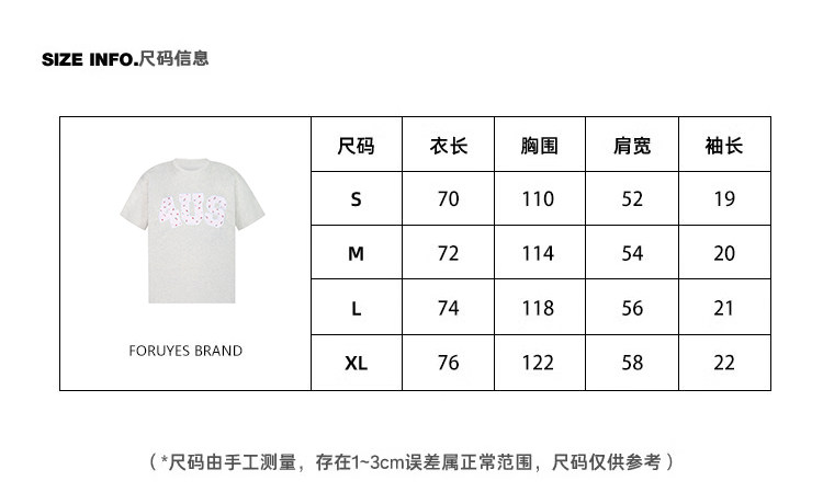 FORUYES官方店 春夏貼布綉碎花國潮牌情侶男女寬松打底衫T恤短袖