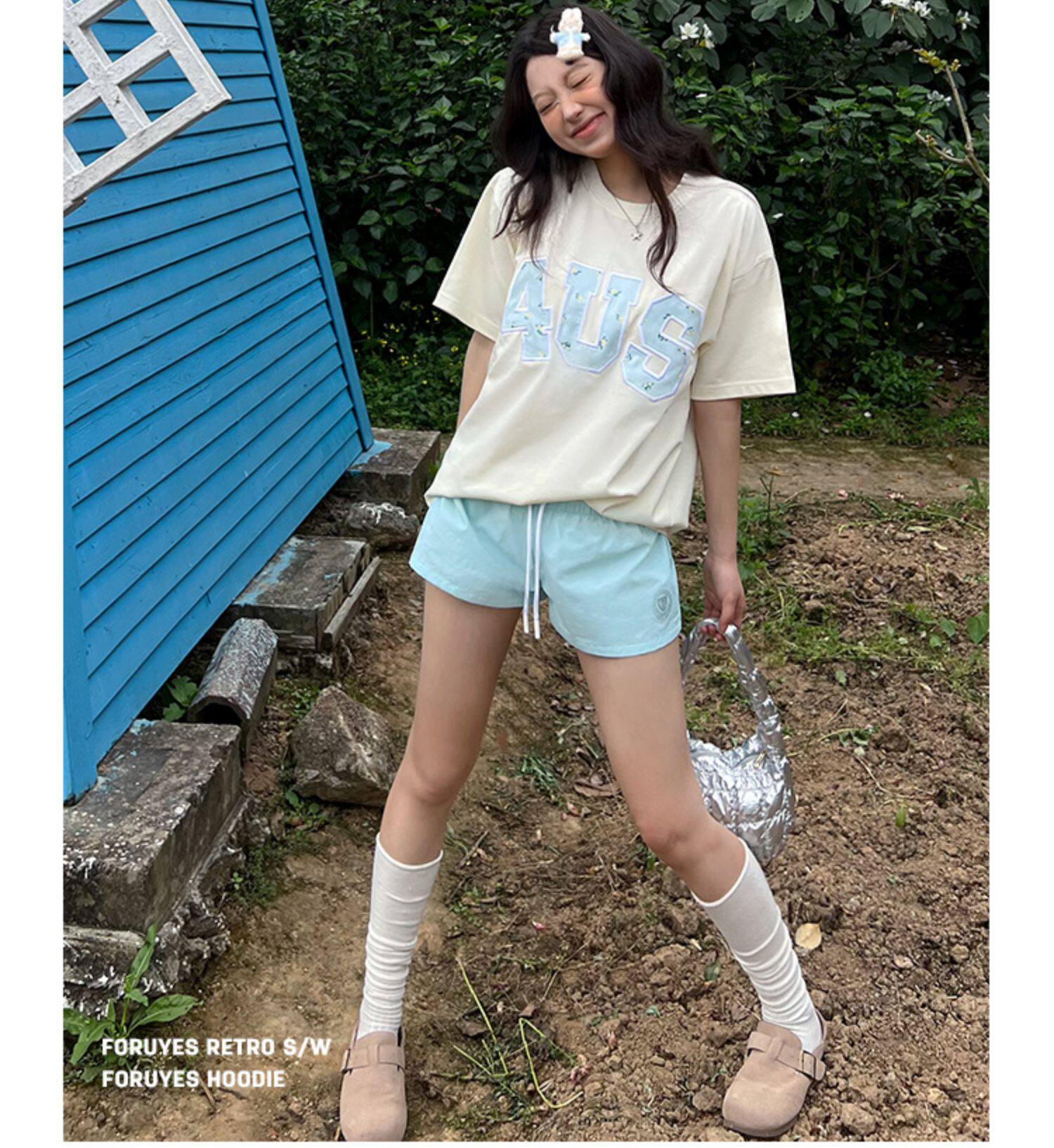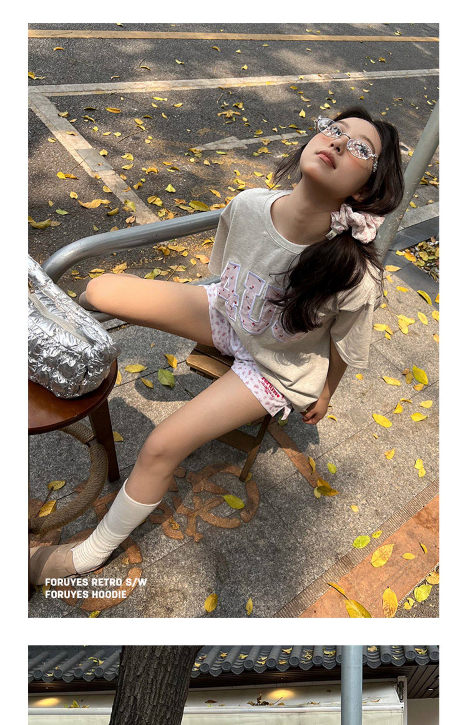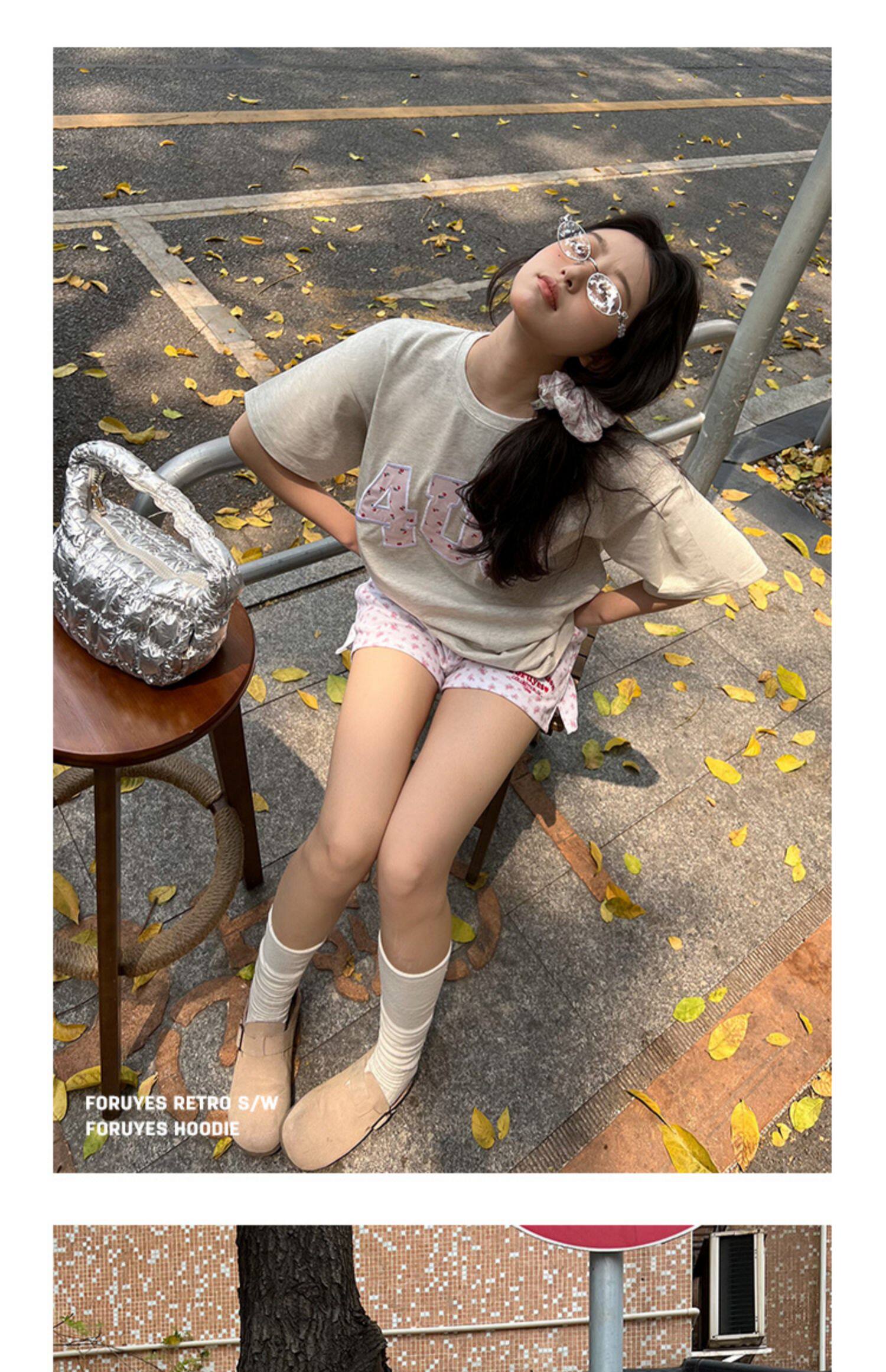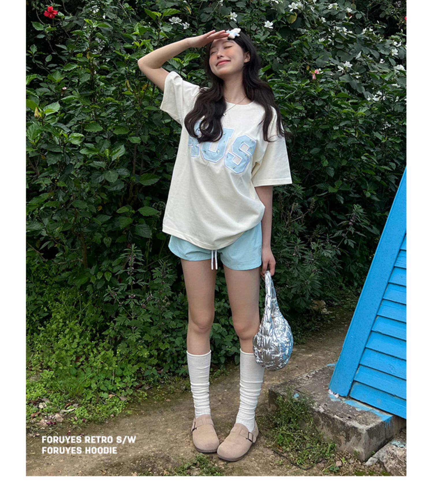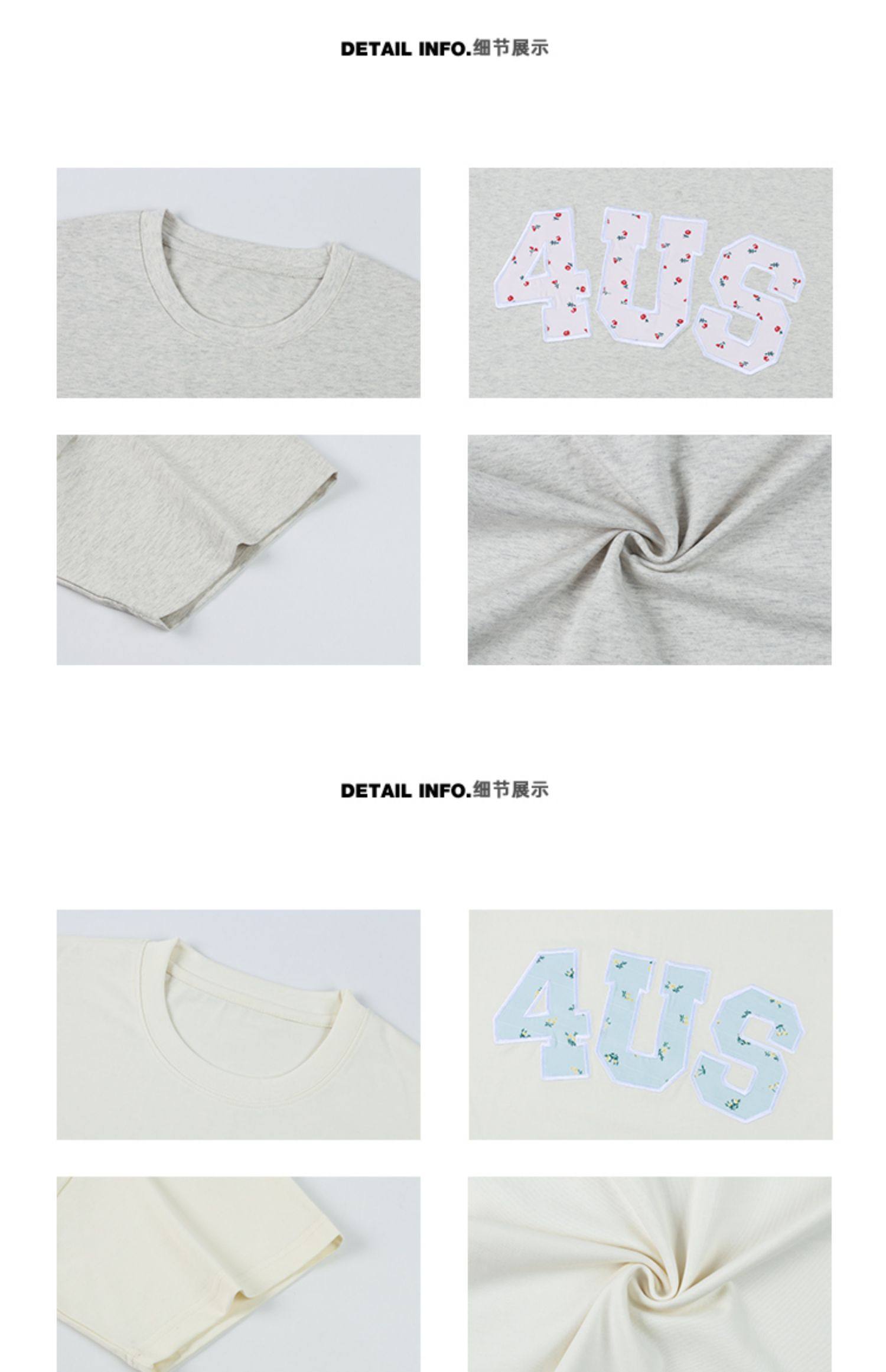 FORUYES官方店 春夏貼布綉碎花國潮牌情侶男女寬松打底衫T恤短袖