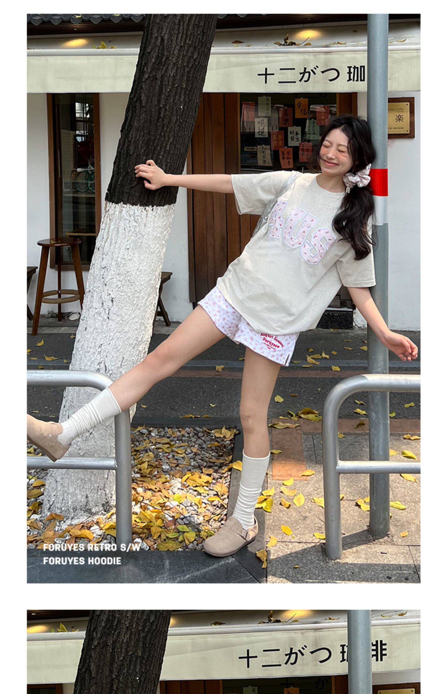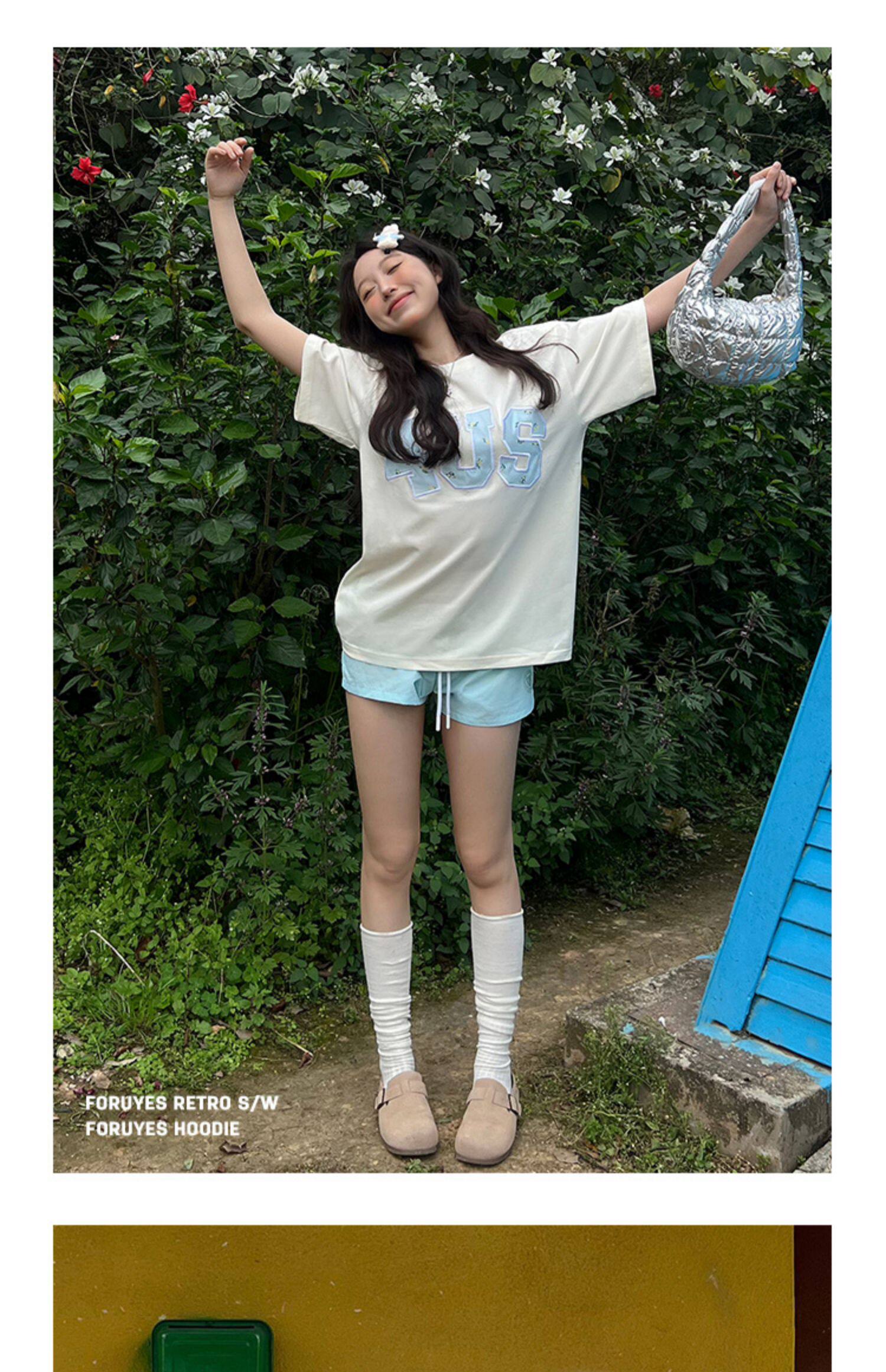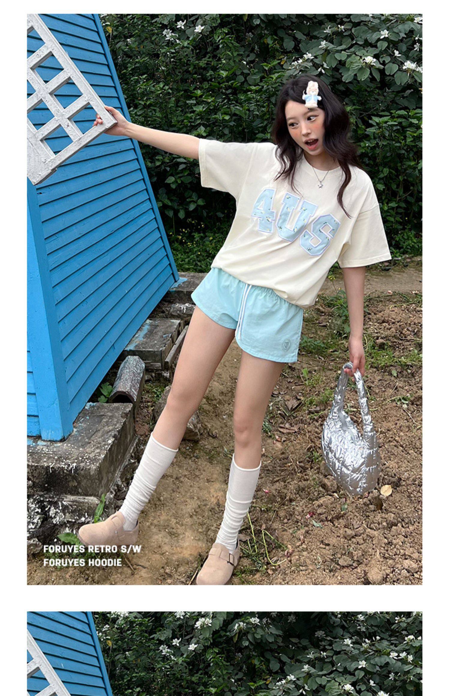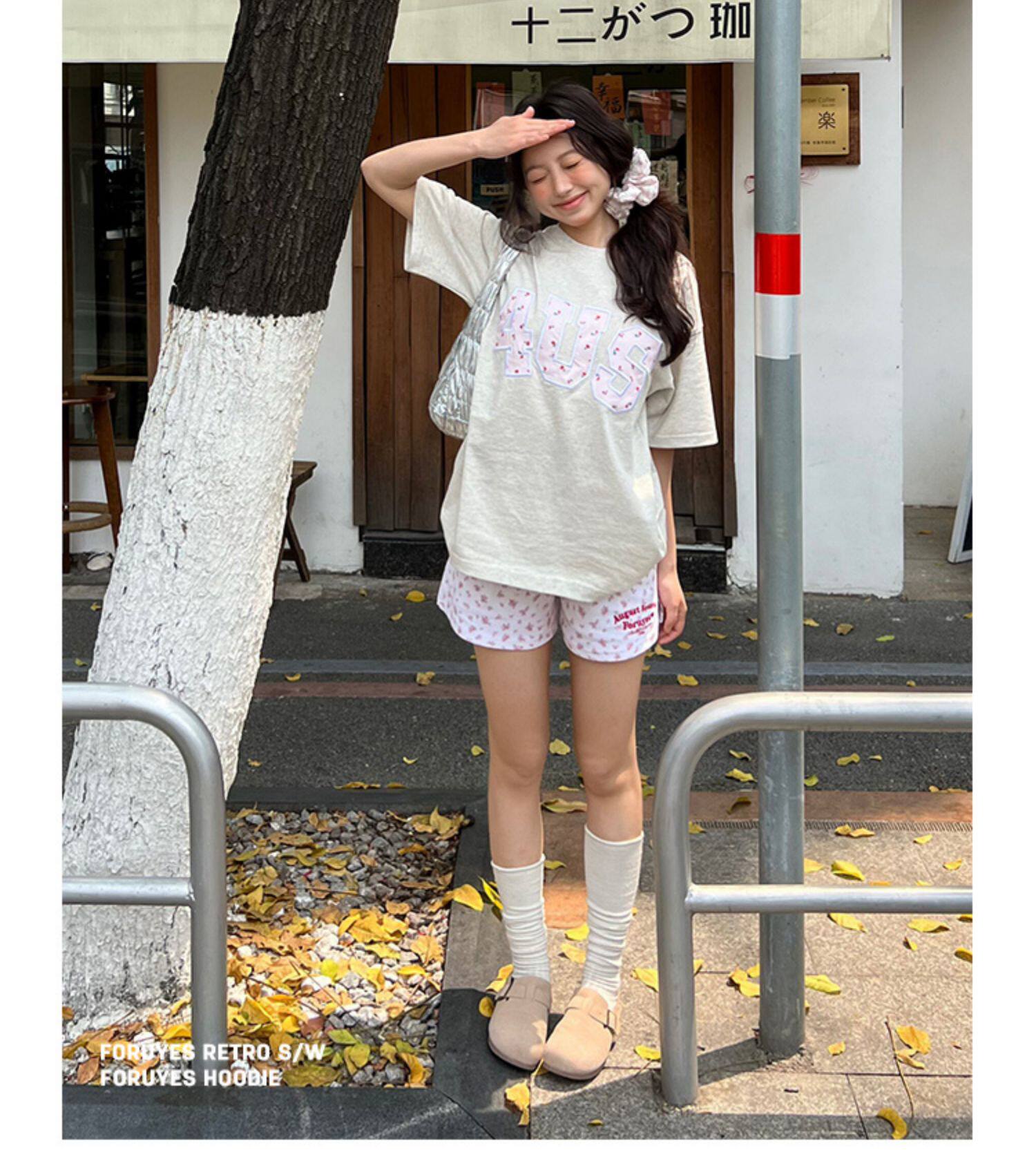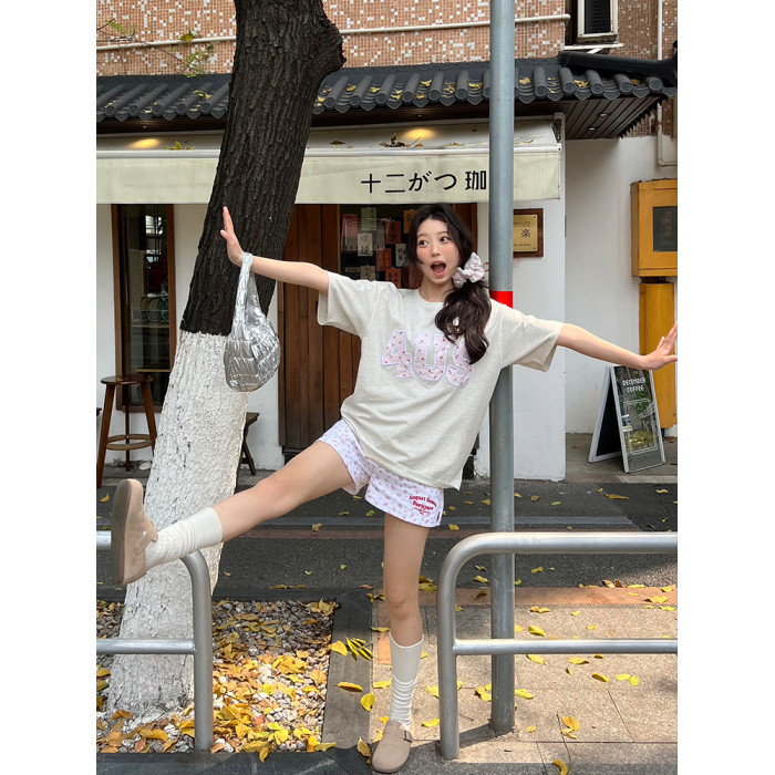 FORUYES官方店 春夏貼布綉碎花國潮牌情侶男女寬松打底衫T恤短袖