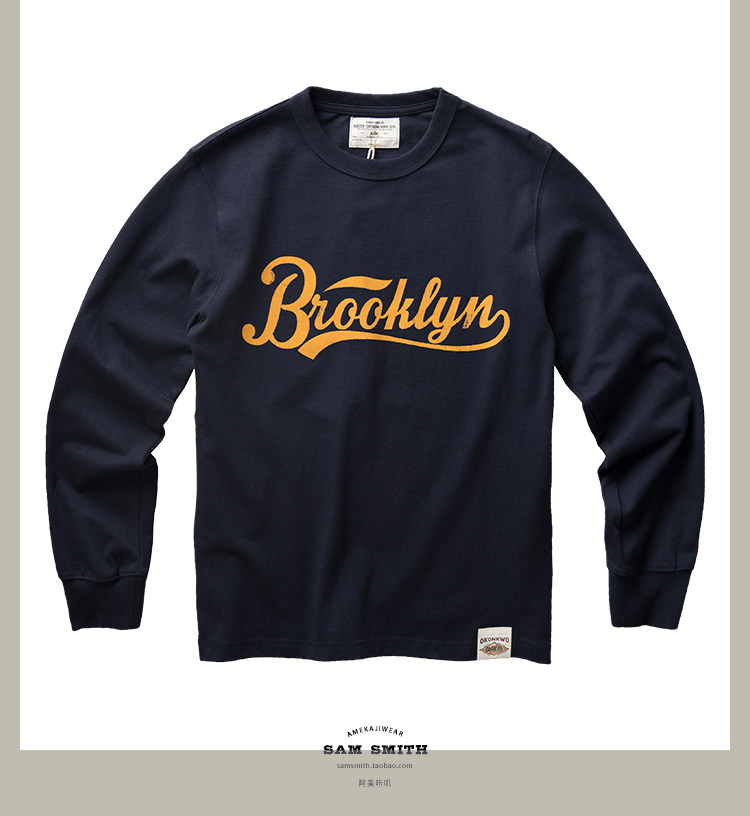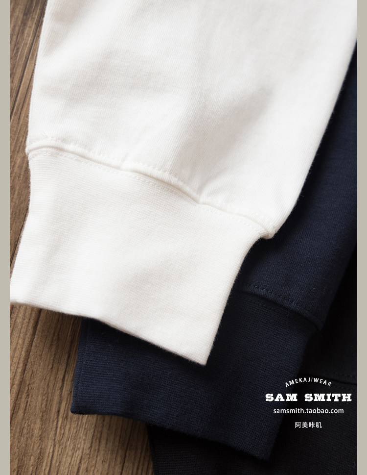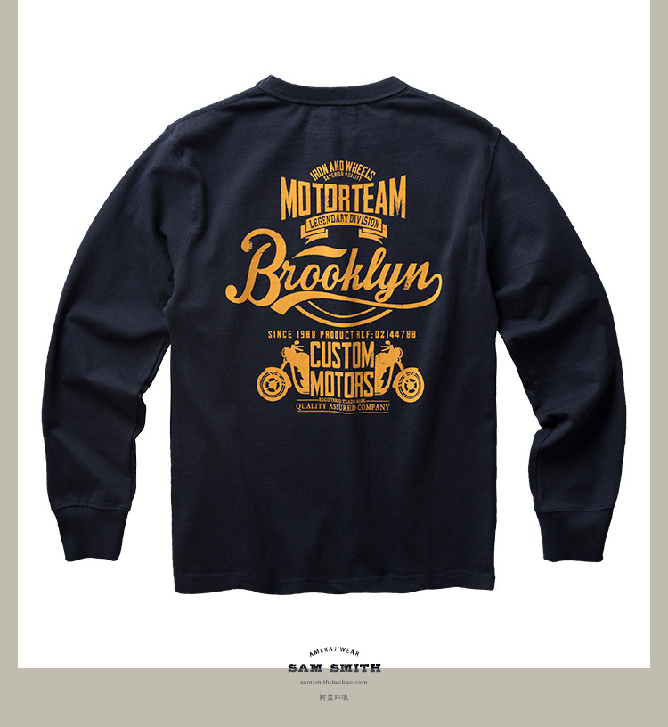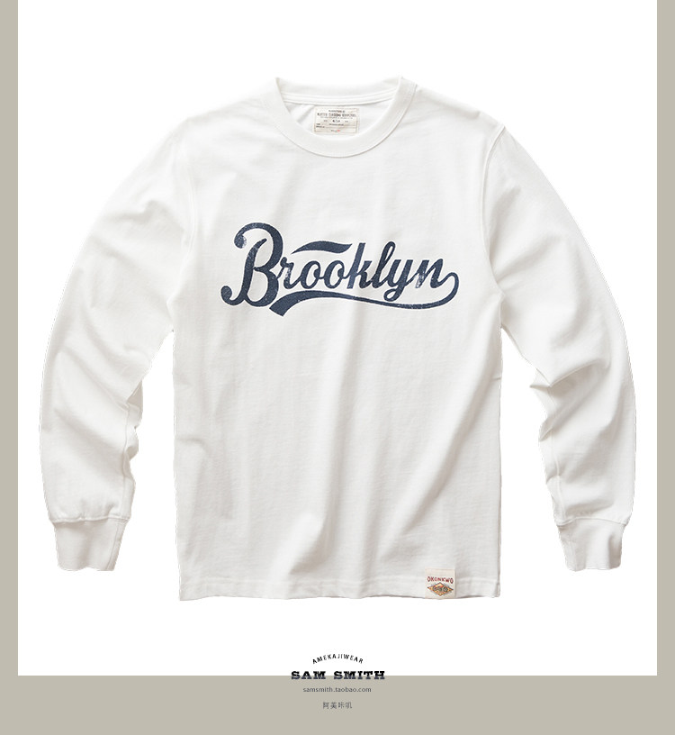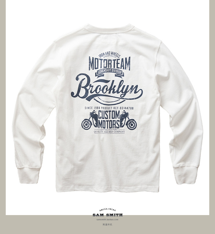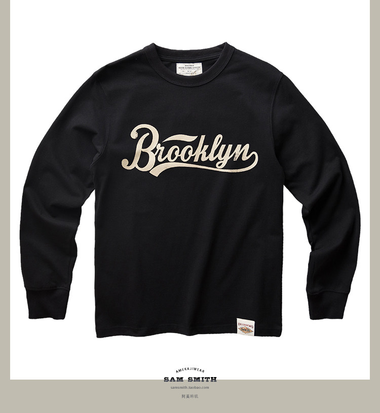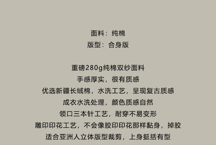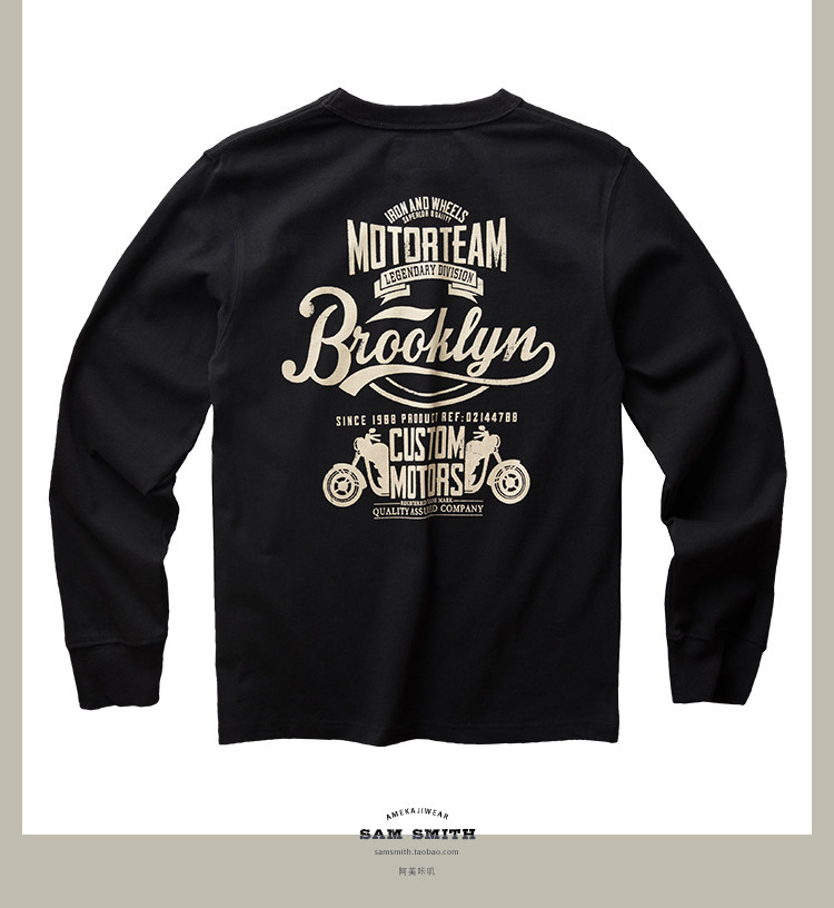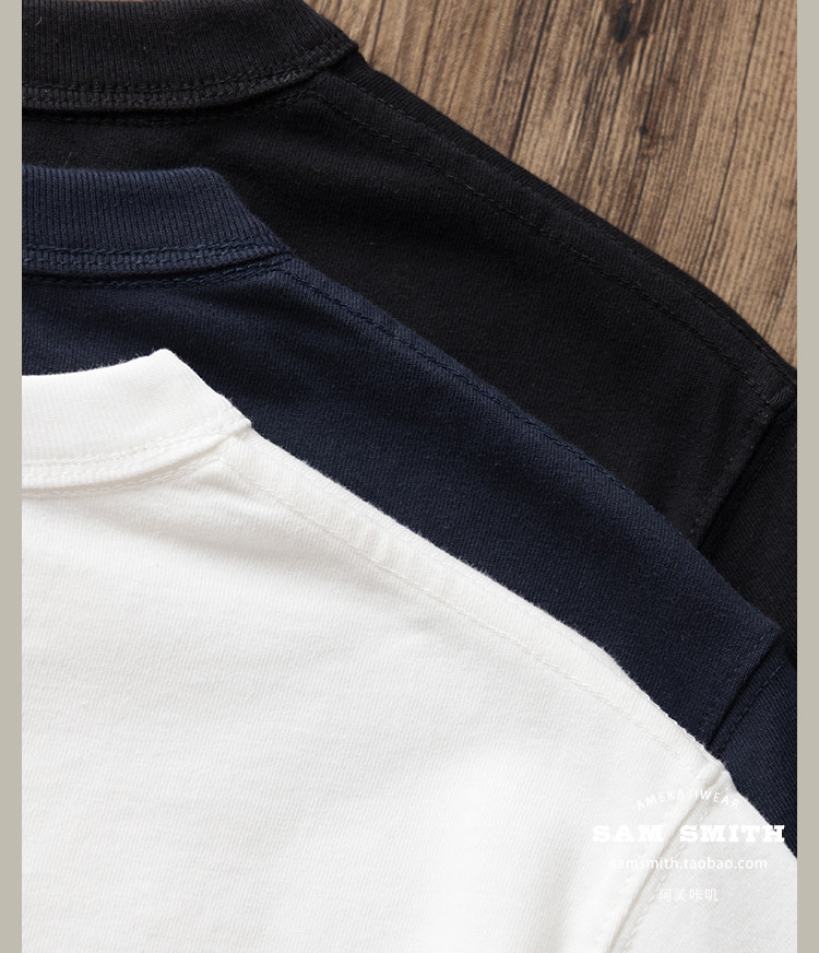 重磅280g阿美哢嘰長袖T恤男士純棉圓領美式復古雙面印花打底衫秋