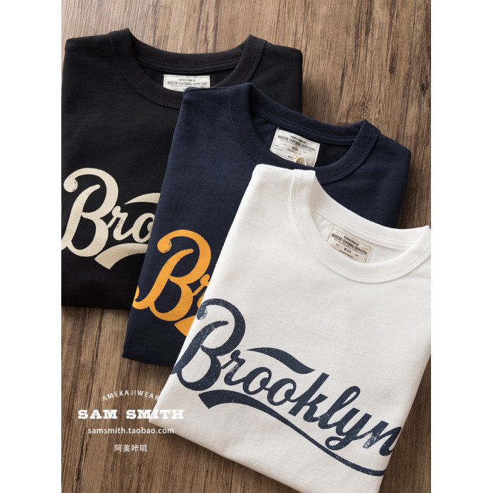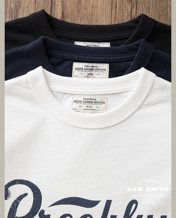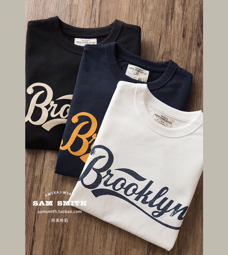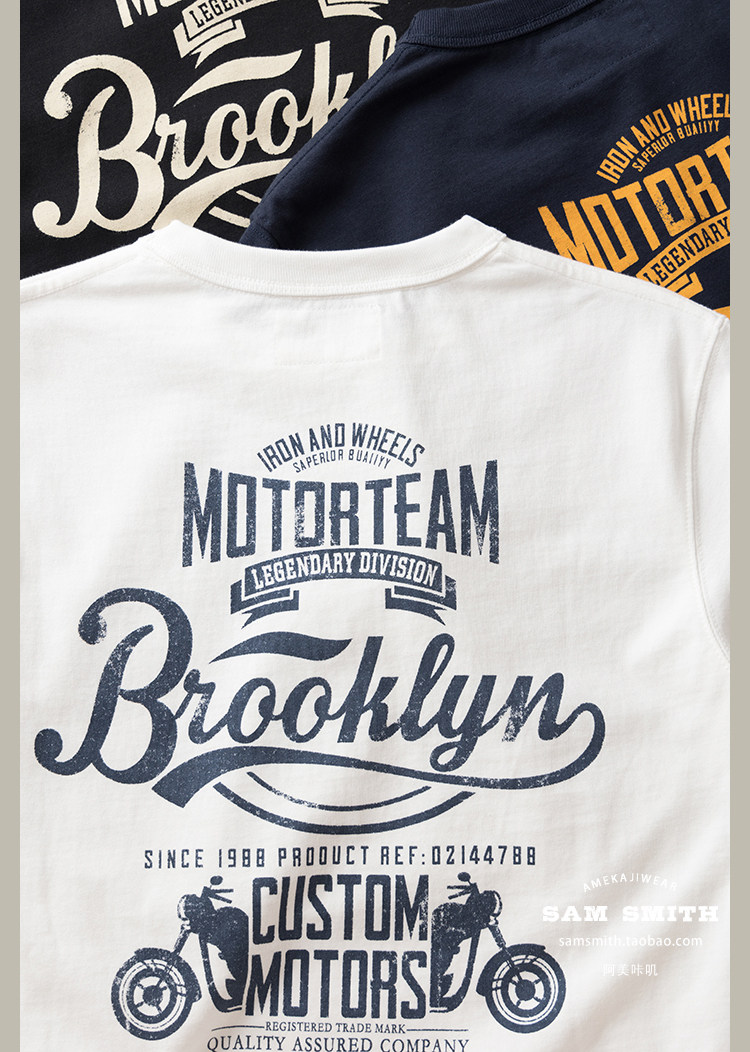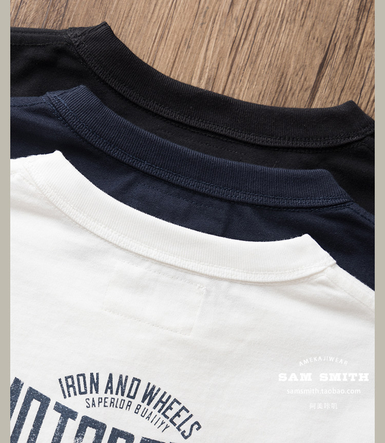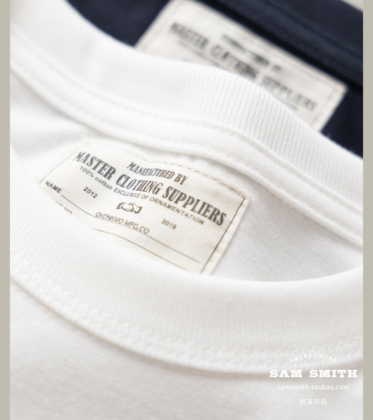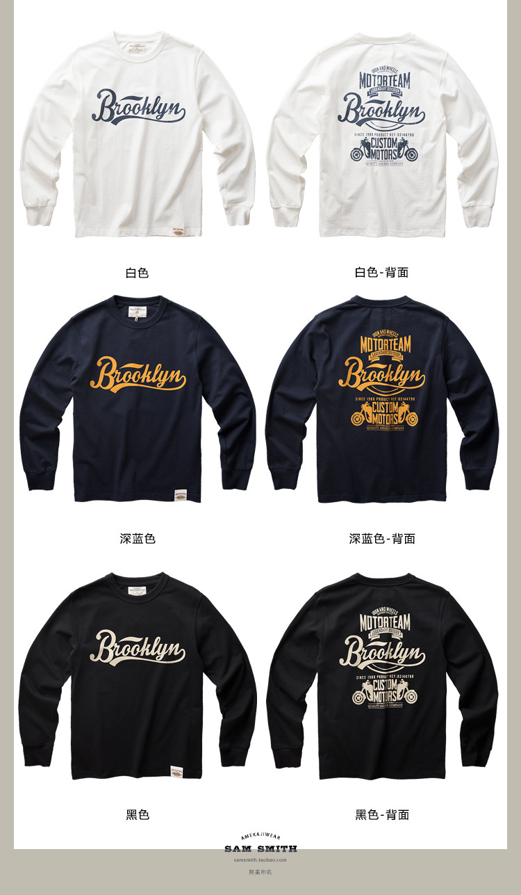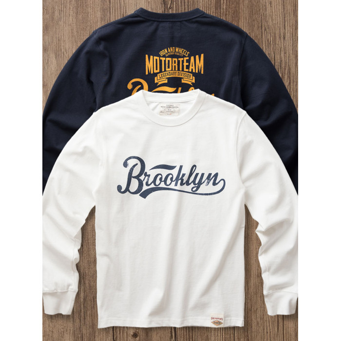 重磅280g阿美哢嘰長袖T恤男士純棉圓領美式復古雙面印花打底衫秋