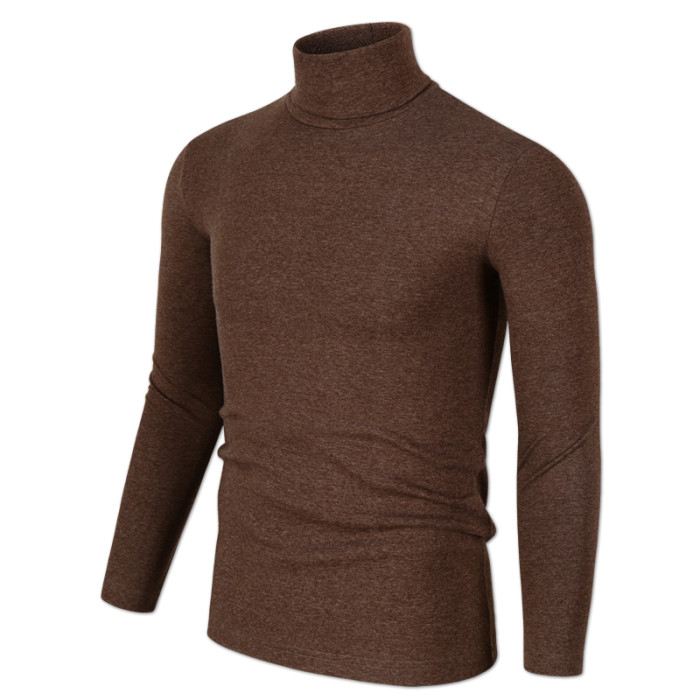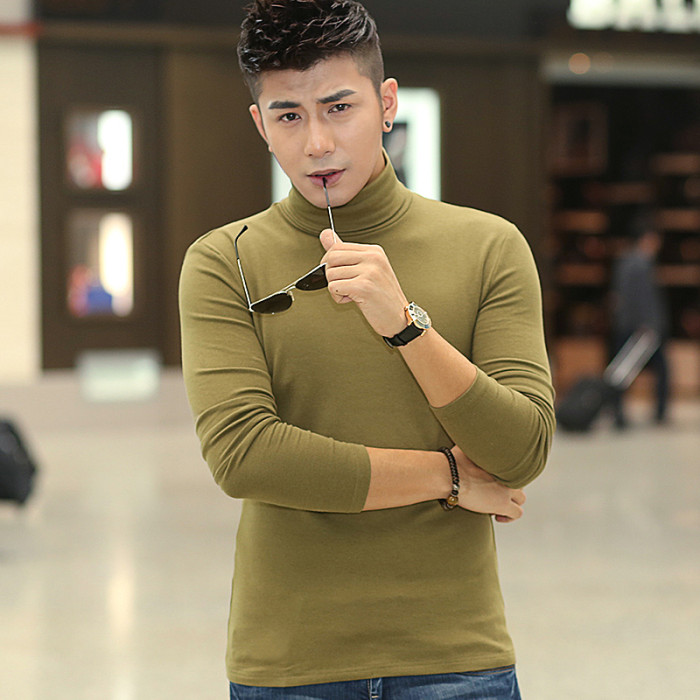 男士秋季莫代爾高領長袖t恤男裝修身打底衫緊身體恤韓版上衣服潮