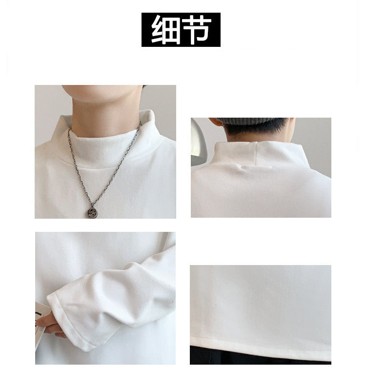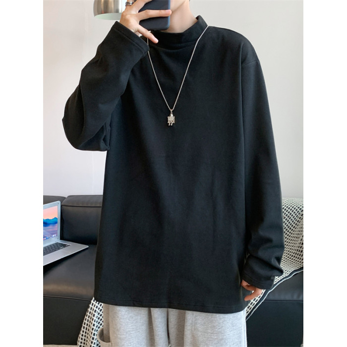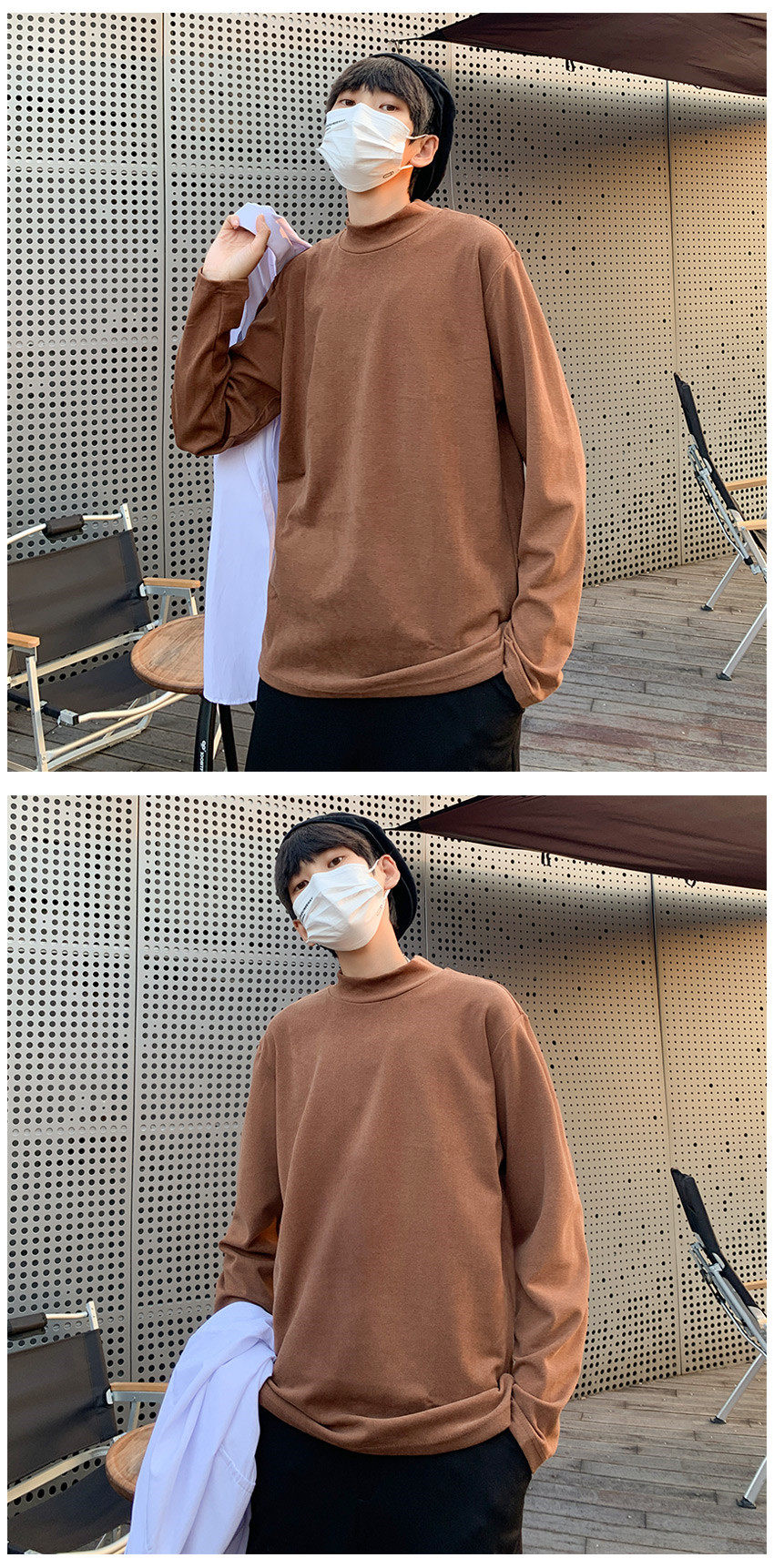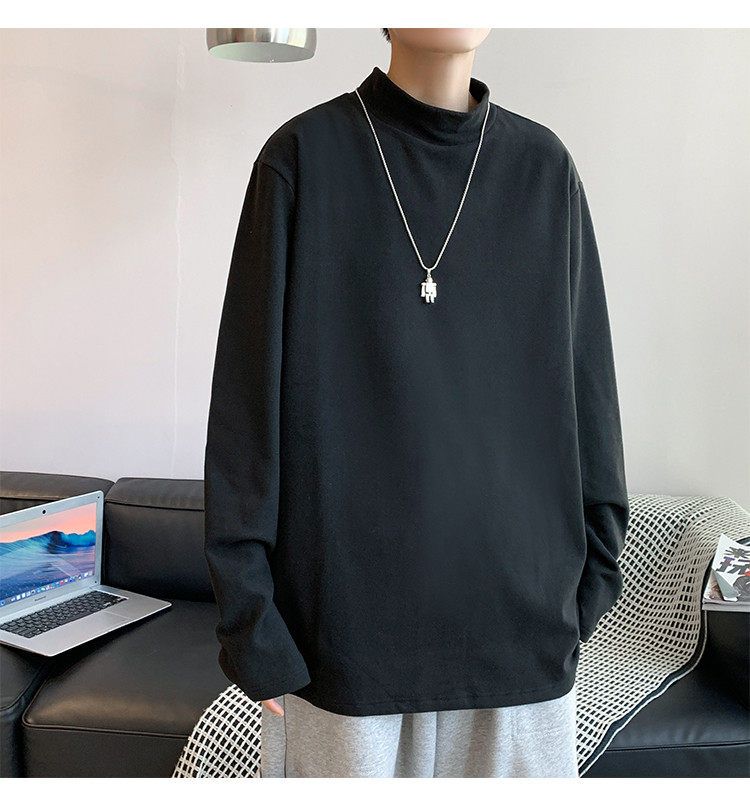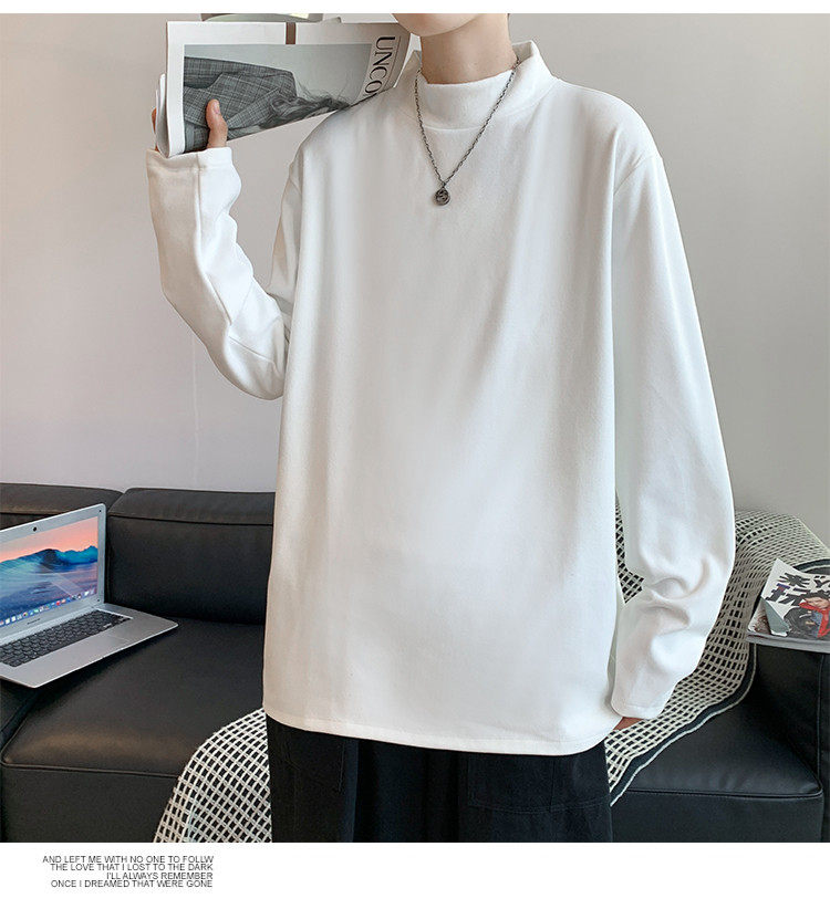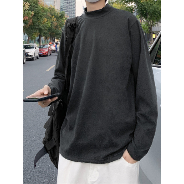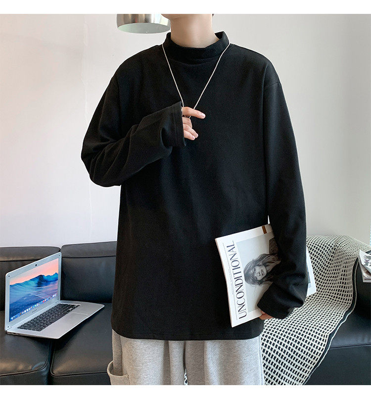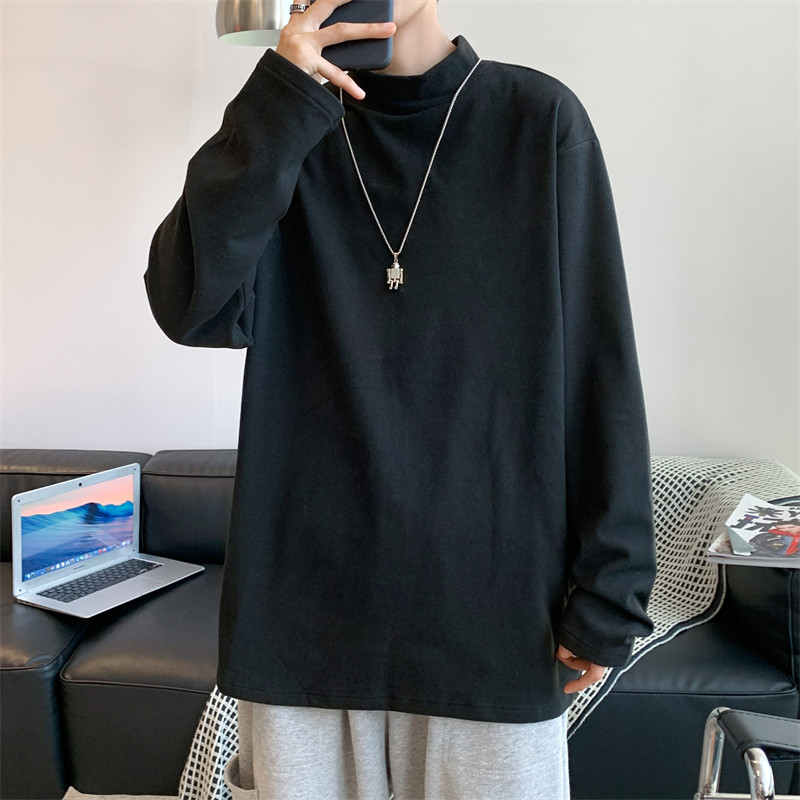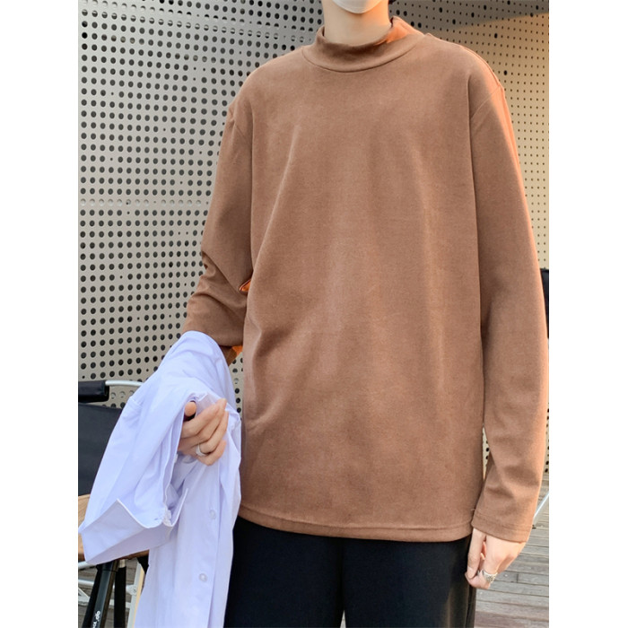 德絨打底衫男秋冬ins日系簡約純色百搭長袖t恤潮牌休閒半高領上衣