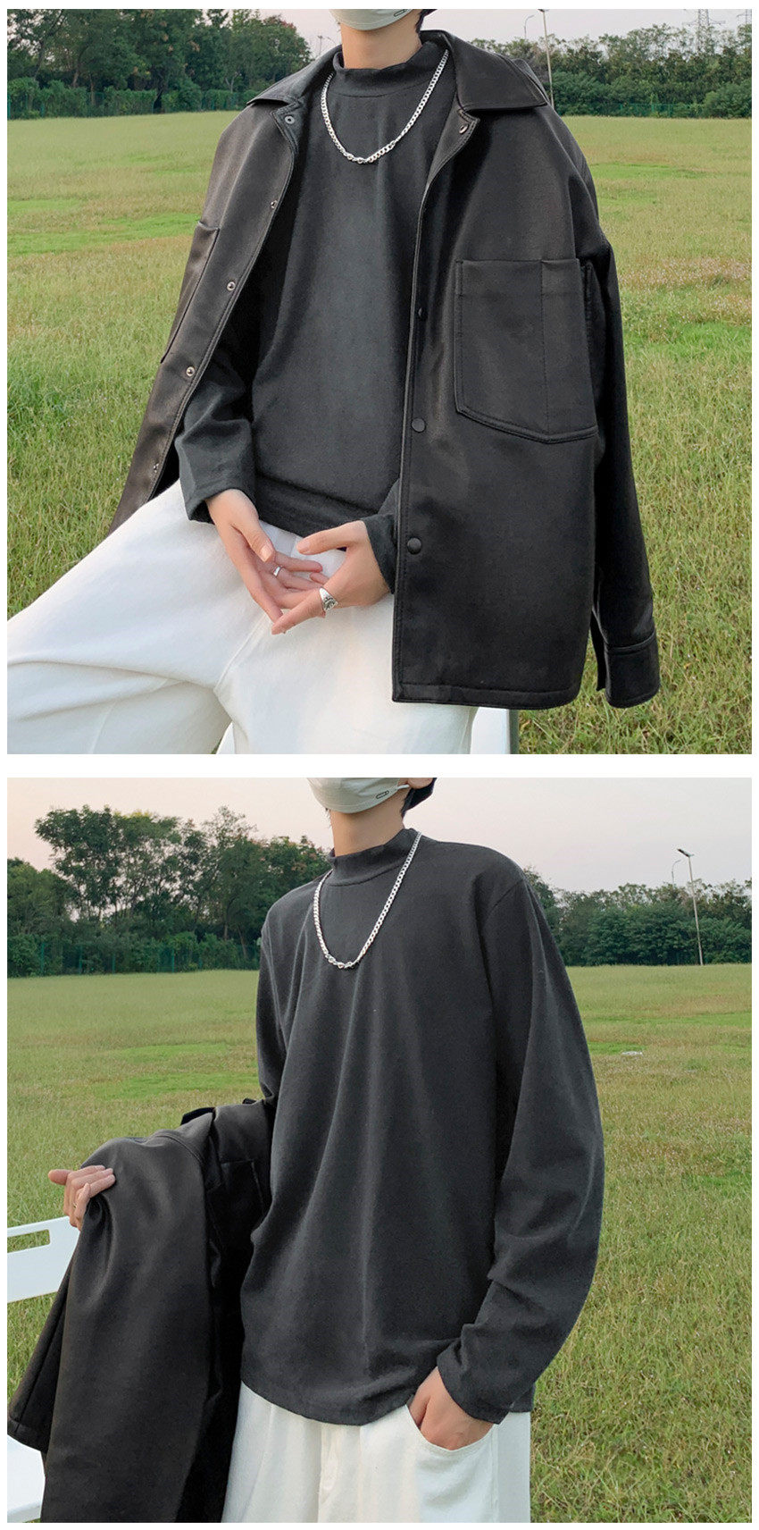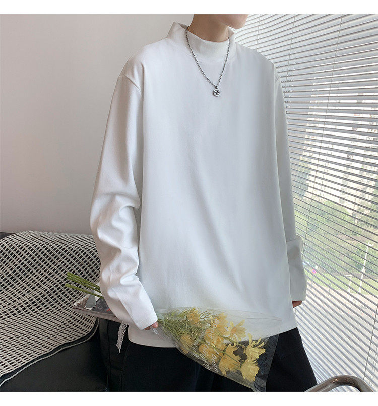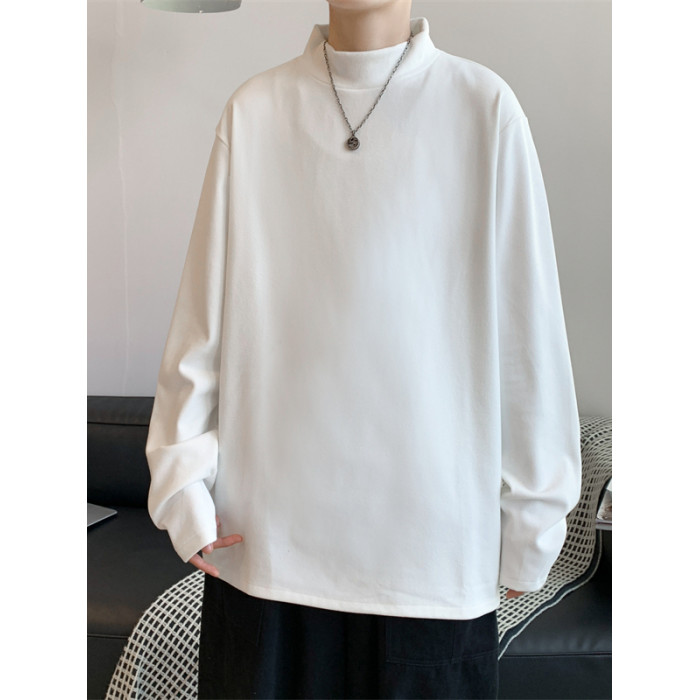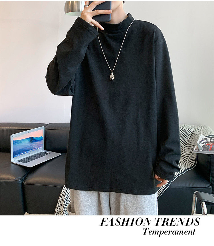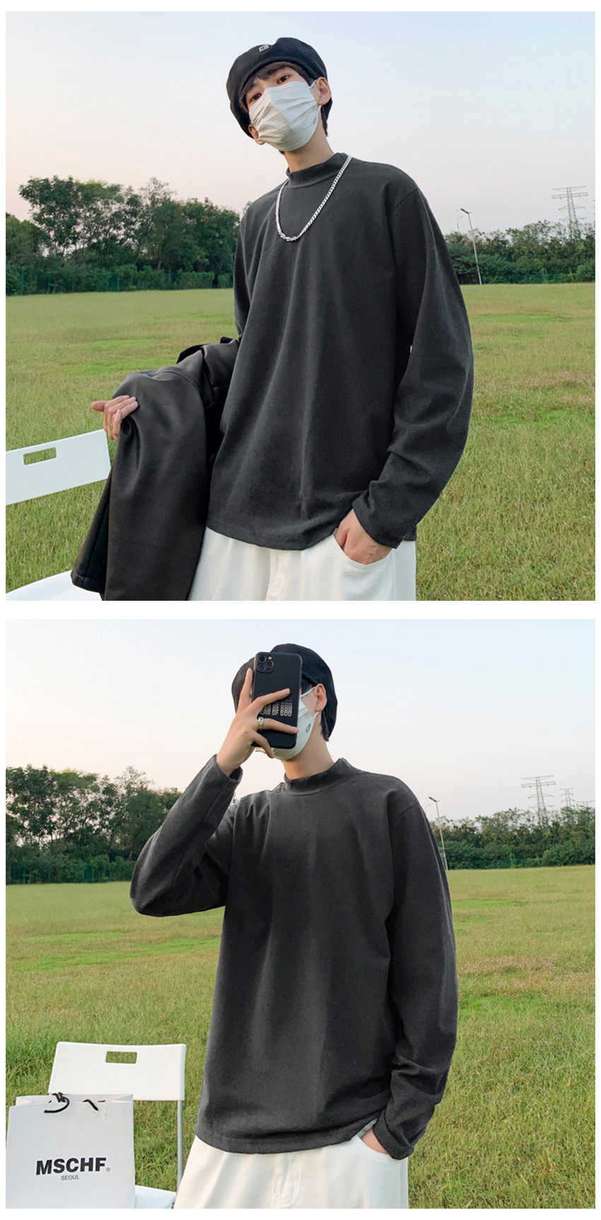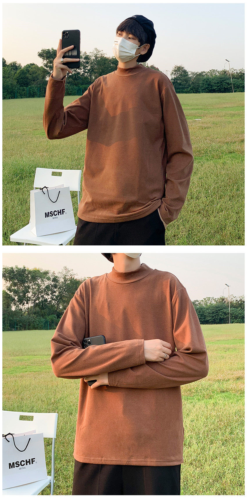 德絨打底衫男秋冬ins日系簡約純色百搭長袖t恤潮牌休閒半高領上衣