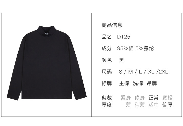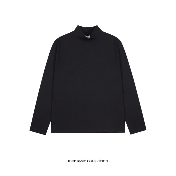 IDLT 高質 修身 半高領 立領 原創黑色長袖T恤 男簡約打底 潮 INS