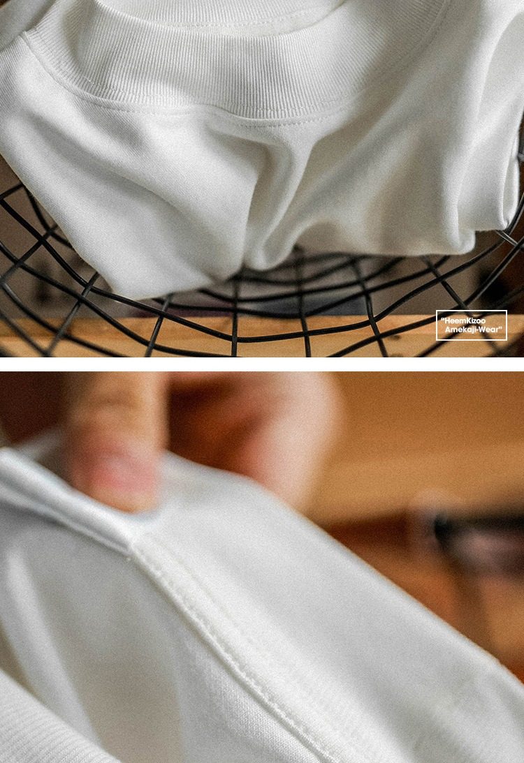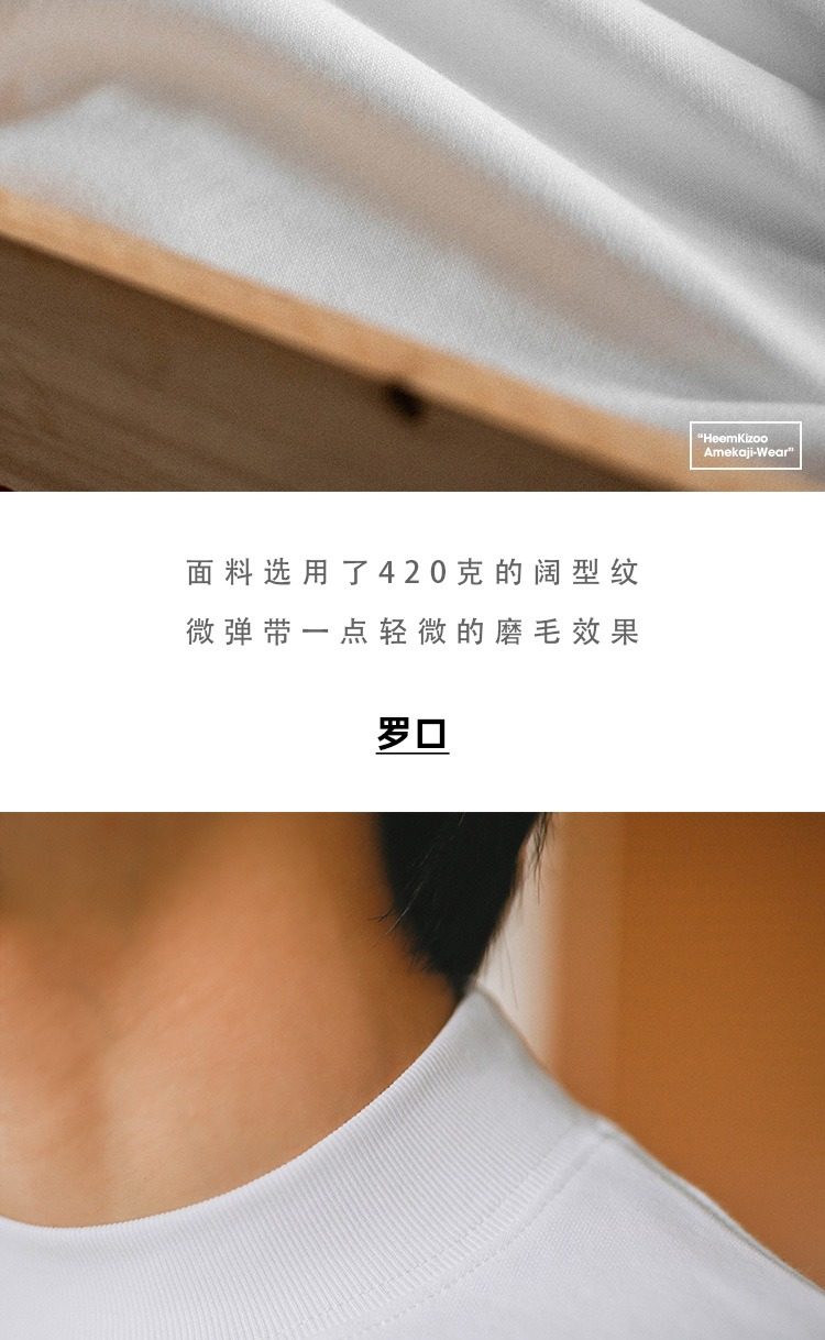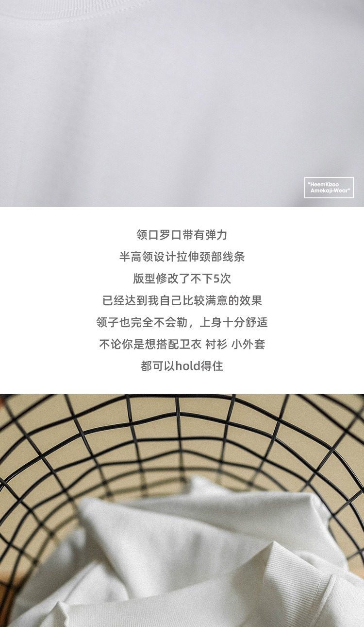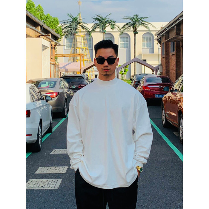 420G重磅純棉美式小領口長袖t恤男春秋季寬鬆打底衫新款白色上衣