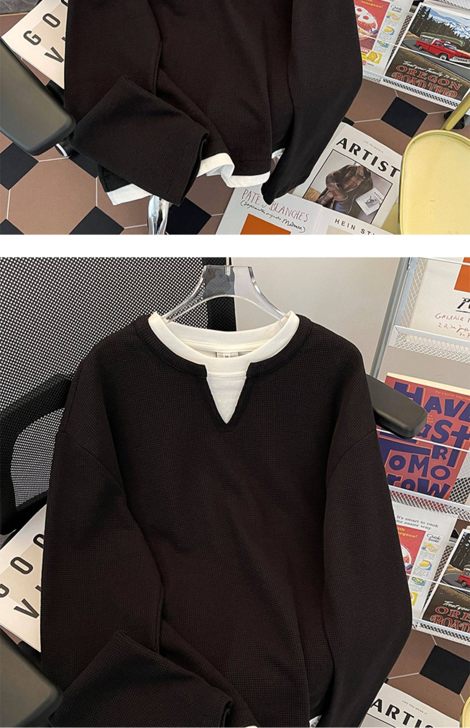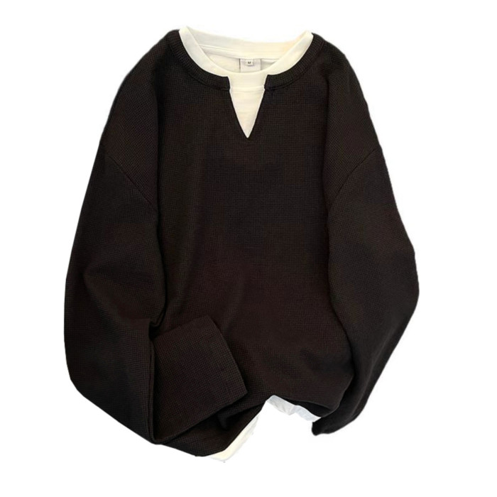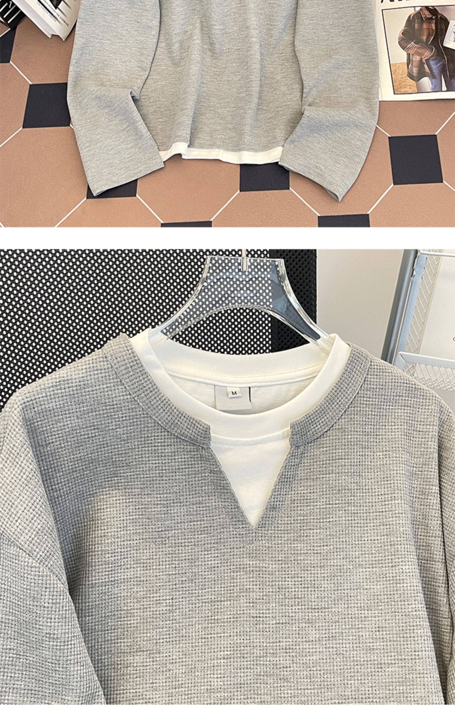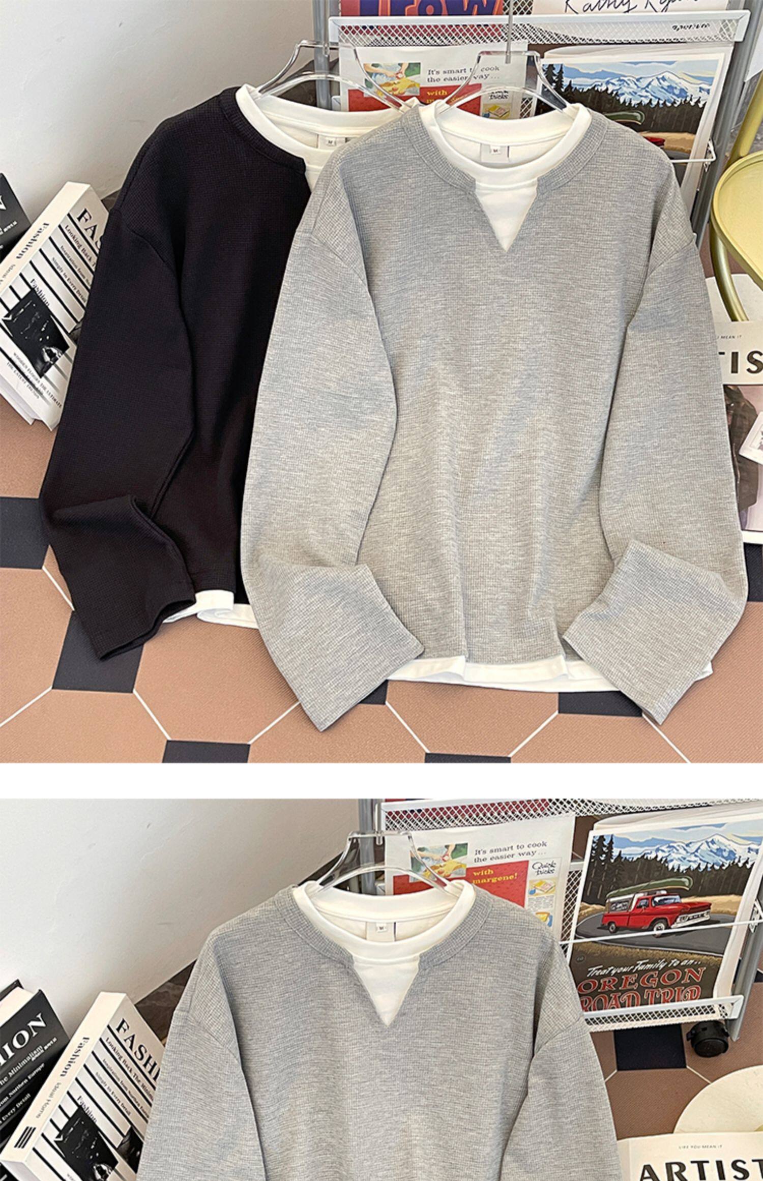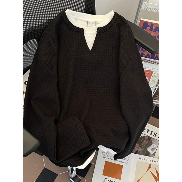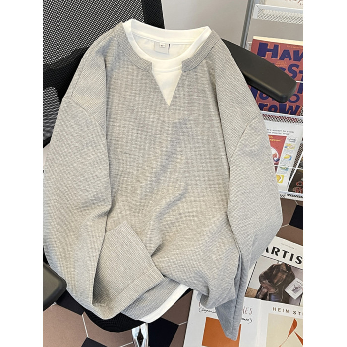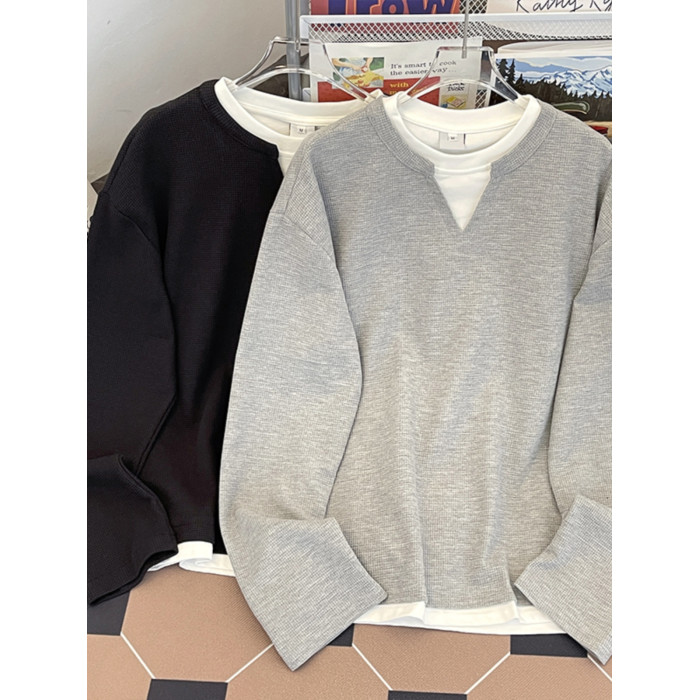 春秋季長袖T恤男款美式潮流ins假兩件衛衣寬松套頭百搭休閒打底衫