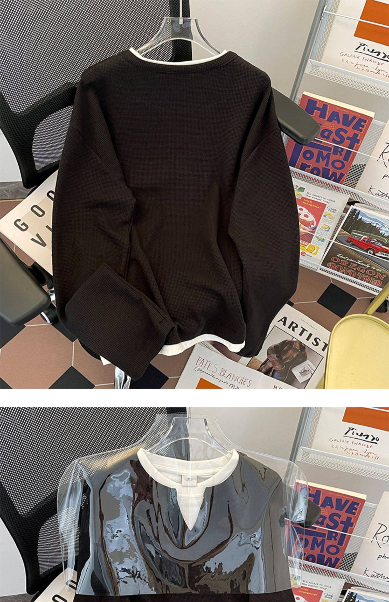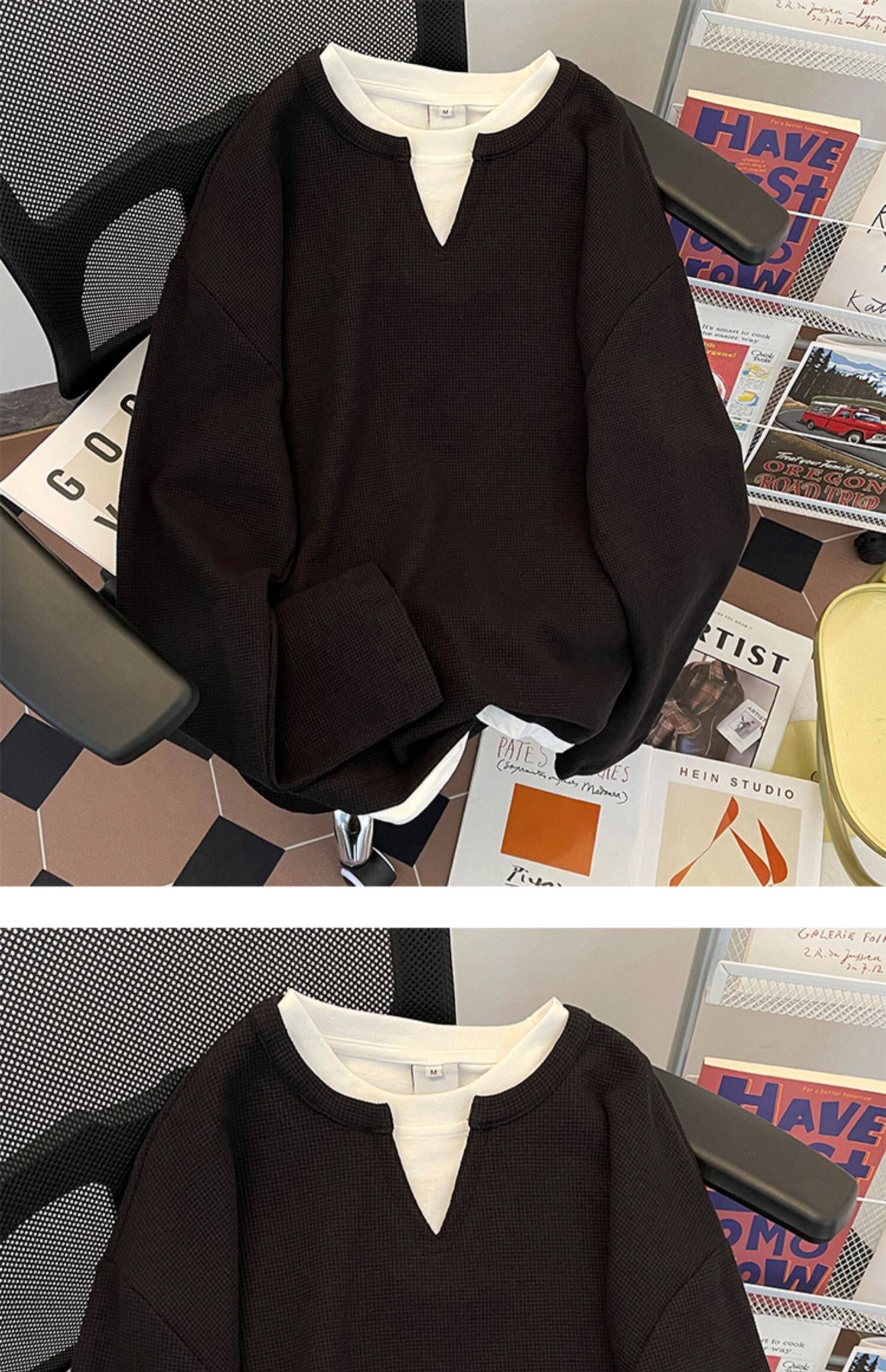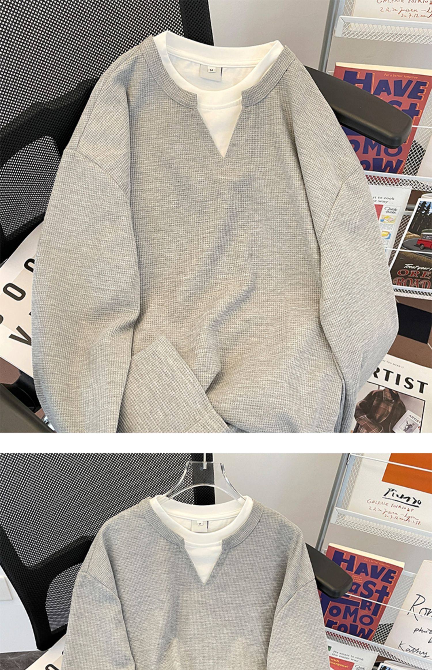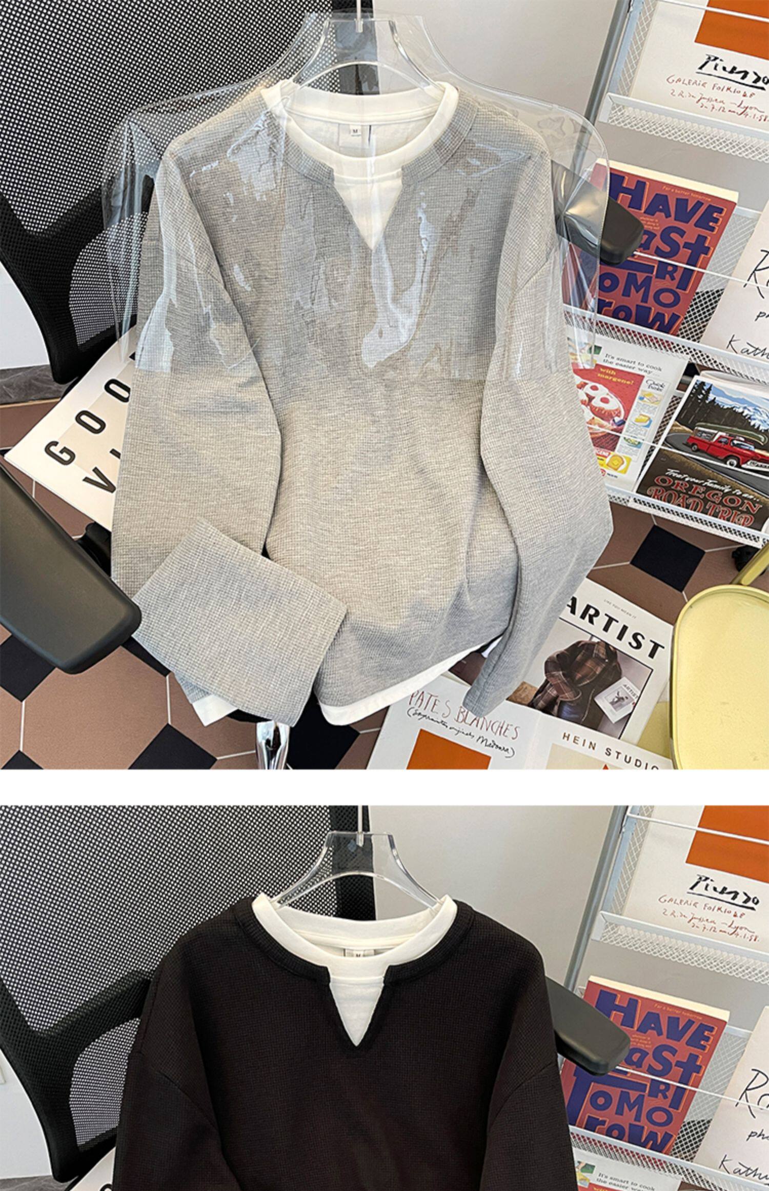 春秋季長袖T恤男款美式潮流ins假兩件衛衣寬松套頭百搭休閒打底衫