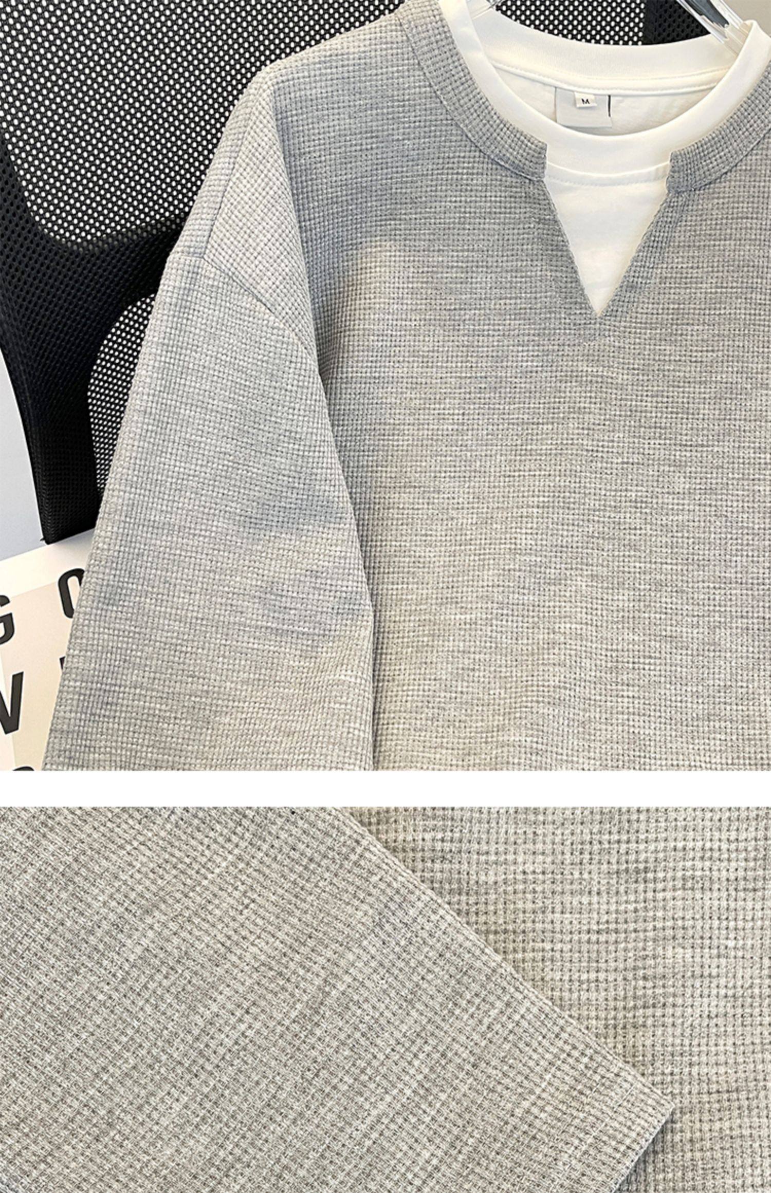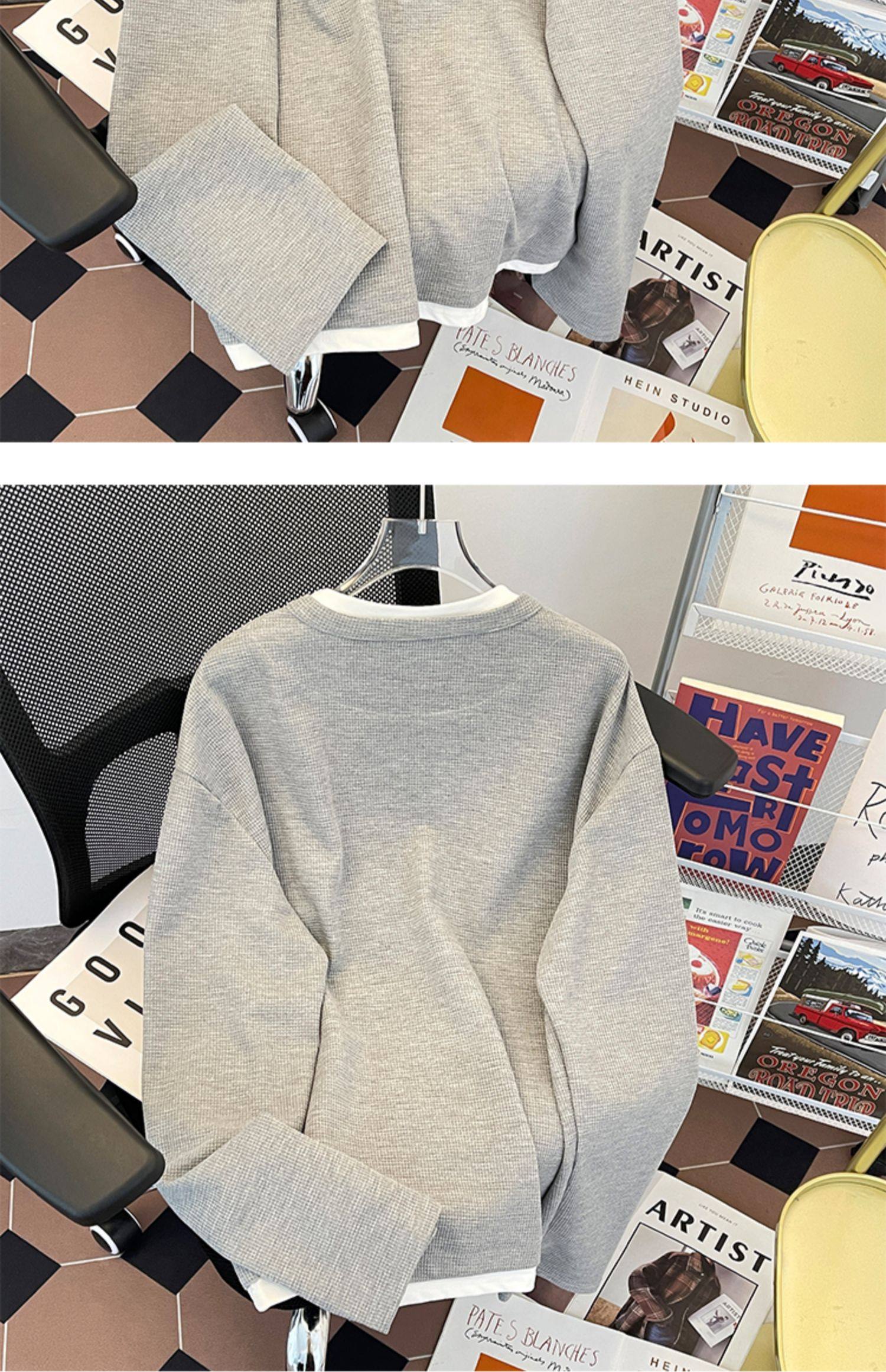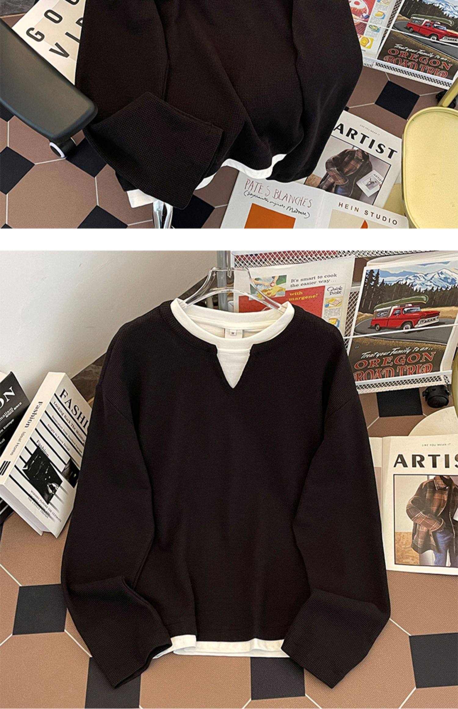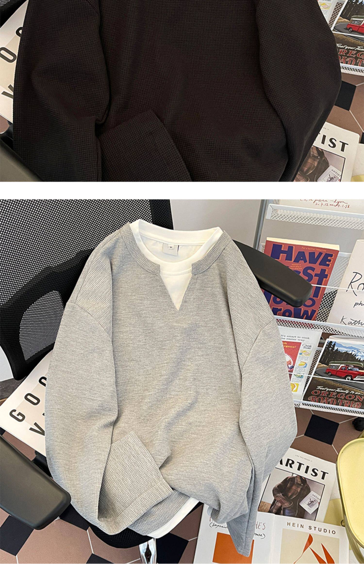 春秋季長袖T恤男款美式潮流ins假兩件衛衣寬松套頭百搭休閒打底衫