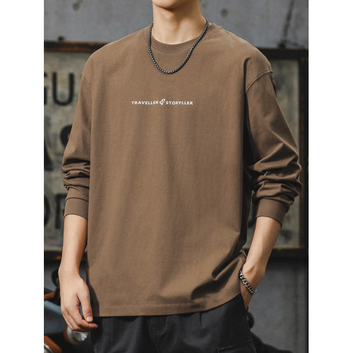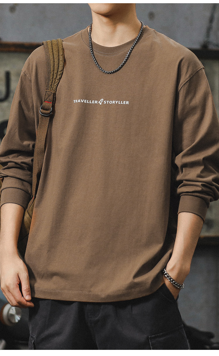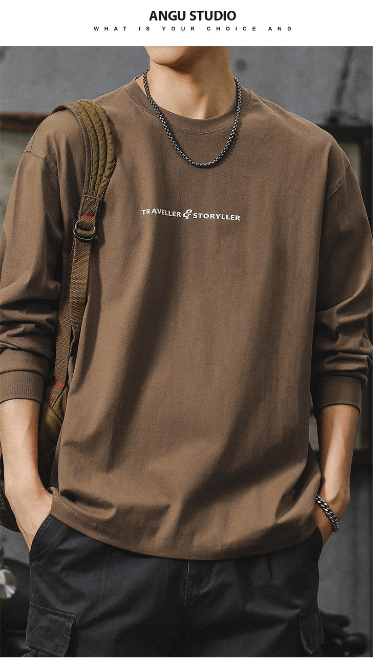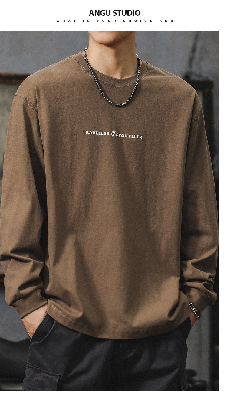 美式長袖t恤男2025新款秋季潮牌字母內搭打底衫男款大碼上衣服