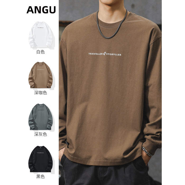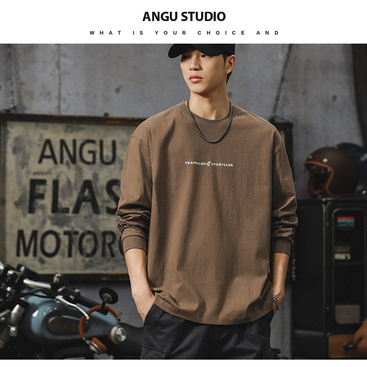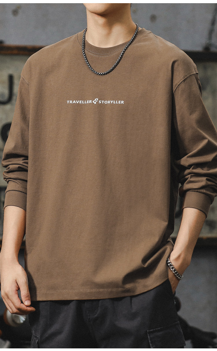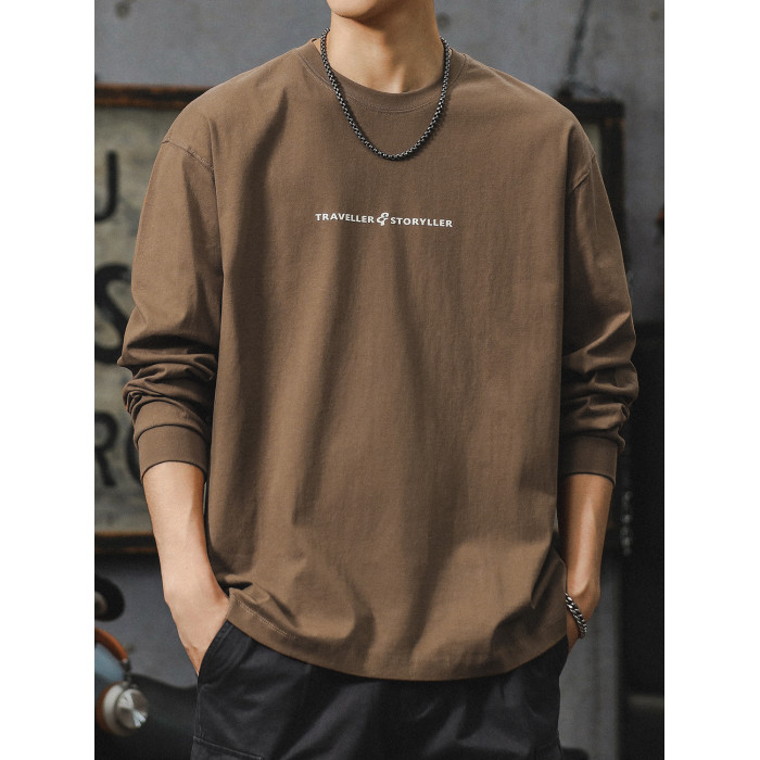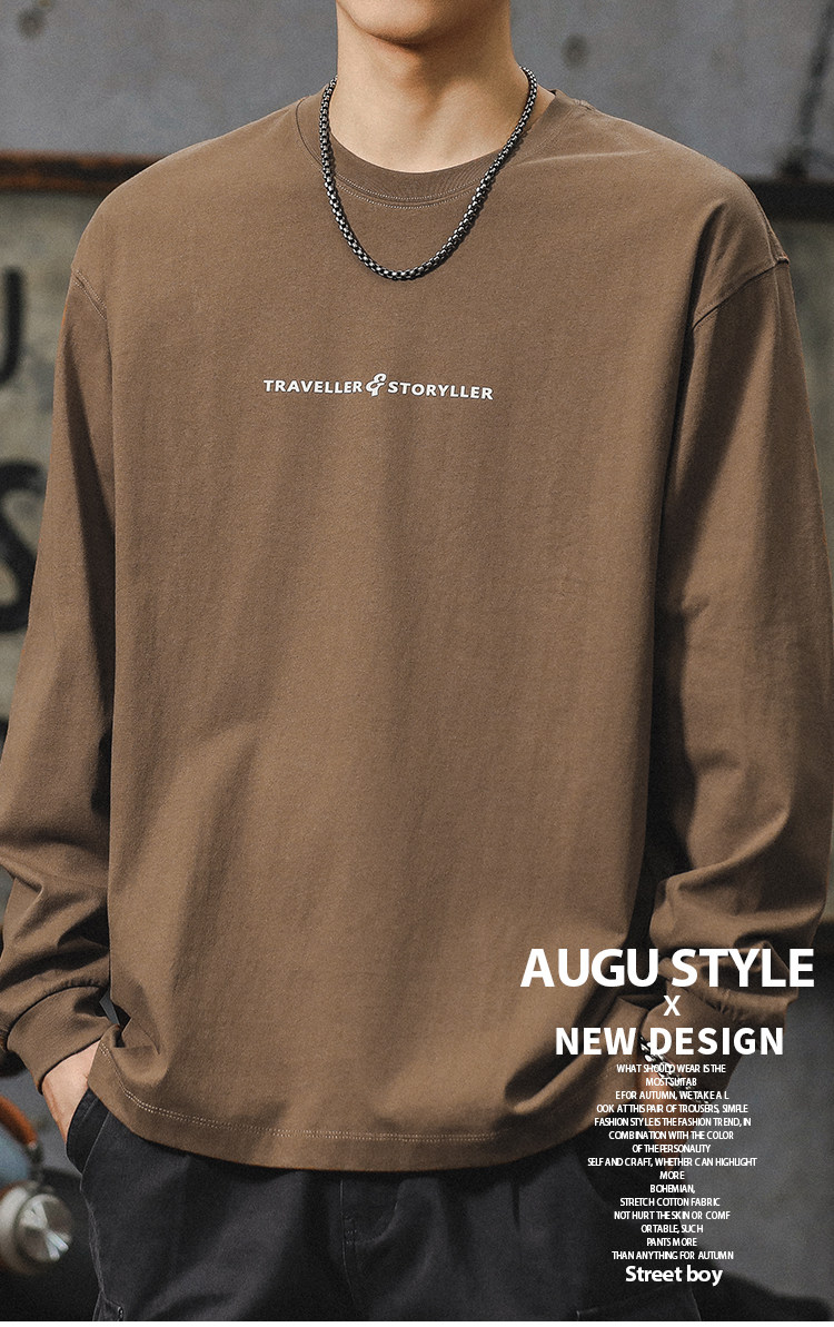 美式長袖t恤男2025新款秋季潮牌字母內搭打底衫男款大碼上衣服