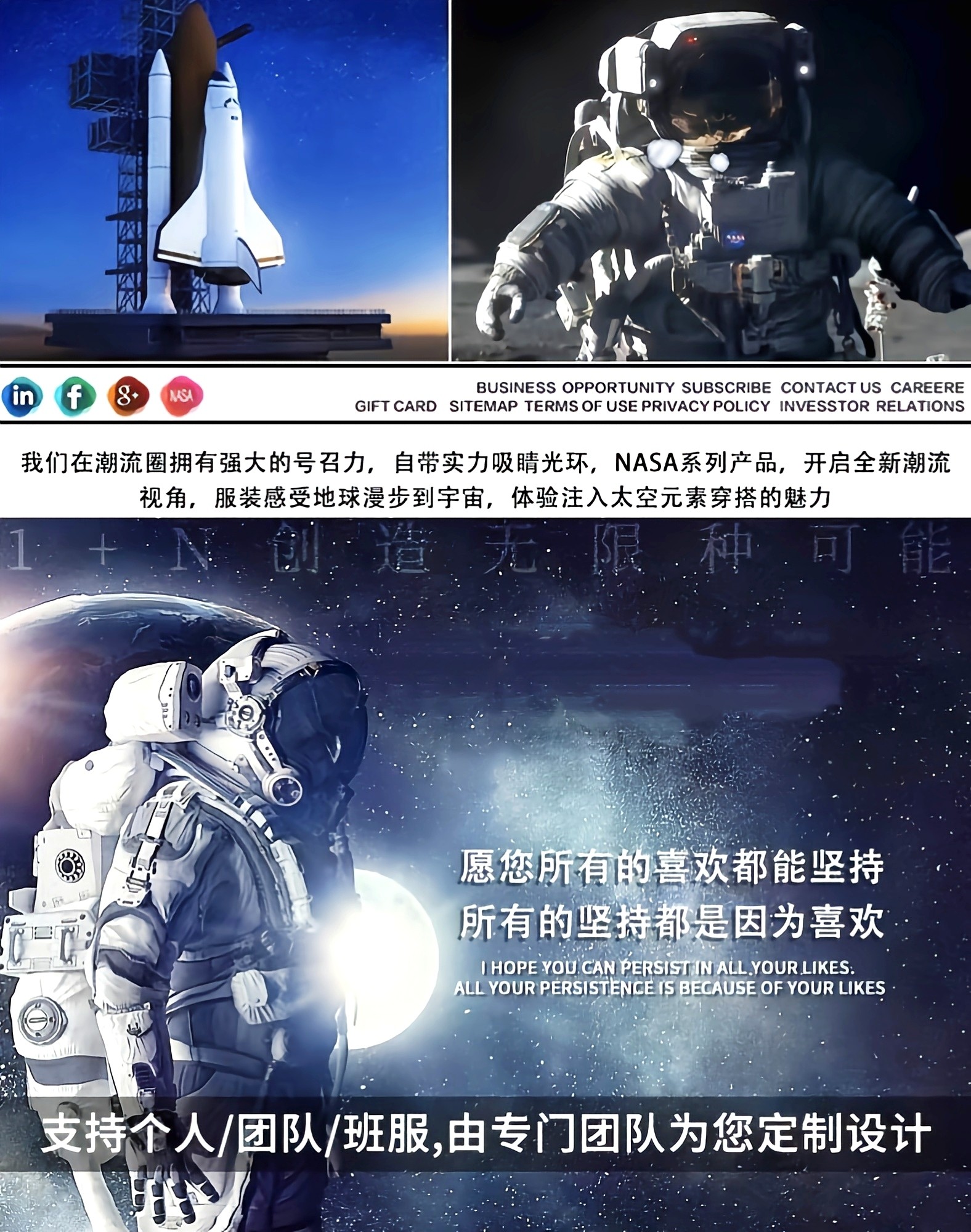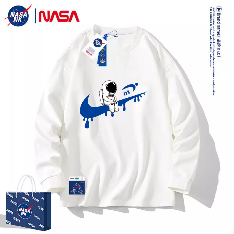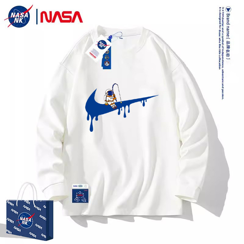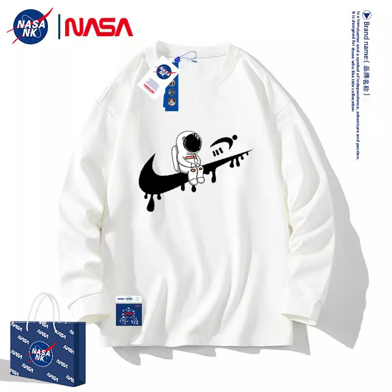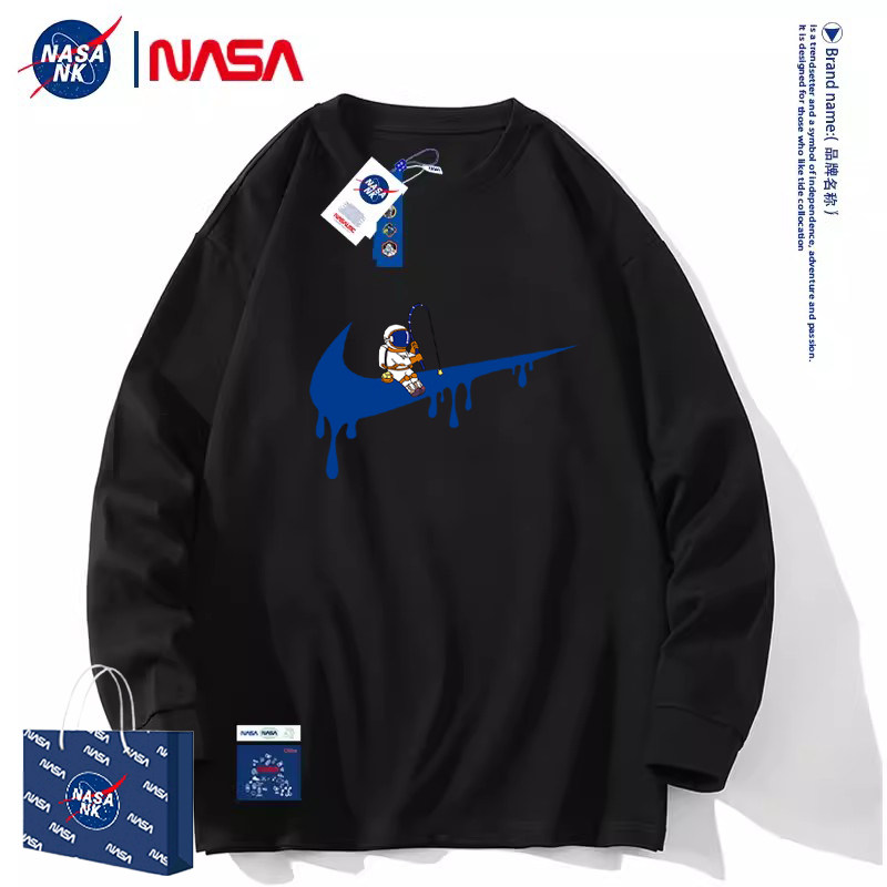 NASA聯名美式t恤衛衣男士潮牌潮流寬松重磅純棉長袖束口打底上衣