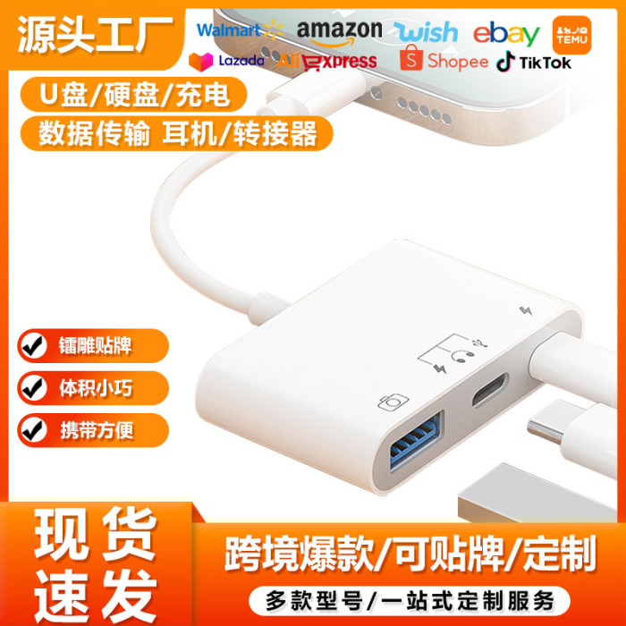 適用蘋果14 13 12 11otg外接u盤移硬盤轉換器usbtypec耳機轉接頭