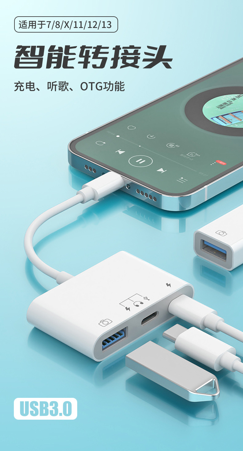 適用蘋果17 16 15 14 13 12 11 安卓系統華爲手機讀取u盤硬盤Type-C接口充電耳機USB3.0滑鼠鍵盤遊戯數據傳輸