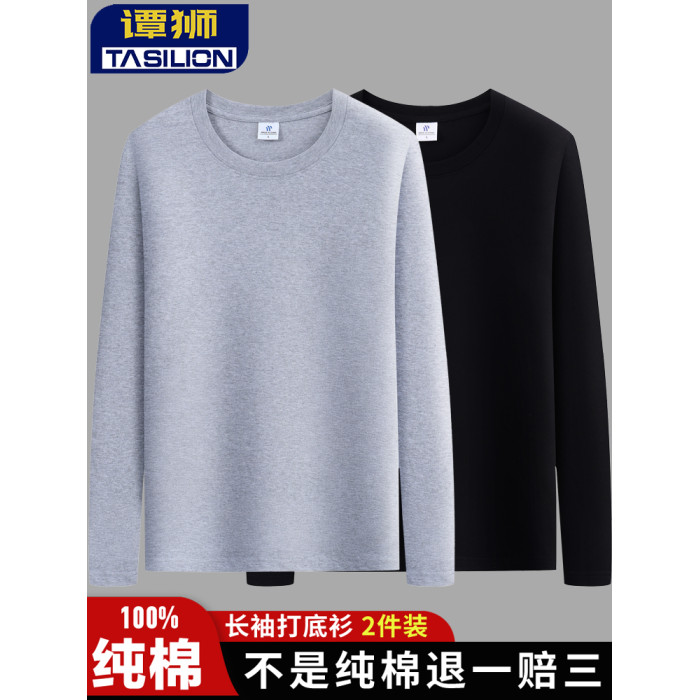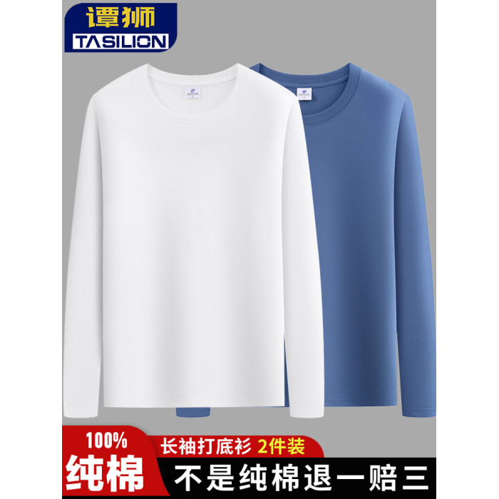 新疆純棉長袖打底衫春秋季重磅圓領t恤男純棉白色內搭寬松衛衣男