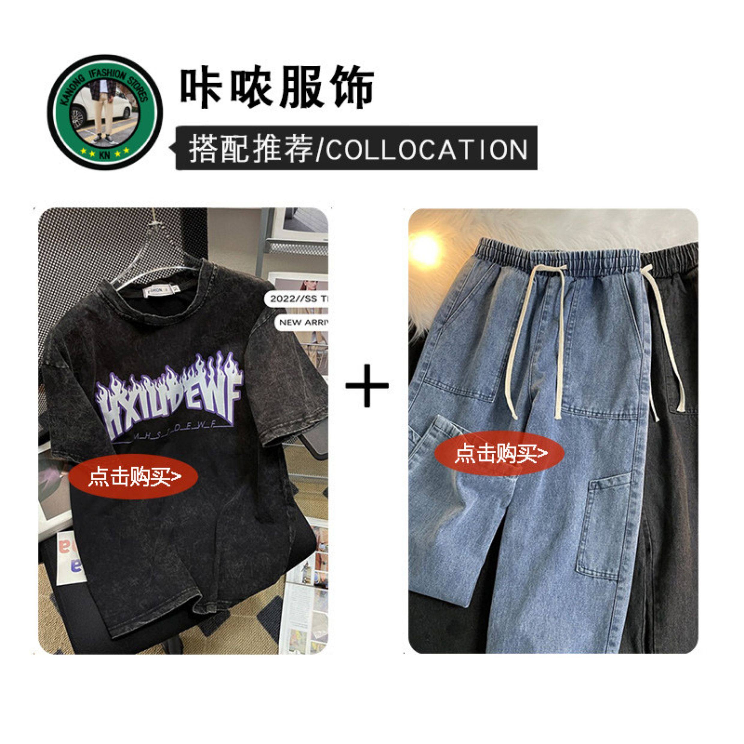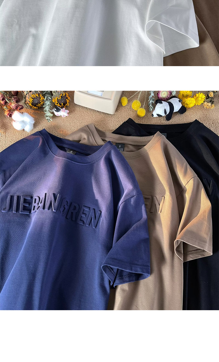 重磅美式復古短袖t恤男純棉潮牌寬鬆休閒百搭情侶鋼印圓領體恤衫