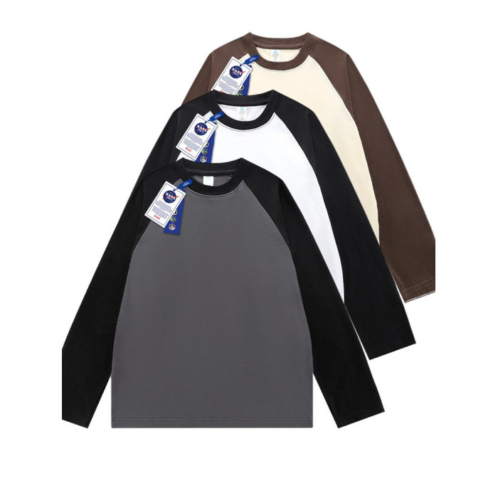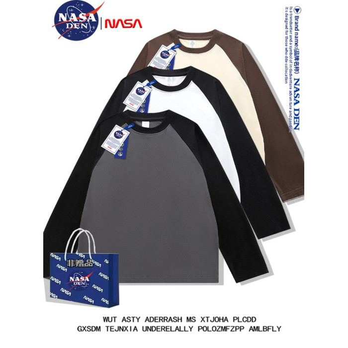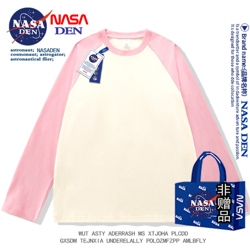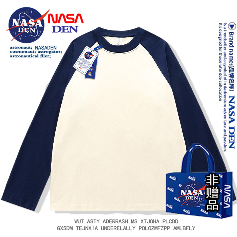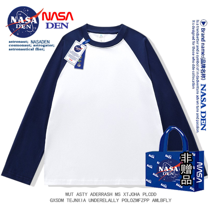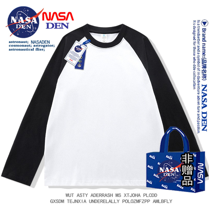 NASA聯名春秋季純棉插肩長袖t恤男女款美式內搭撞色拼接上衣服衫