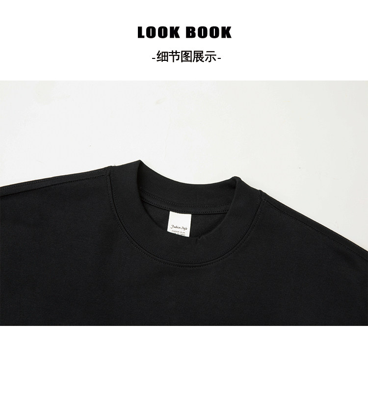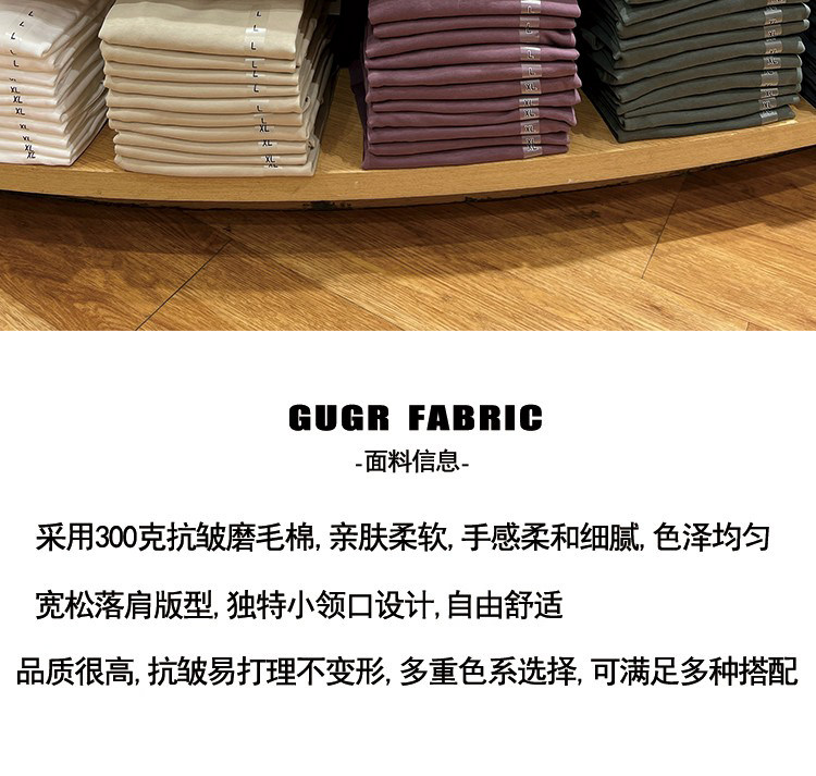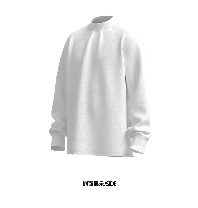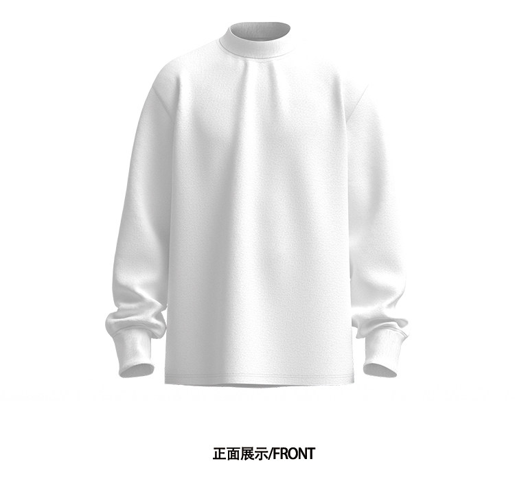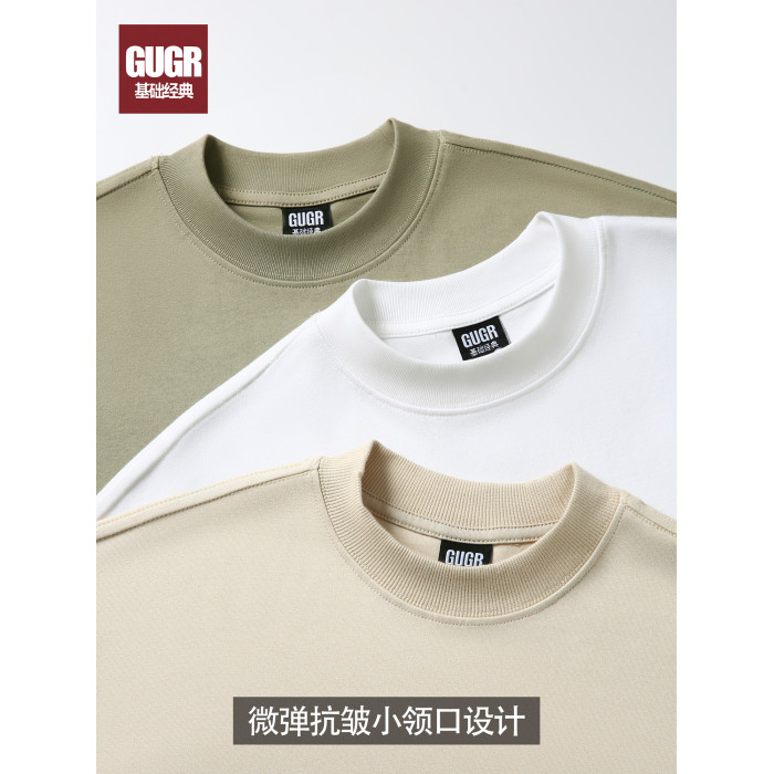 GUGR 300g磨毛棉 重磅美式小領口長袖T恤男 純色半高領純色打底衫