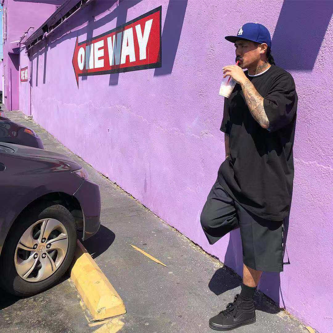 PROCLUB西海岸美式潮T恤純色寬松大碼打底短袖街舞嘻哈圓領bboy男