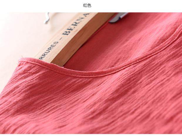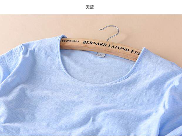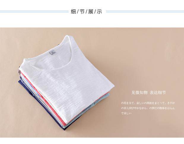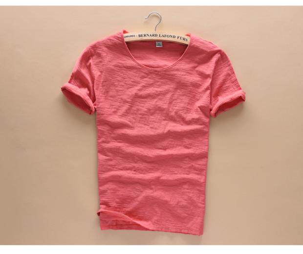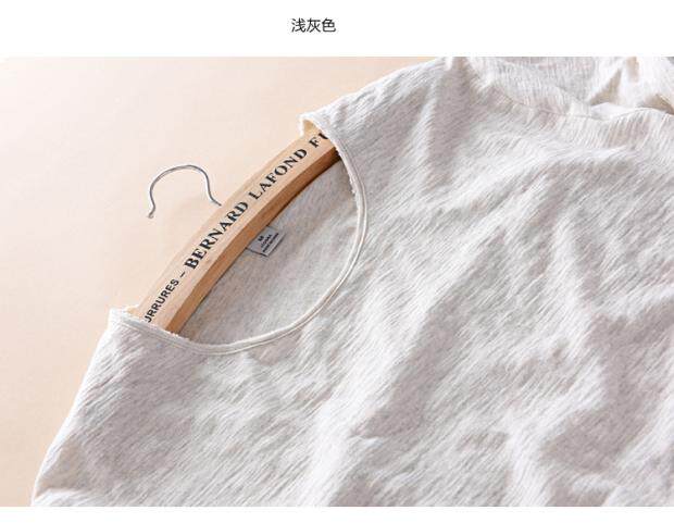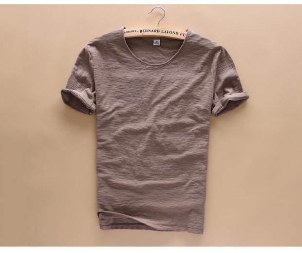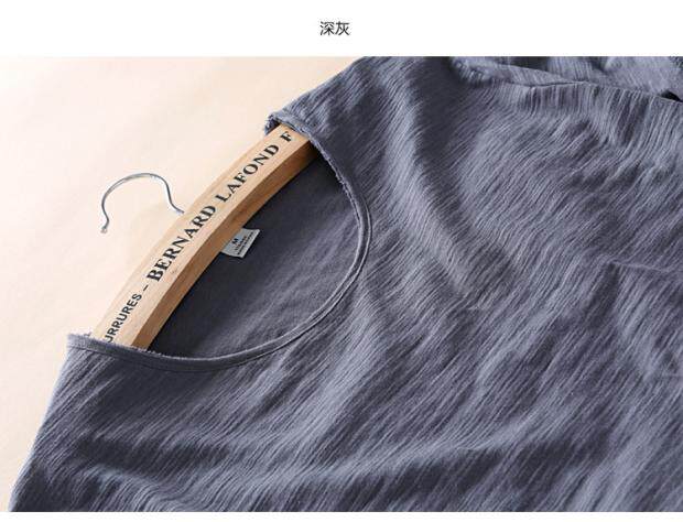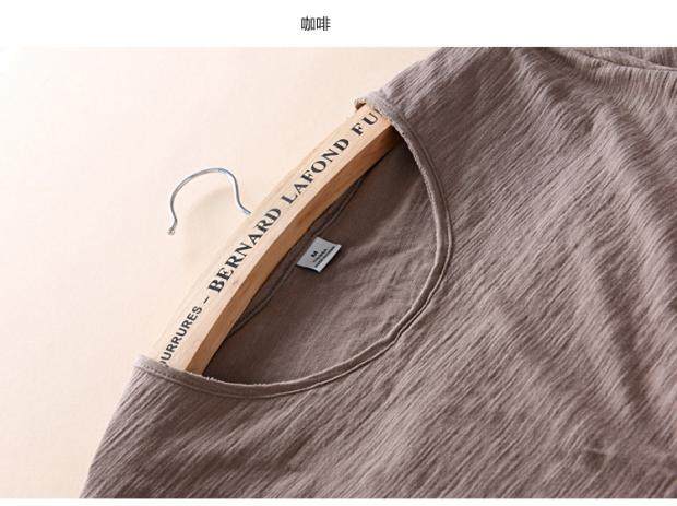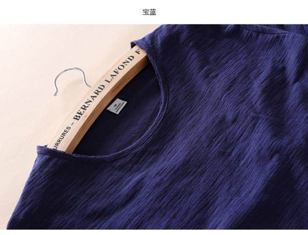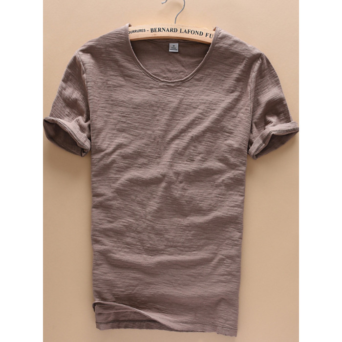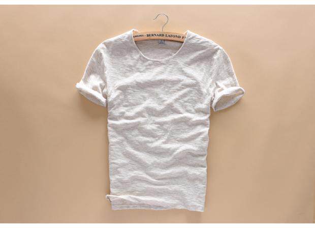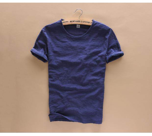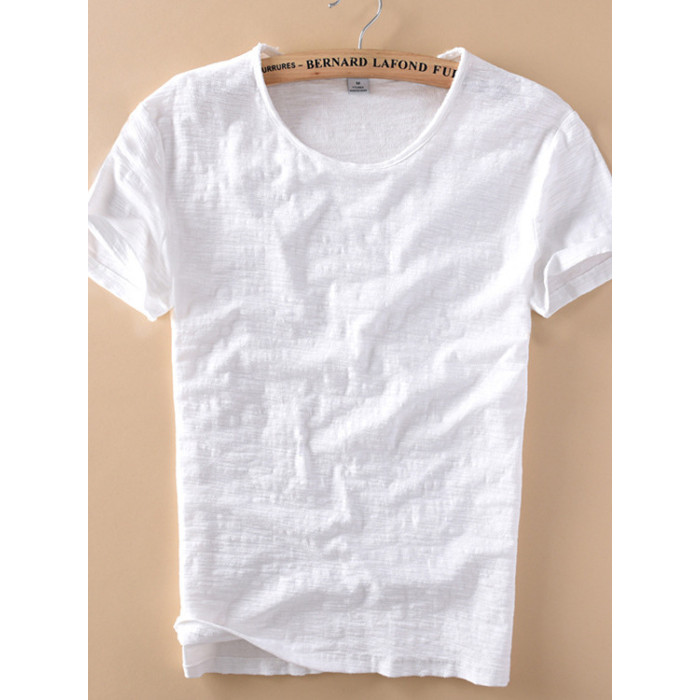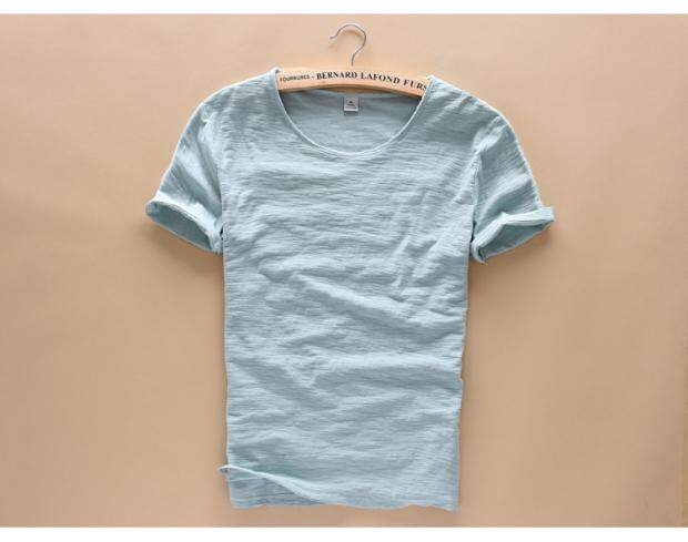 柔軟竹節棉短袖T恤男士休閒薄款日系做舊毛邊圓領修身純棉男t恤衫