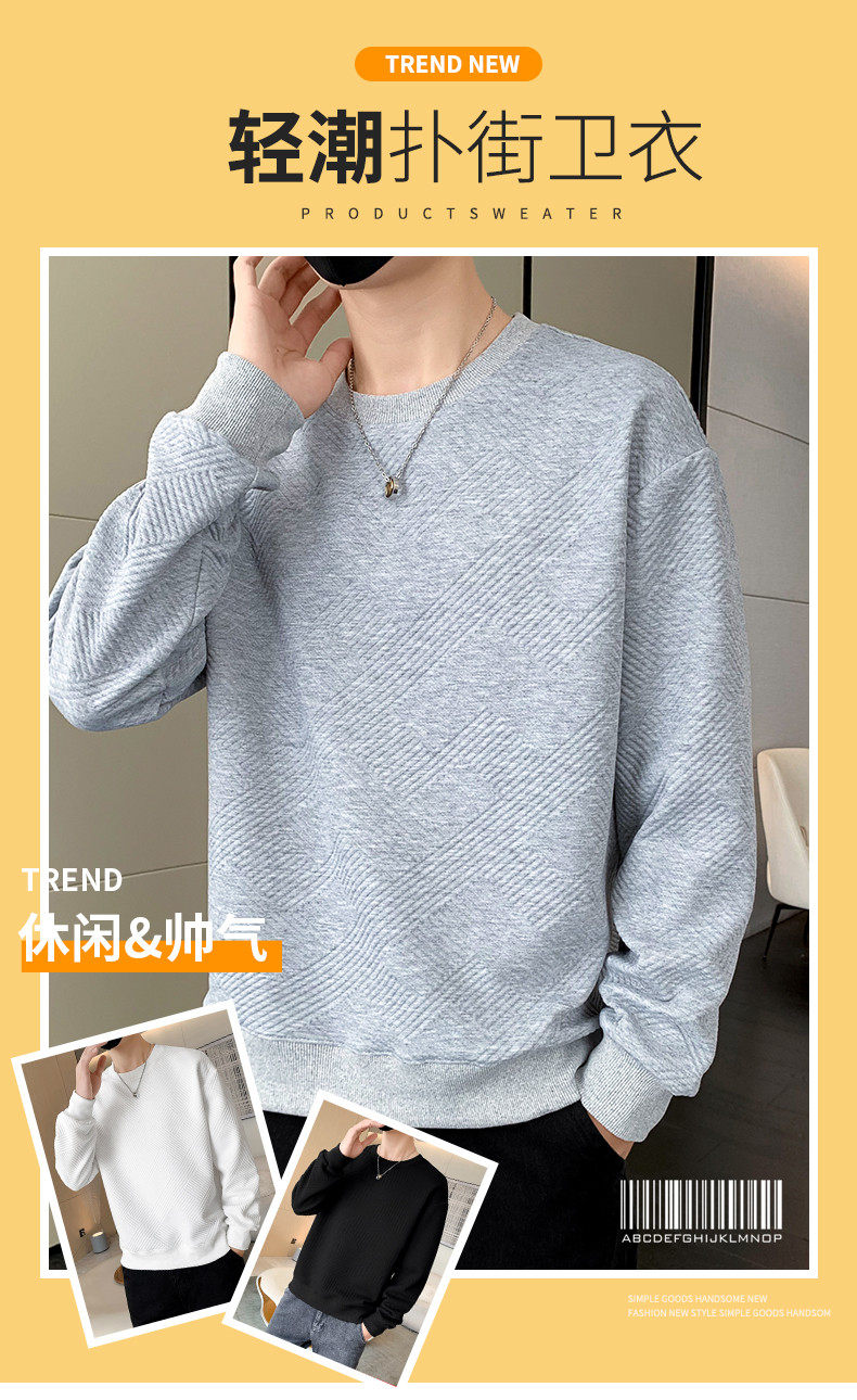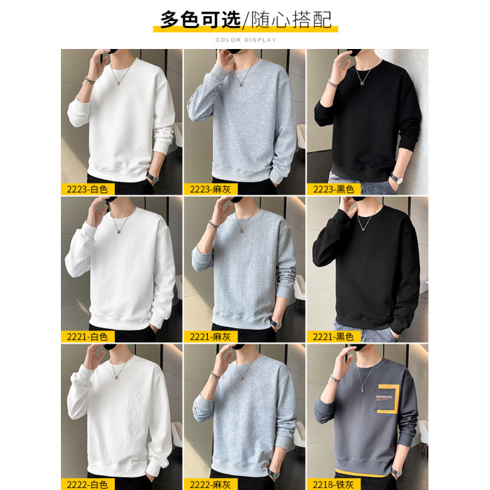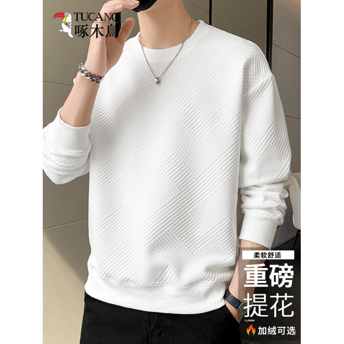 啄木鳥男士長袖t恤秋冬季加絨款衛衣白色打底衫男裝春秋內搭衣服
