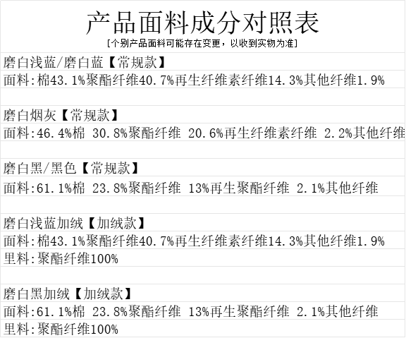 | 材質成分 | 棉43.1% 聚酯纖維40.7% 再生纖維素纖維14.3% 其他材質1.9% |