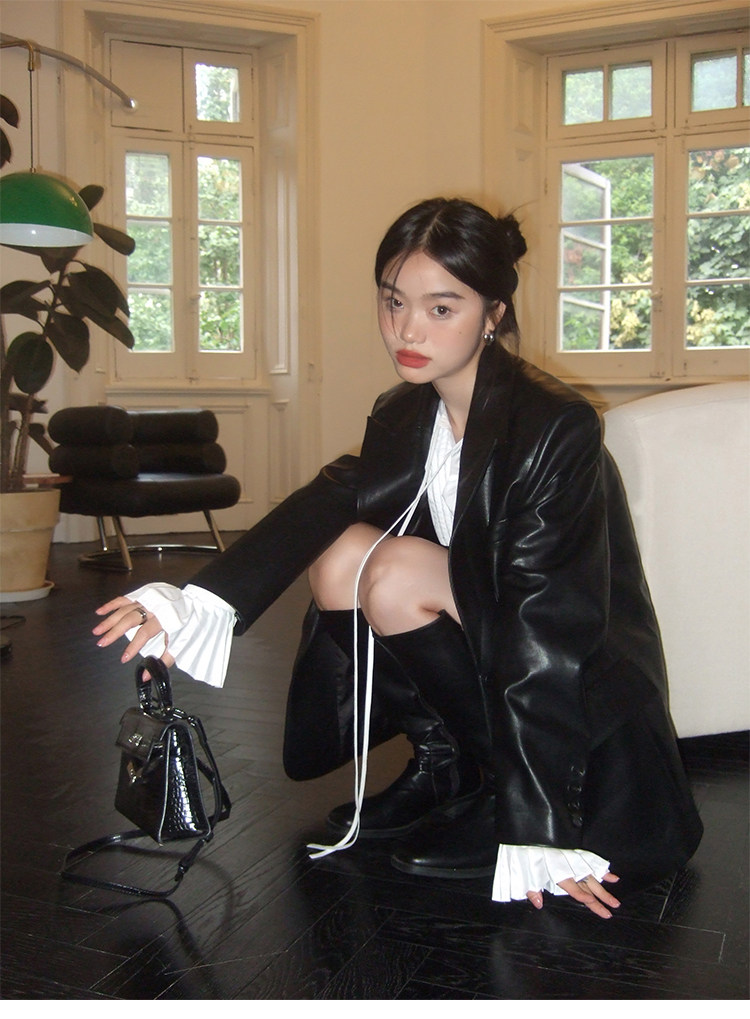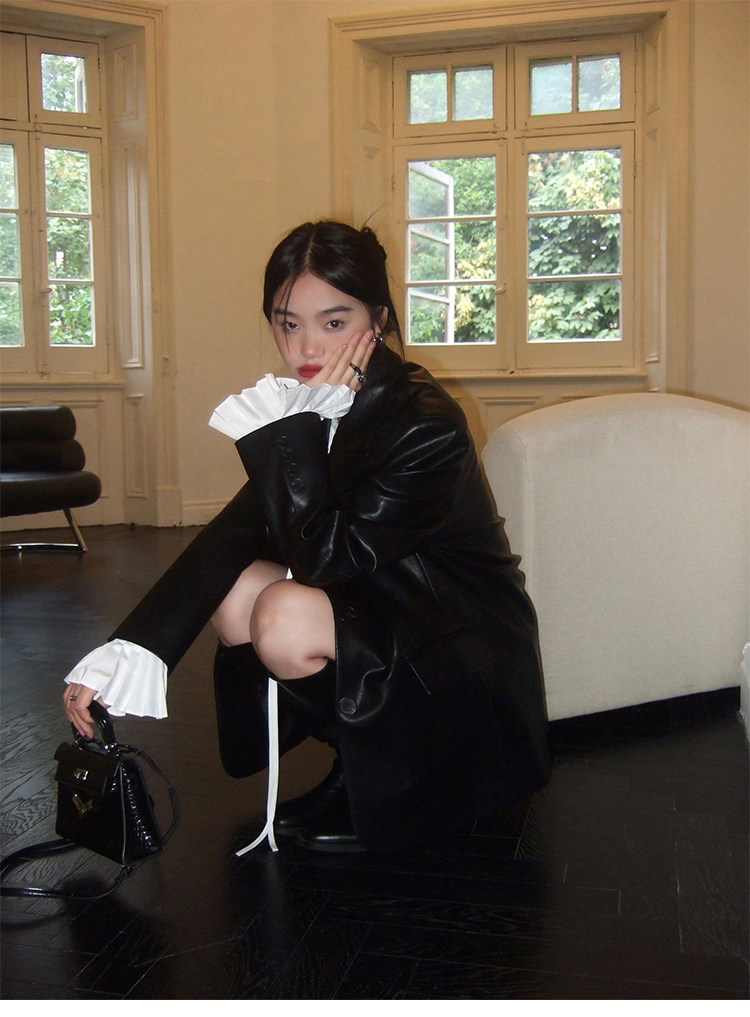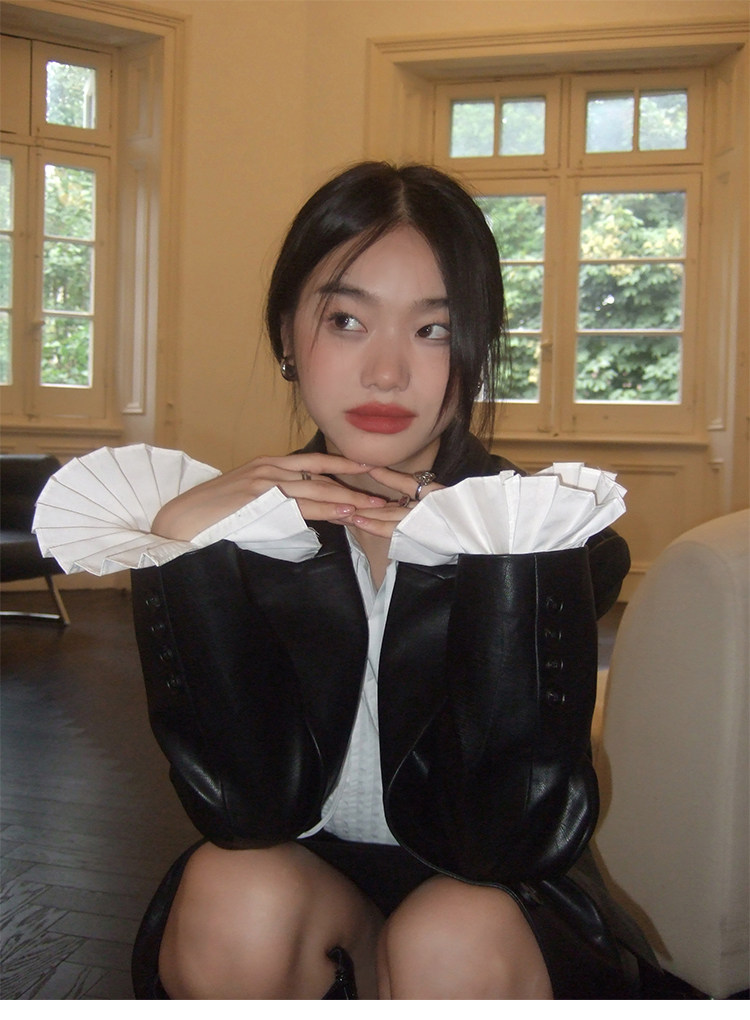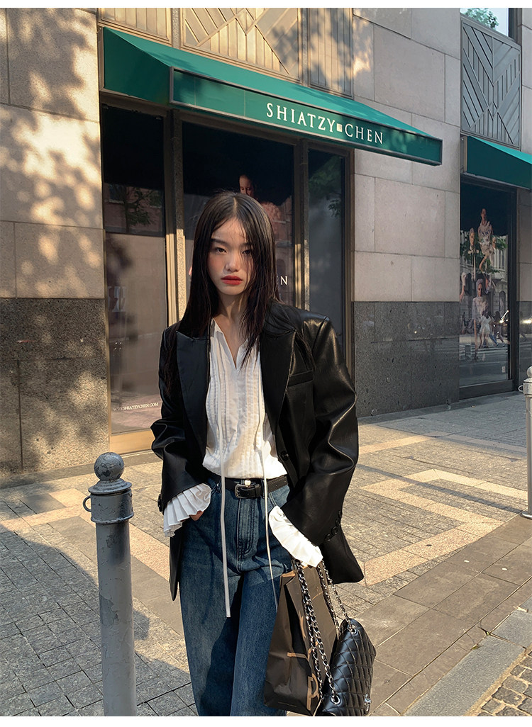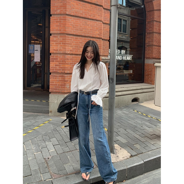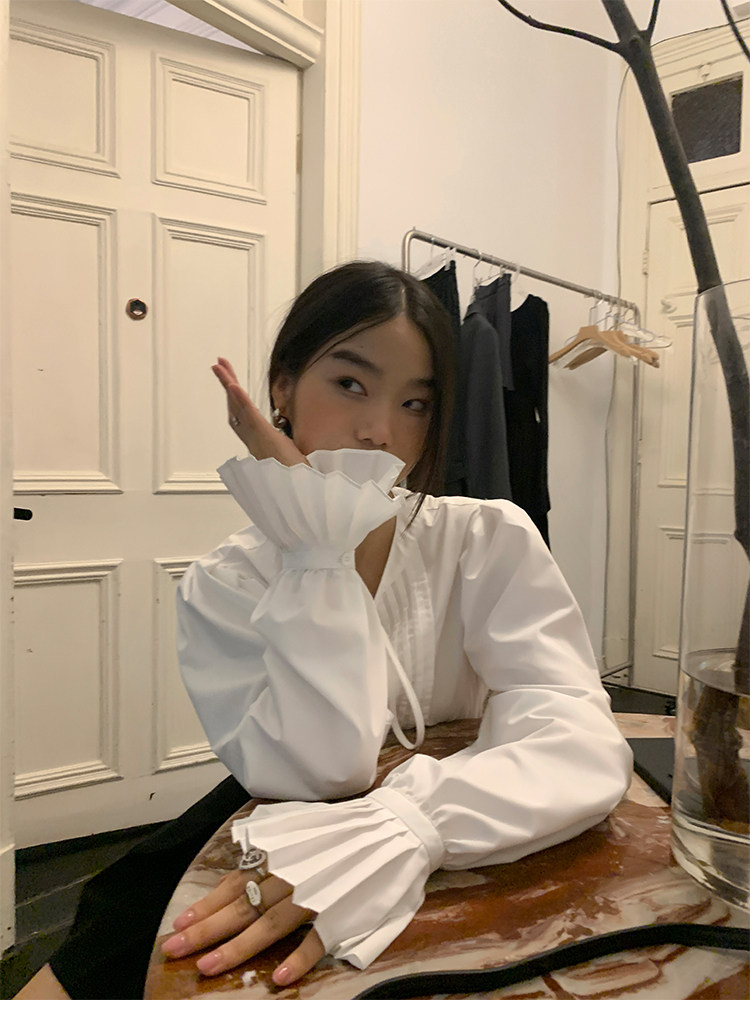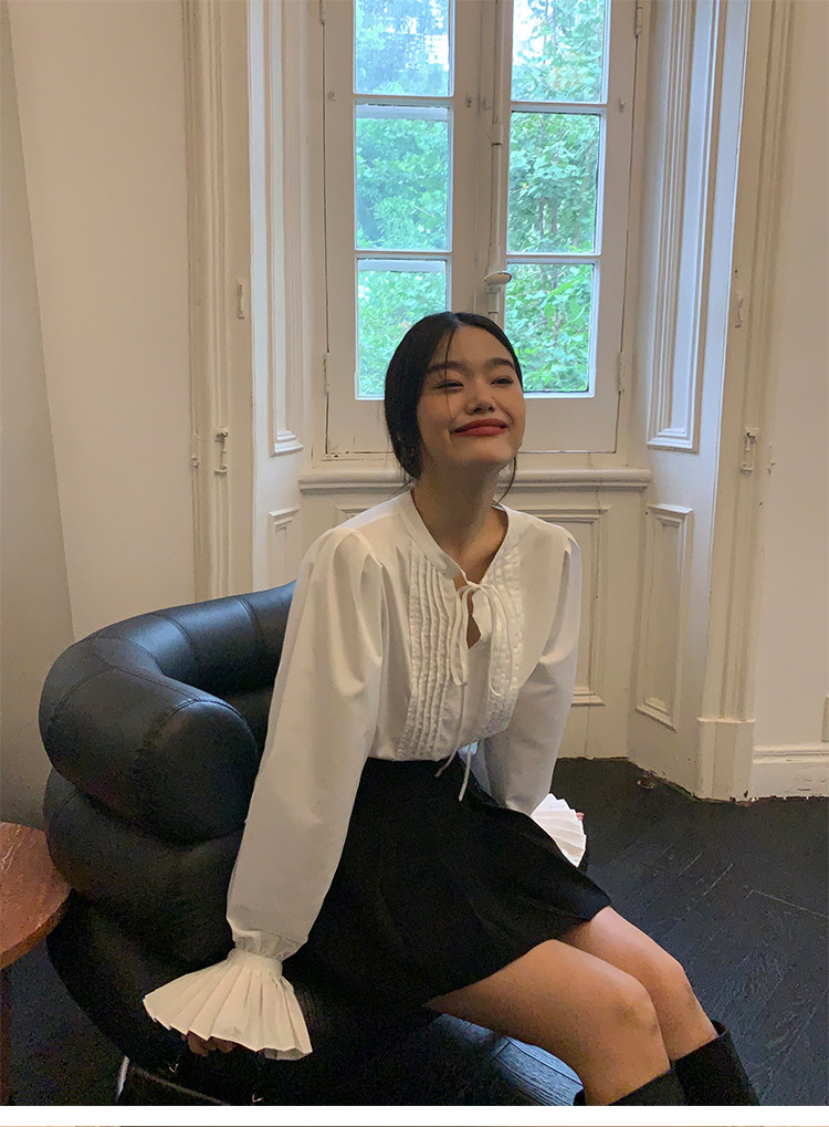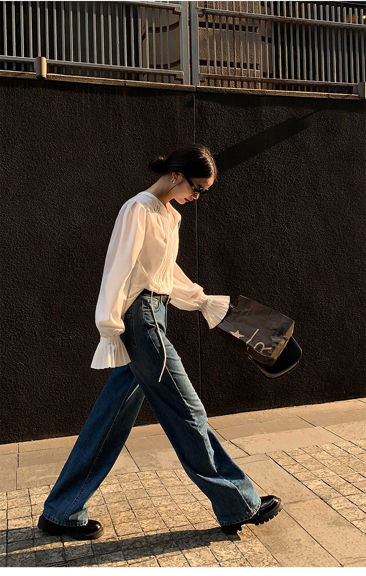 pusumede 法式v領白色襯衫女氣質高級感別致小衫喇叭袖系帶上衣