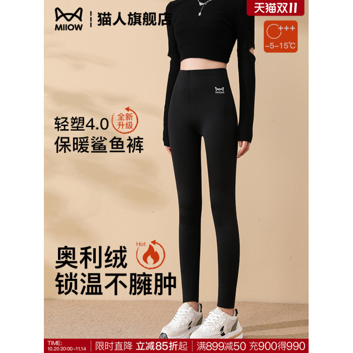 加絨鯊魚褲女外穿2025新款加厚保暖黑色高腰健身瑜珈打底褲秋冬天