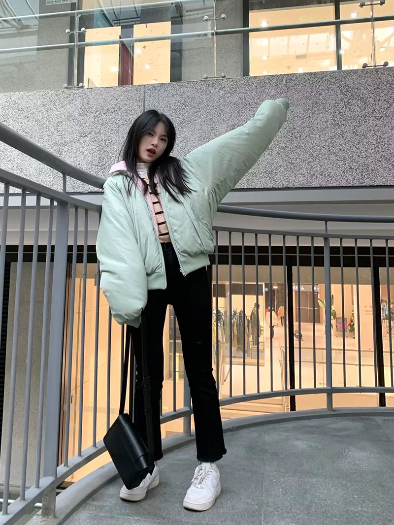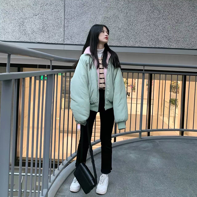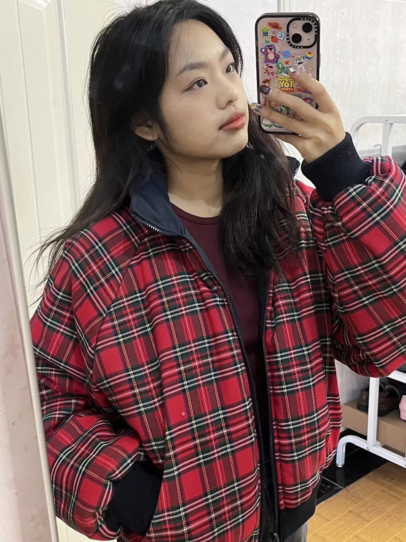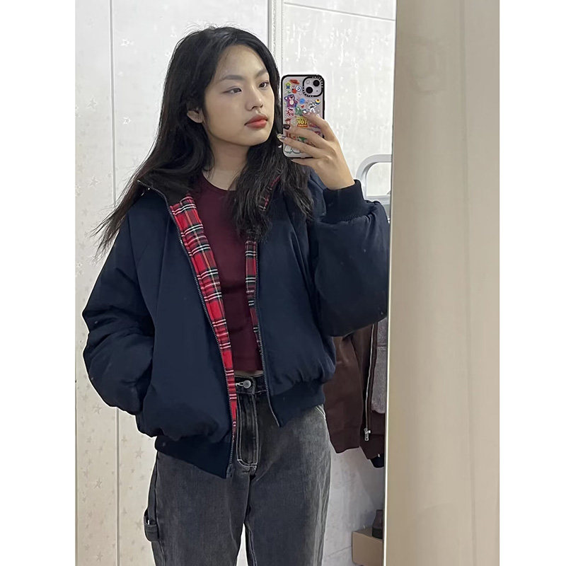 Brandybm官網立領雙面格子棉服麵包服加厚兩面穿保暖短款外套女冬