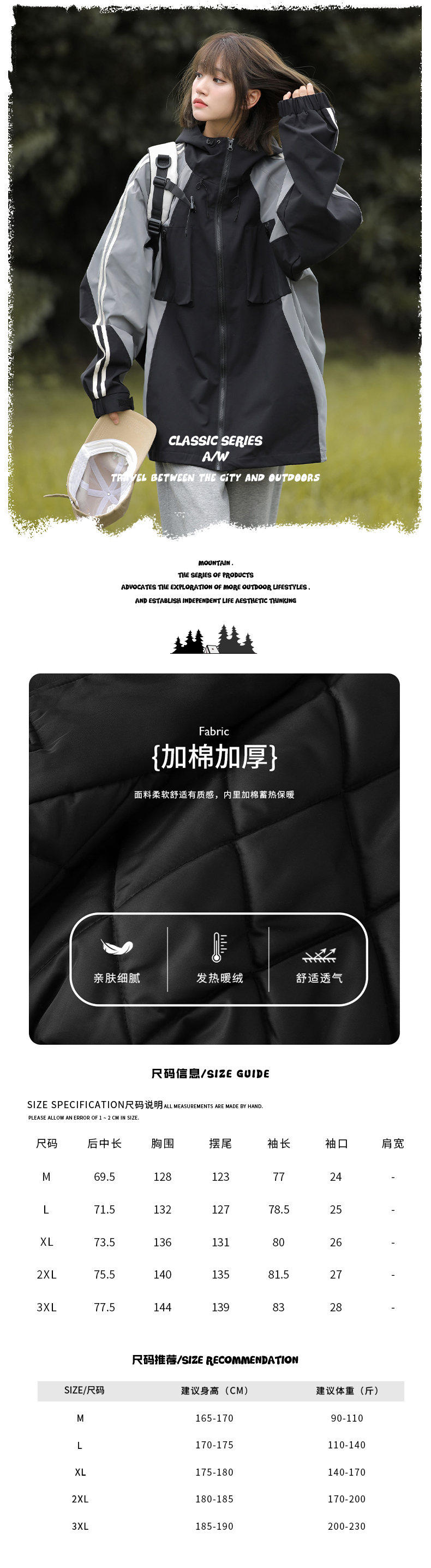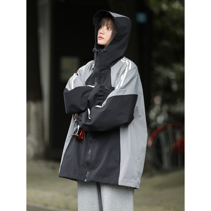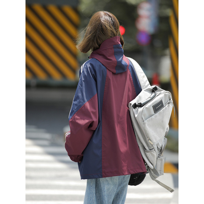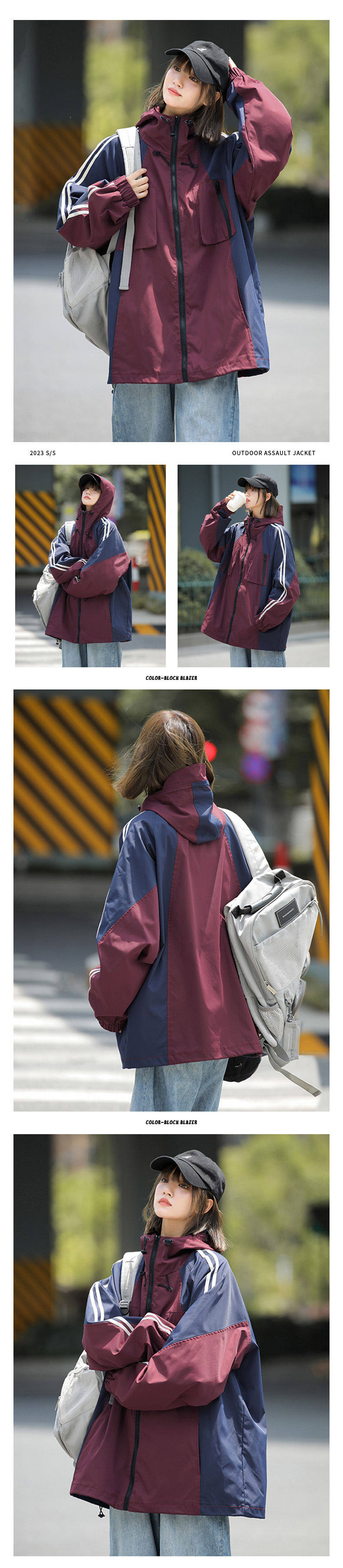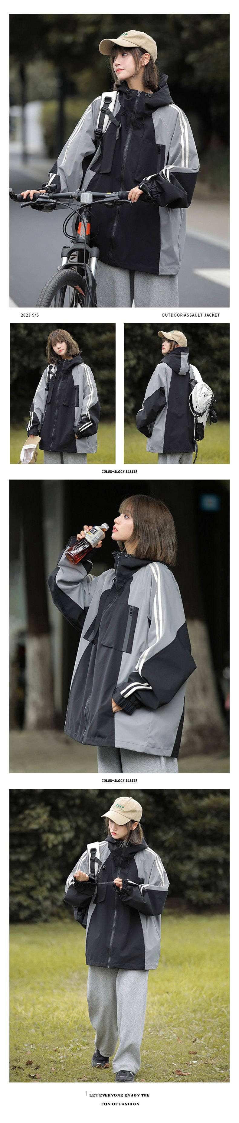 minette男女防水沖鋒衣學生拼色寬松休閒夾克外套連帽保暖登山服