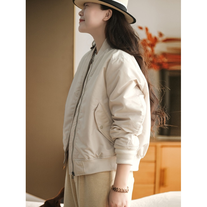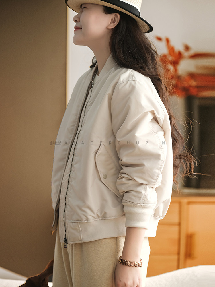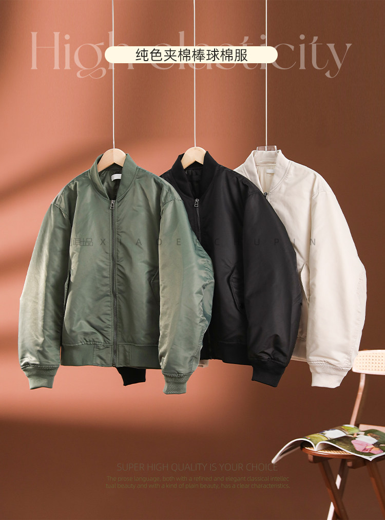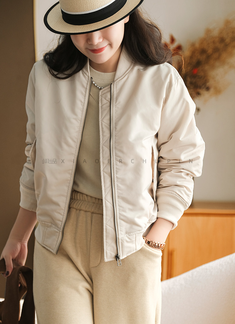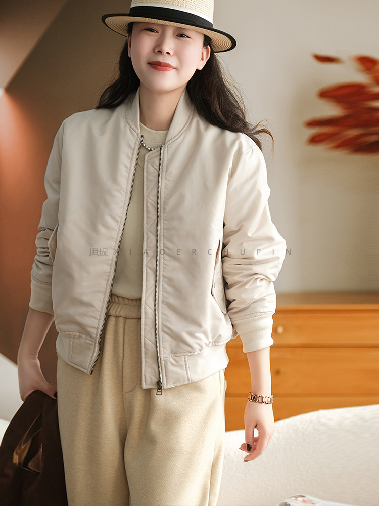 小耳出品【雲朵帕尼尼】純色夾棉棒球棉服休閒通勤加厚外套女