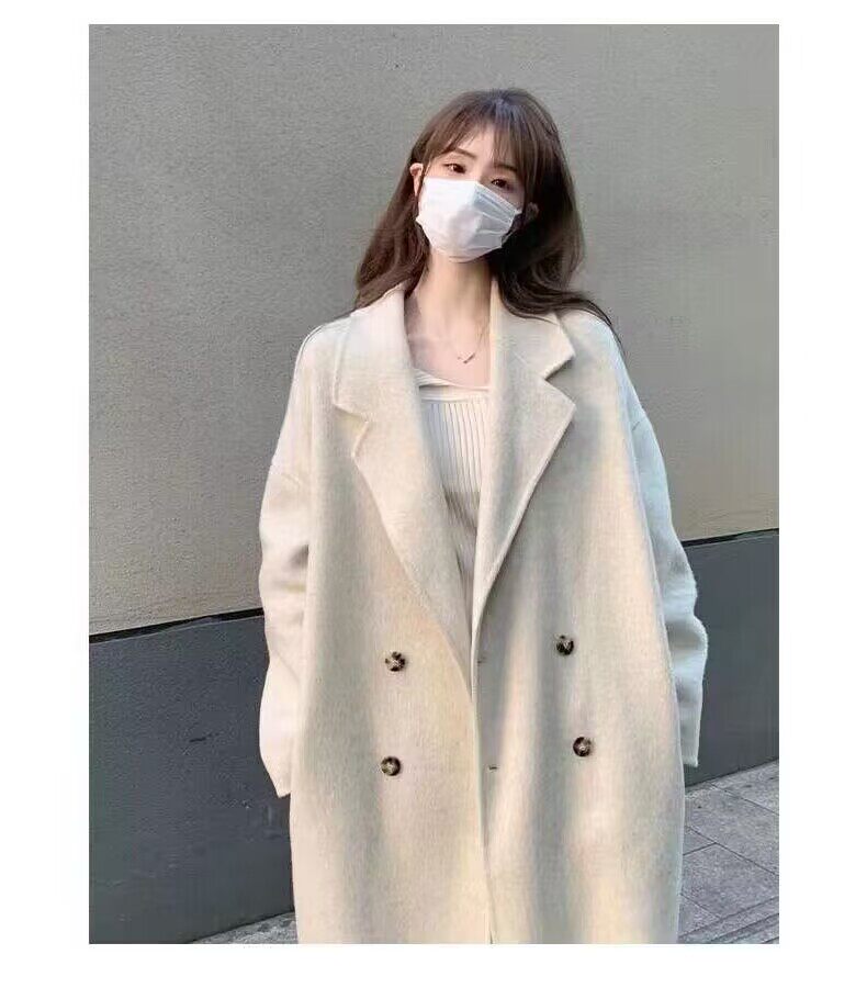 風衣中長款毛呢外套女秋冬夾棉學生顯瘦寬鬆過膝大衣雙排釦慵嬾風