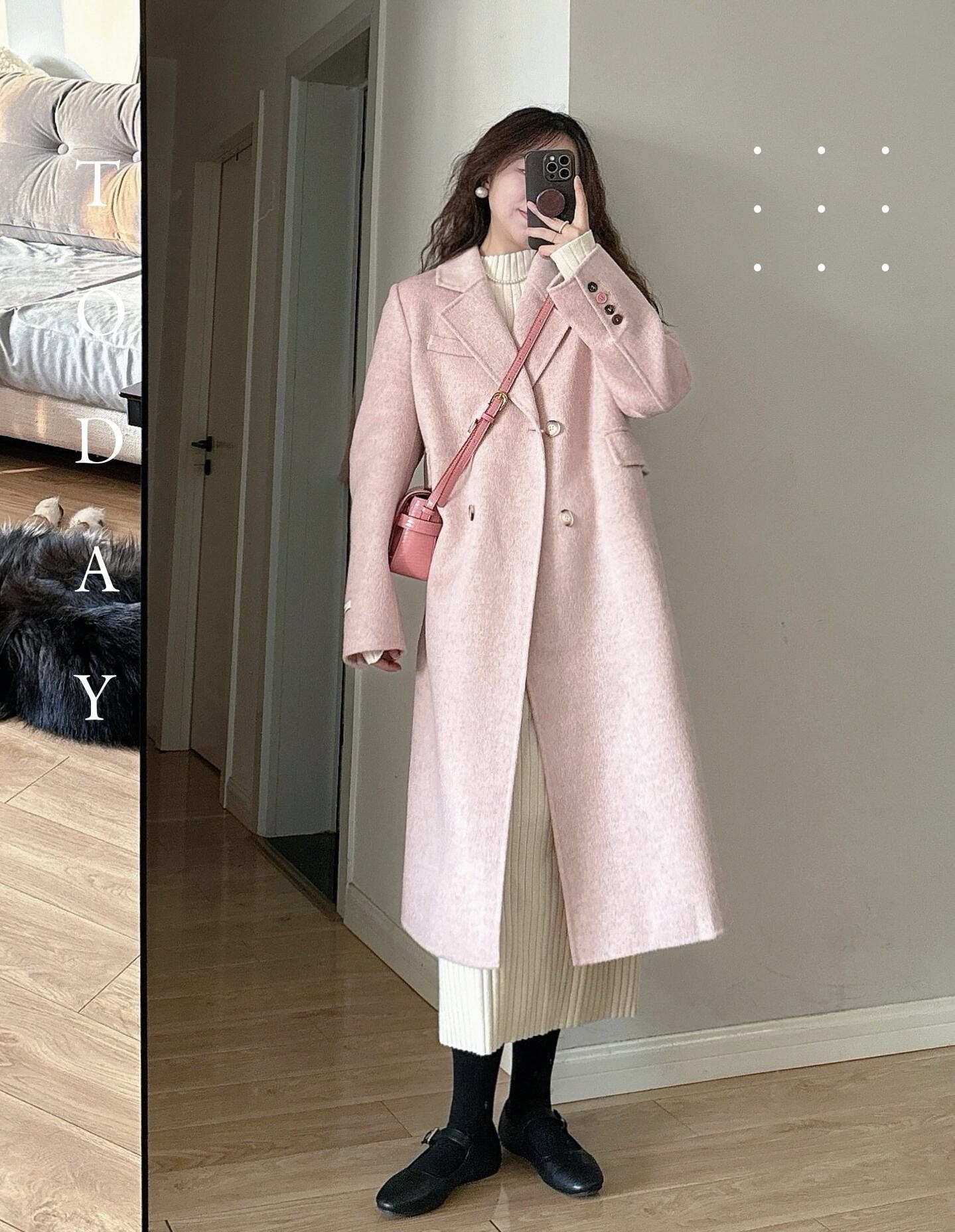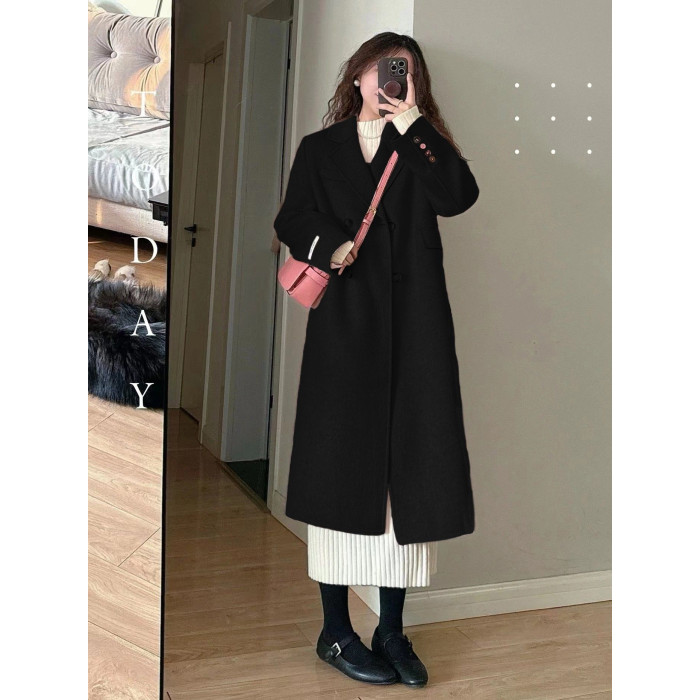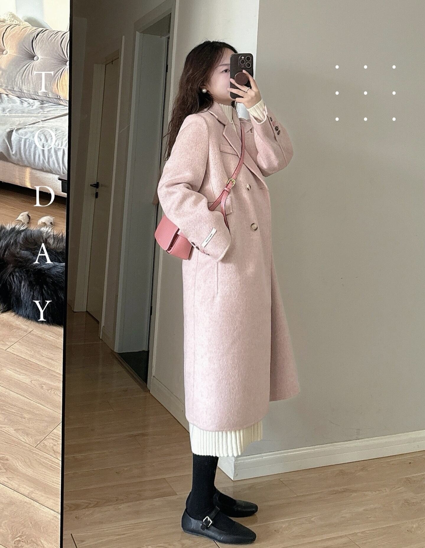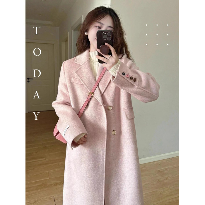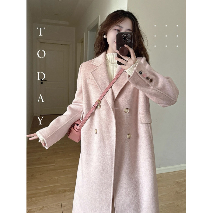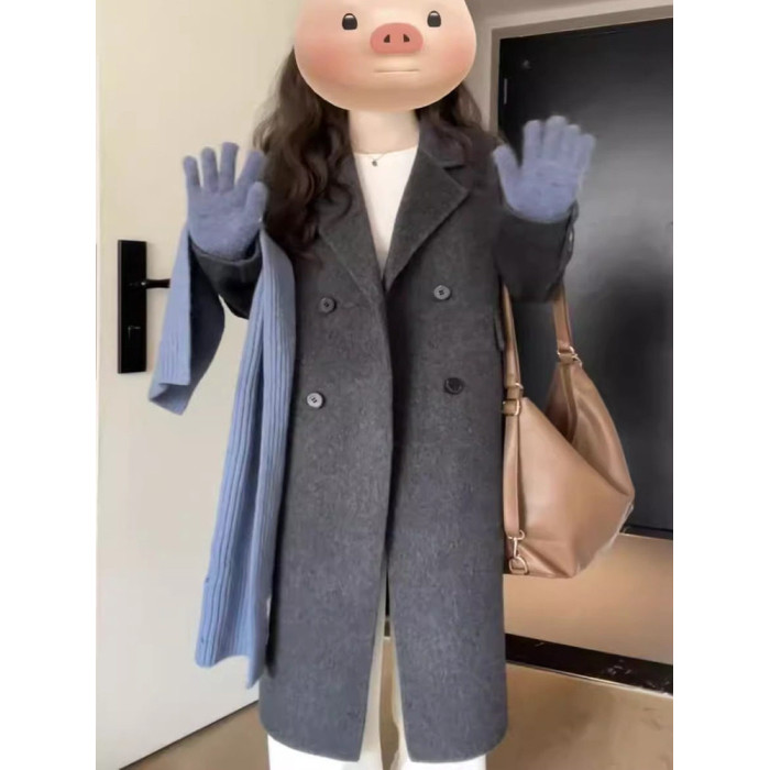 2025秋冬新款雙面羊絨大衣女韓系高級感中長款正肩小個子毛呢外套