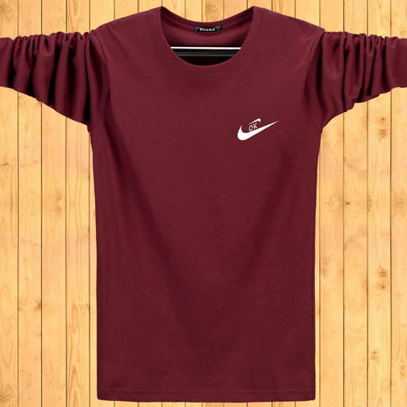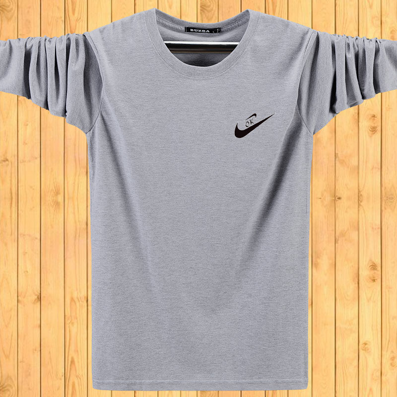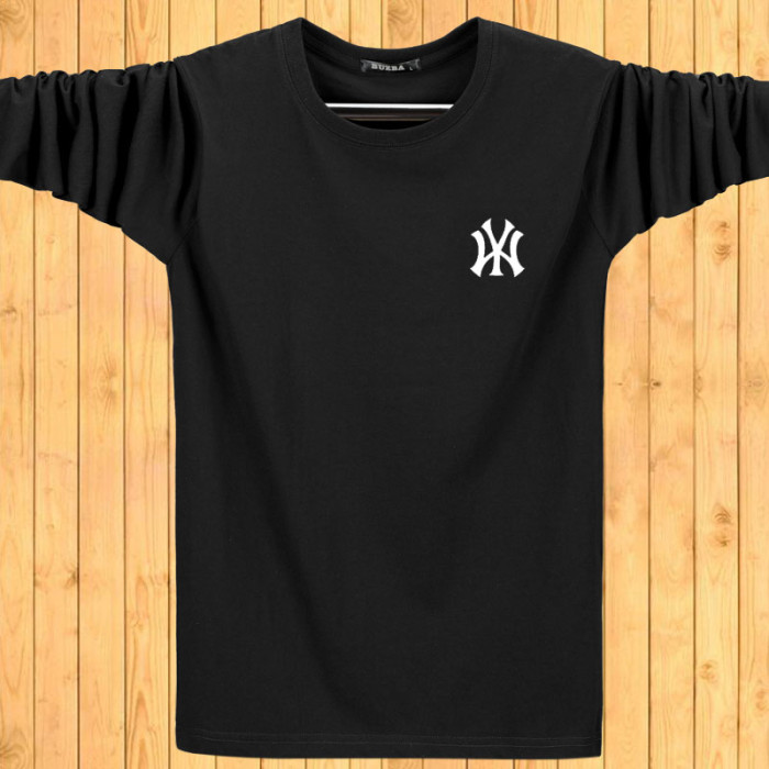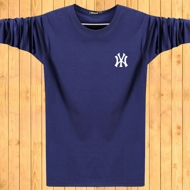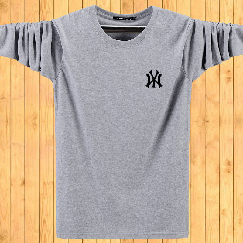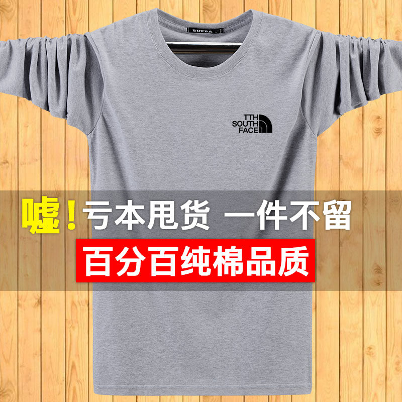 2023新款男士百分百純棉長袖t恤大碼寬松圓領全棉秋衣內搭打底衫